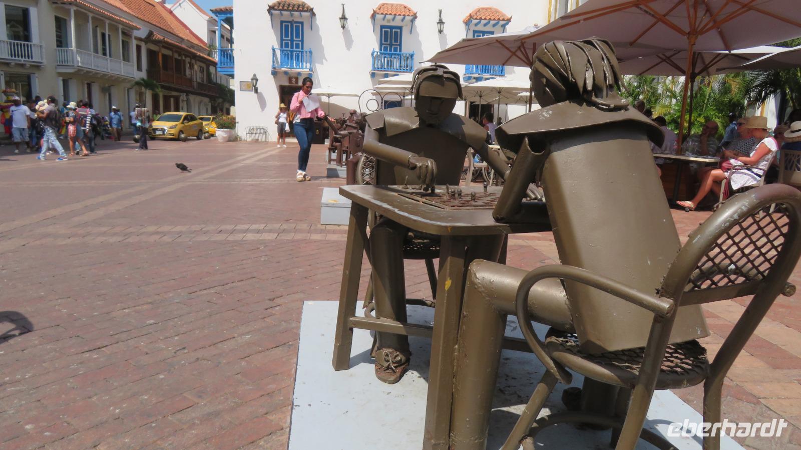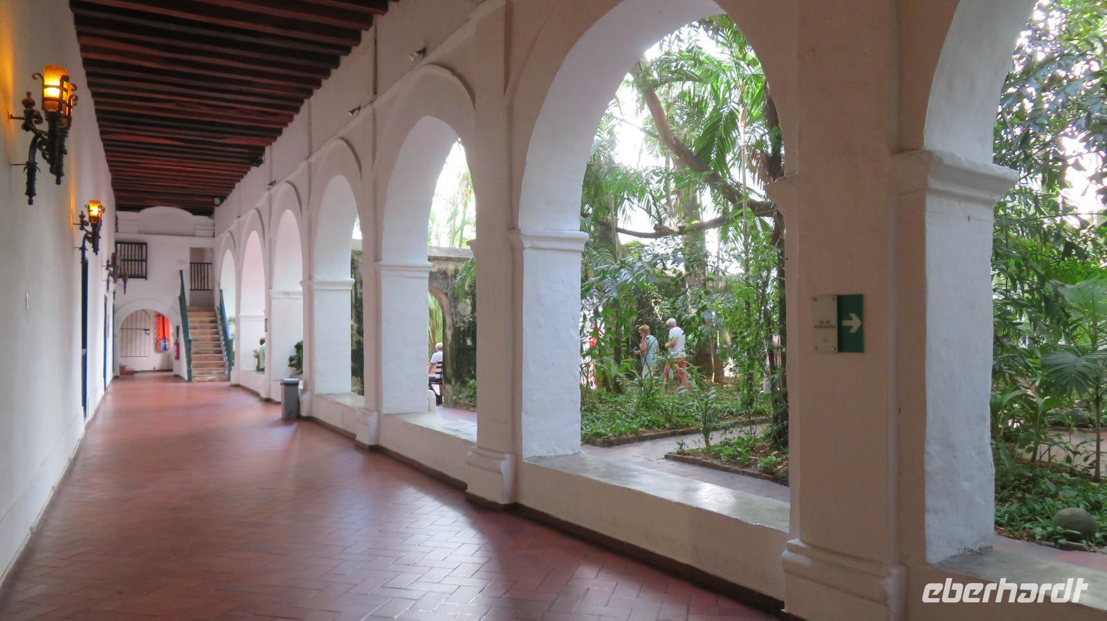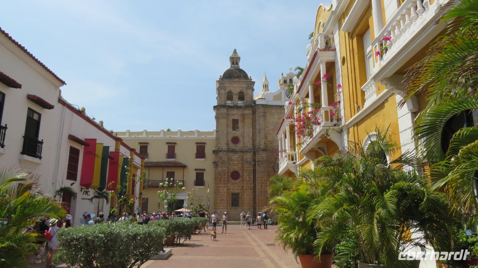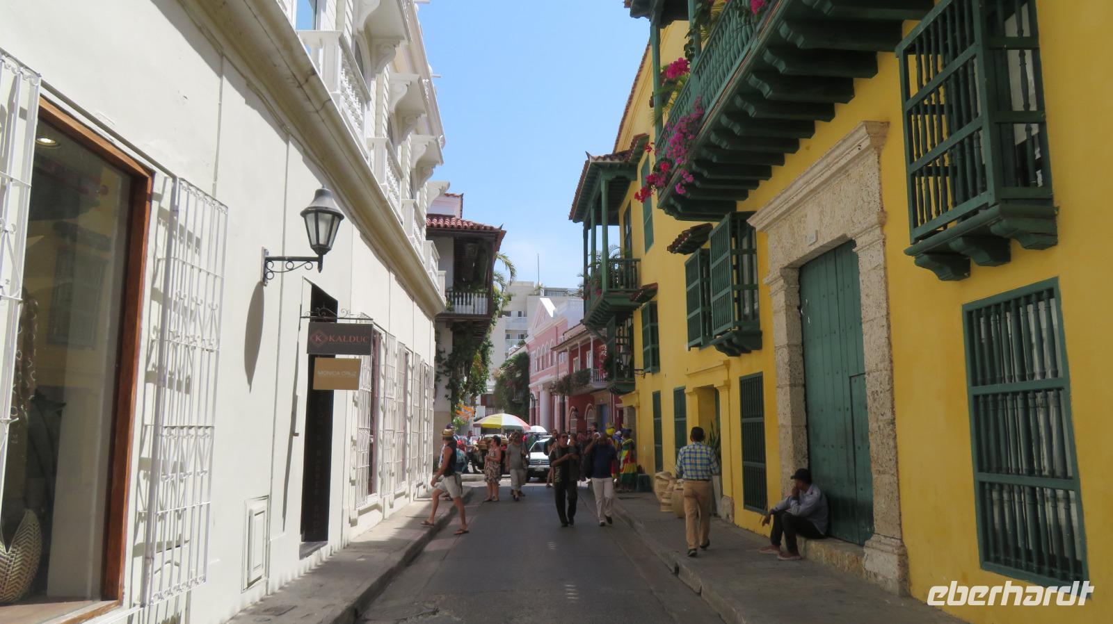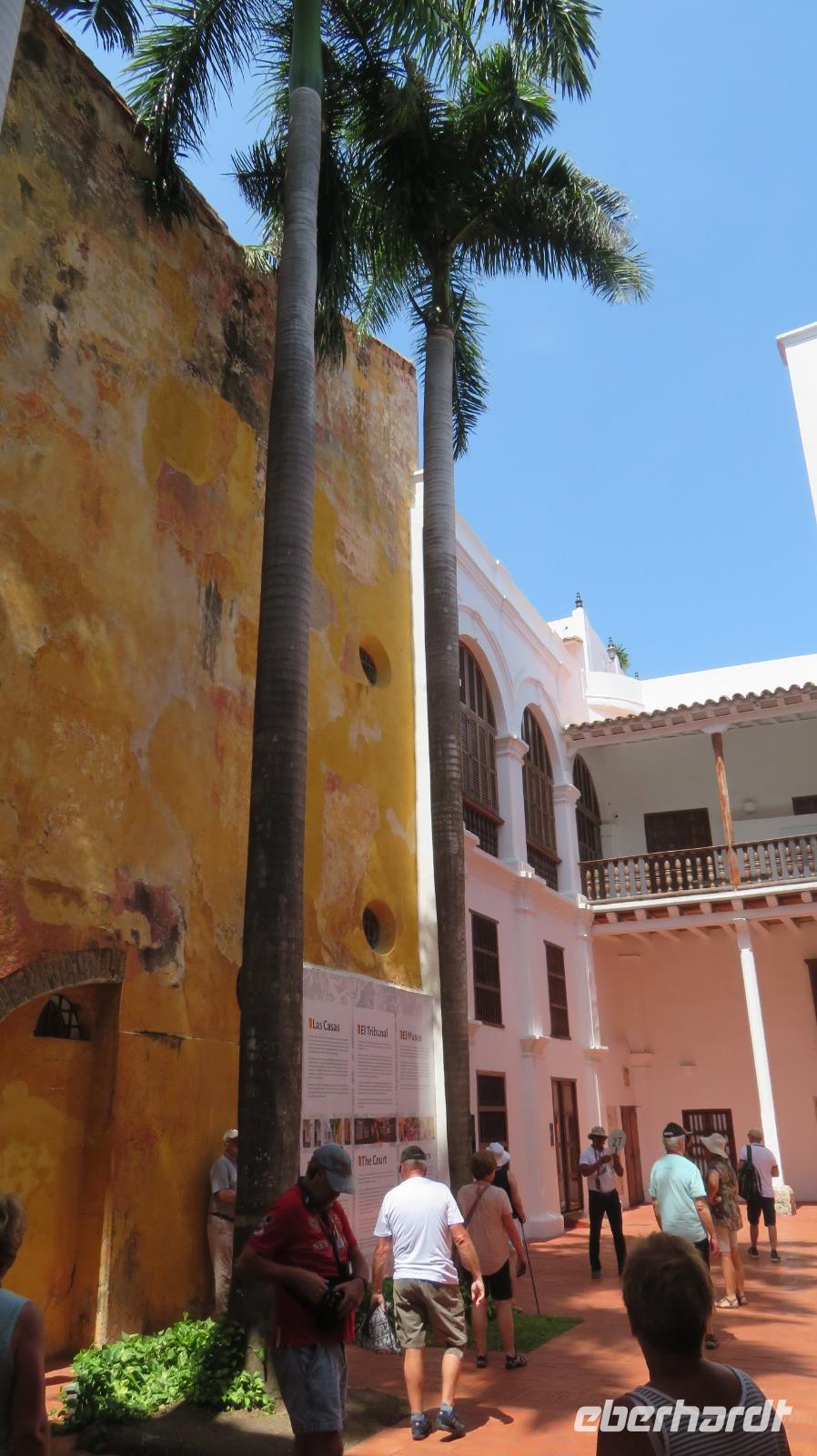 Das letzte neue Land auf unserer Kreuzfahrt ist Kolumbien mit der Hafenstadt Cartagena. Ein Teil der Gruppe unternimmt heute mit mir den Stadtrundgang durch Cartagena. Als erstes fahren wir mit dem Bus zum San Felipe Kastell. Das Meisterwerk spanischer Baukunst ist eine imposante Festung aus dem 16. Jahrhundert. Nicht weniger imposant sind die fliegenden Händler, die von allen Seiten uns etwas verkaufen wollen. Bevor wir am Parque de la Marina den Bus verlassen und zu einem rund 1,5 stündigen Spaziergang aufbrechen, bekommen wir die Möglichkeit ein Andenken in den hiesigen Shops zu erwerben. Die Altstadt von Cartagena gehört seit 1984 zum UNESCO Weltkulturerbe und gehört zu den schönsten Kolonialstädten Südamerikas. Dies empfinden wir ebenso. In der Altstadt kommt uns ein alter Oldtimer entgegen, die Türen und die Balkone sind groß und hölzern und an jeder Ecke herrscht ein buntes Treiben. Wir laufen an der Santo Domingo Kirche, der Kathedrale und dem Uhrenturm vorbei, staunen über die Künste eines Malers und lauschen einer künstlerischen Darbietung.