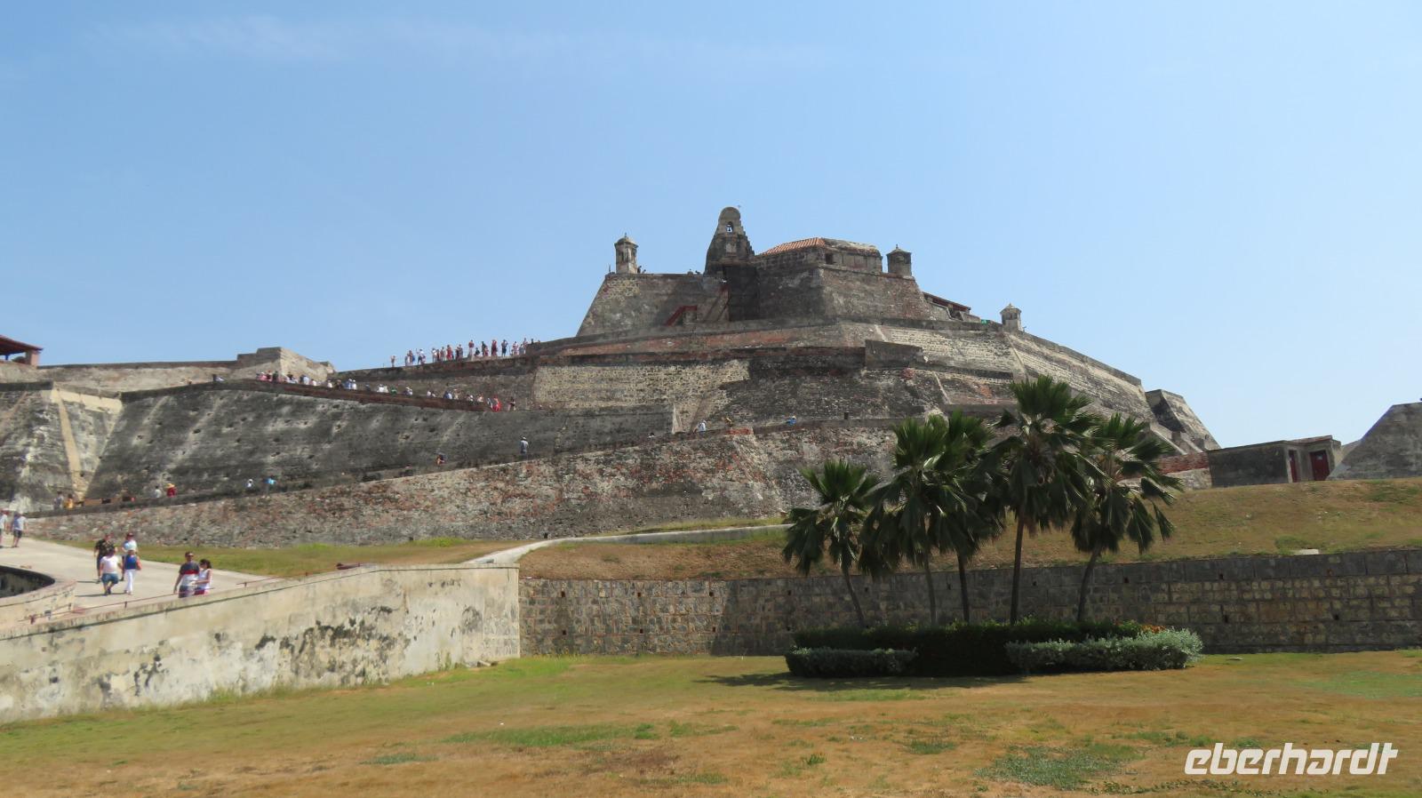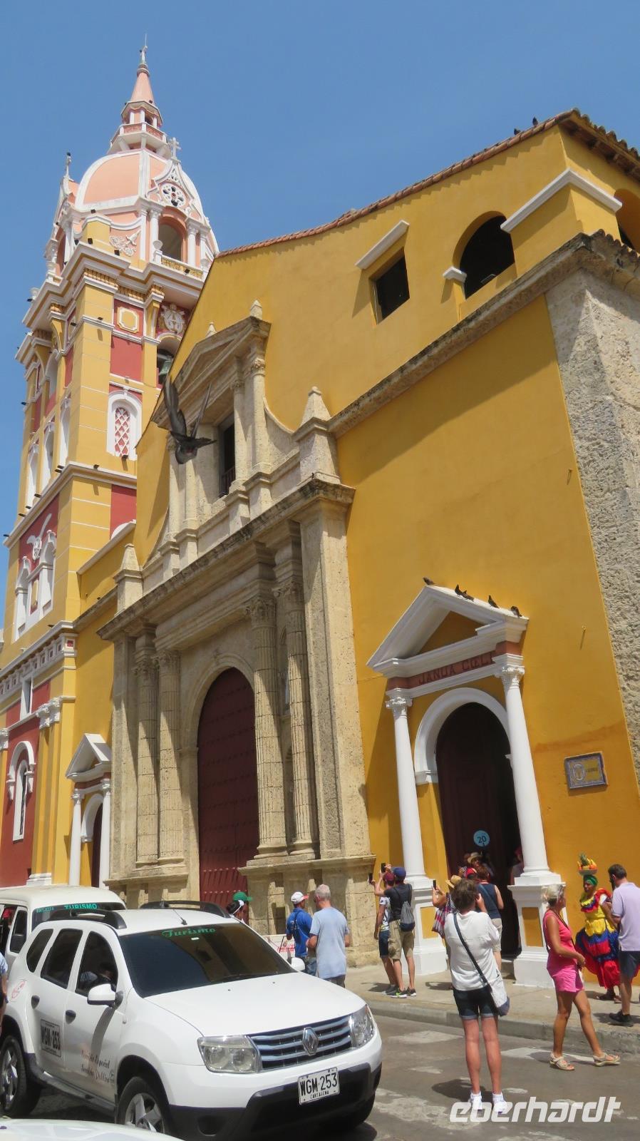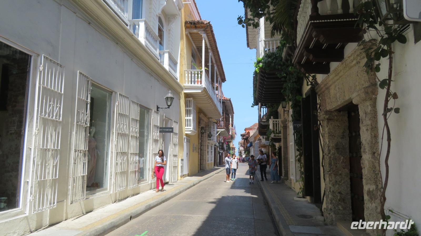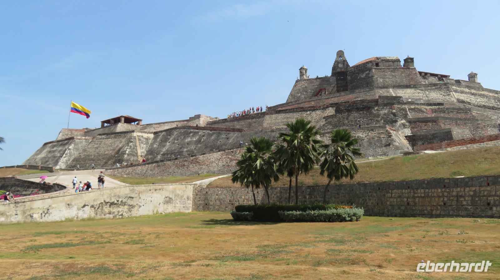 Das letzte neue Land auf unserer Kreuzfahrt ist Kolumbien mit der Hafenstadt Cartagena. Ein Teil der Gruppe unternimmt heute mit mir den Stadtrundgang durch Cartagena. Als erstes fahren wir mit dem Bus zum San Felipe Kastell. Das Meisterwerk spanischer Baukunst ist eine imposante Festung aus dem 16. Jahrhundert. Nicht weniger imposant sind die fliegenden Händler, die von allen Seiten uns etwas verkaufen wollen. Bevor wir am Parque de la Marina den Bus verlassen und zu einem rund 1,5 stündigen Spaziergang aufbrechen, bekommen wir die Möglichkeit ein Andenken in den hiesigen Shops zu erwerben. Die Altstadt von Cartagena gehört seit 1984 zum UNESCO Weltkulturerbe und gehört zu den schönsten Kolonialstädten Südamerikas. Dies empfinden wir ebenso. In der Altstadt kommt uns ein alter Oldtimer entgegen, die Türen und die Balkone sind groß und hölzern und an jeder Ecke herrscht ein buntes Treiben. Wir laufen an der Santo Domingo Kirche, der Kathedrale und dem Uhrenturm vorbei, staunen über die Künste eines Malers und lauschen einer künstlerischen Darbietung.