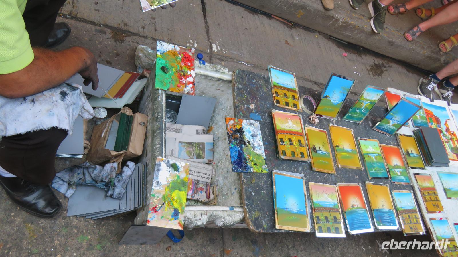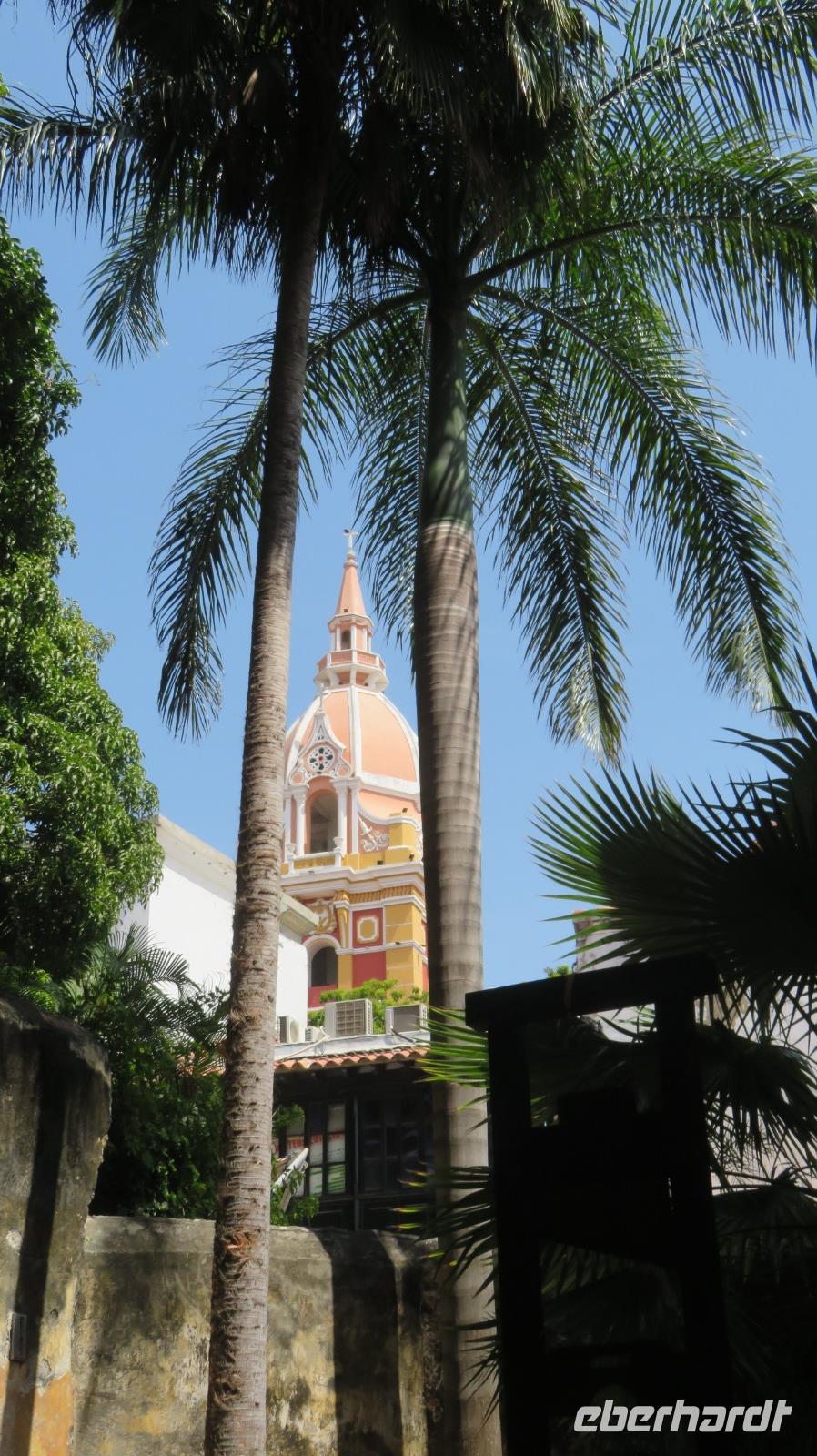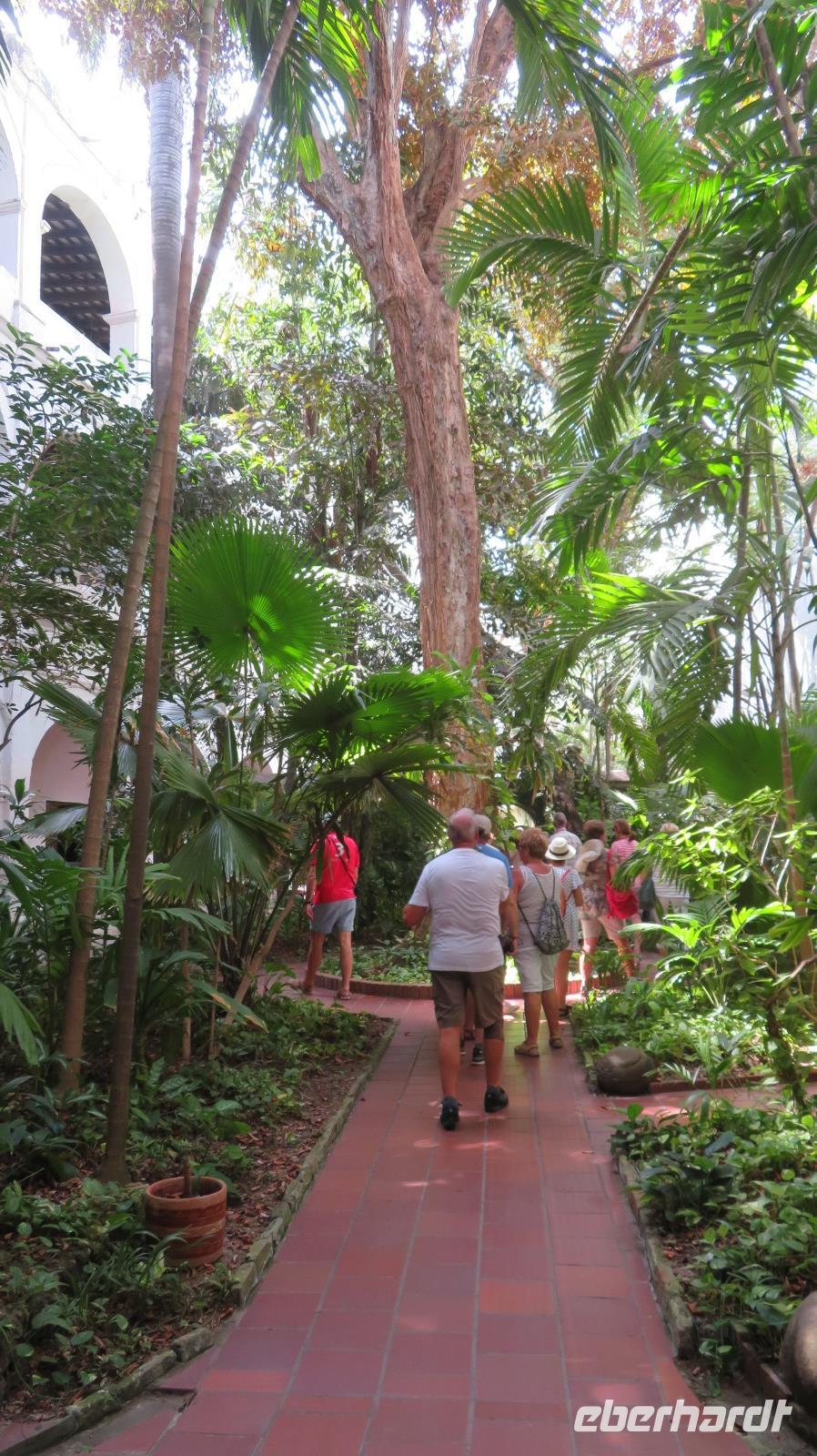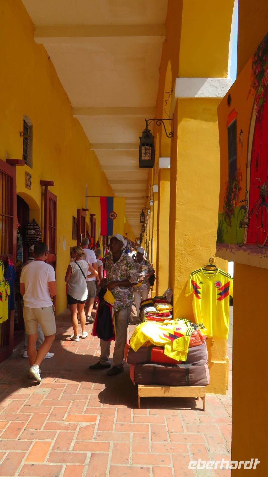 Das letzte neue Land auf unserer Kreuzfahrt ist Kolumbien mit der Hafenstadt Cartagena. Ein Teil der Gruppe unternimmt heute mit mir den Stadtrundgang durch Cartagena. Als erstes fahren wir mit dem Bus zum San Felipe Kastell. Das Meisterwerk spanischer Baukunst ist eine imposante Festung aus dem 16. Jahrhundert. Nicht weniger imposant sind die fliegenden Händler, die von allen Seiten uns etwas verkaufen wollen. Bevor wir am Parque de la Marina den Bus verlassen und zu einem rund 1,5 stündigen Spaziergang aufbrechen, bekommen wir die Möglichkeit ein Andenken in den hiesigen Shops zu erwerben. Die Altstadt von Cartagena gehört seit 1984 zum UNESCO Weltkulturerbe und gehört zu den schönsten Kolonialstädten Südamerikas. Dies empfinden wir ebenso. In der Altstadt kommt uns ein alter Oldtimer entgegen, die Türen und die Balkone sind groß und hölzern und an jeder Ecke herrscht ein buntes Treiben. Wir laufen an der Santo Domingo Kirche, der Kathedrale und dem Uhrenturm vorbei, staunen über die Künste eines Malers und lauschen einer künstlerischen Darbietung.