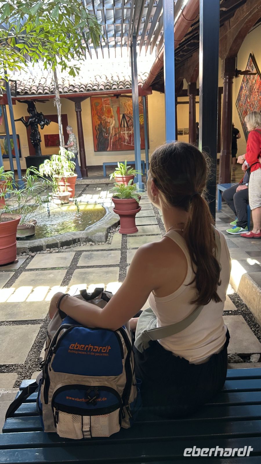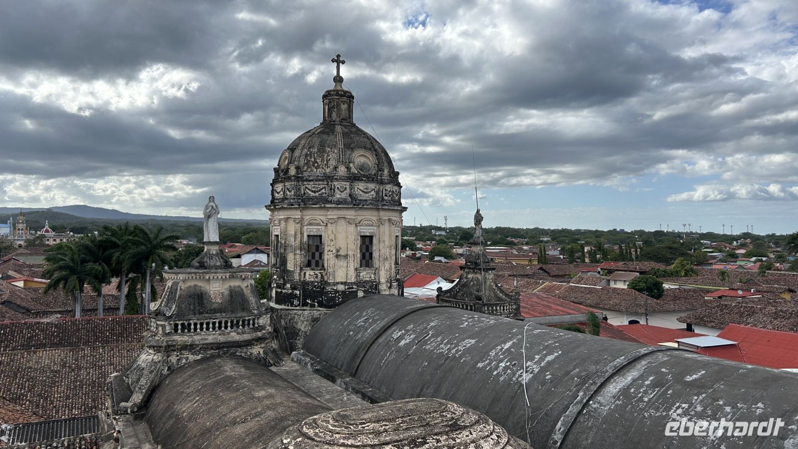 Zum Abschluss des Tages begaben wir uns auf eine Stadtrundfahrt durch Granada. In der ehemaligen Pulverfestung erhielten wir einen kurzen Einblick in die politische Geschichte des Landes, entdeckten die Spuren der indigenen Bevölkerung im Parque Xalteva und bestiegen den Kirchturm der Iglesia la Merced. Im San Francisco Kloster wurde uns die nationale Kultur nähergebracht, Kunstwerke und Steinskulpturen ließen sich bewundern.