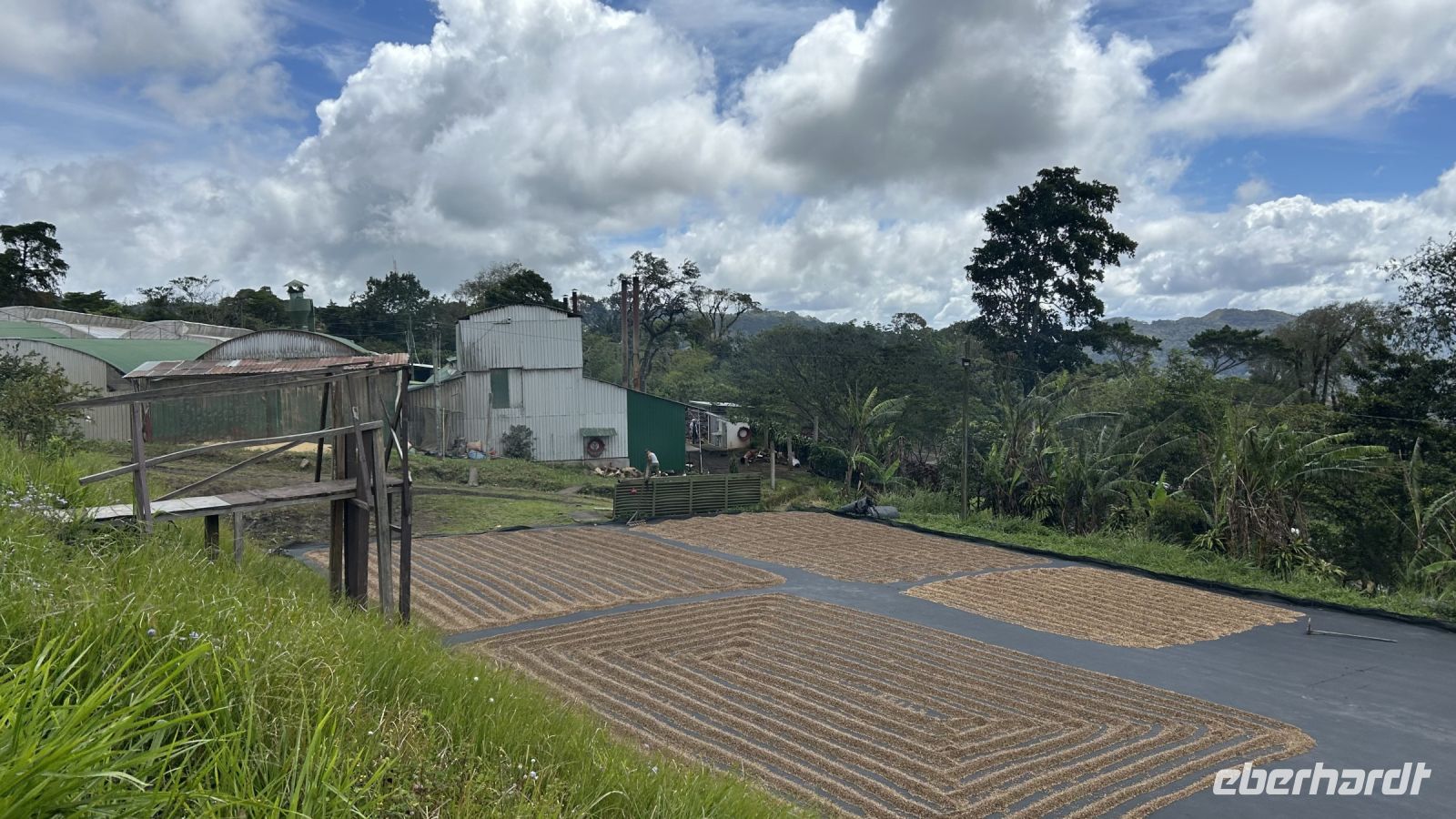 Am besten schmeckt der Kaffee, wenn man weiß, wo er herkommt. Deswegen begaben wir uns nach dem Frühstück auf eine Tour über die Kaffeefarm, welche ein ökologisches Konzept verfolgt. José, unser Guide, erklärte uns zusammen mit Javier den gesamten Prozess von der Anpflanzung der Kaffeepflanze bis hin zum Ernten der Kaffeekirschen, dem Trocknen und Mahlen des Kaffees. Wir hatten nicht nur die Gelegenheit, rote und gelbe Kaffeefrüchte zu kosten, sondern erhielten auch einen umfassenden Einblick in die verschiedenen Verarbeitungsschritte. Dabei beobachteten wir die jungen Männer bei der harten Arbeit des Beladens der Lkws und schauten den Frauen beim Trocknen und Sortieren der Kaffeebohnen zu. Zum krönenden Abschluss genossen wir eine weitere Tasse Kaffee aus lokalem Anbau.