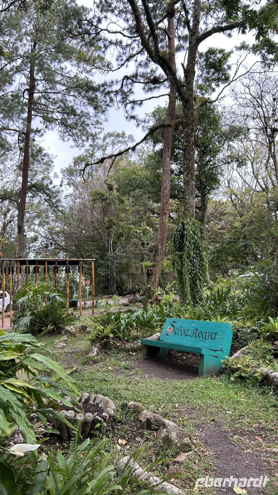 Gefüllt mit neuen Eindrücken fuhren wir weiter zu unserem Berghotel Selva Negra. Die Ecolodge liegt direkt auf einer Kaffeefarm, umrahmt von grünen Nebelwäldern. Und was macht man, wenn man auf einer Kaffeefarm ist? Man trinkt natürlich einen Kaffee. Im hauseigenen Restaurant haben wir uns von der Qualität des Kaffees überzeugt, bevor wir unsere persönlichen Bungalows umgeben von der Natur beziehen durften. Am Nachmittag machten wir uns auf, um den umliegenden Nebelwald zu erkunden. Schnell merkten wir, dass wir hier nicht mit Sandalen und kurzen Hosen weit kommen, sondern Gummistiefel die bessere Wahl gewesen wären, da durch den vielen Regen die Wanderwege matschig waren. Aber davon ließen wir uns nicht aufhalten, sondern begaben uns mutig mit Javier durch den Nebelwald und fühlten uns wie im Dschungel. Beeindruckende Pflanzenformationen, riesige Bäume mit imposanten Wurzeln und besondere Vögel waren zu sehen. Wenn man genau hingehört hat, konnte man die Brüllaffen hören.