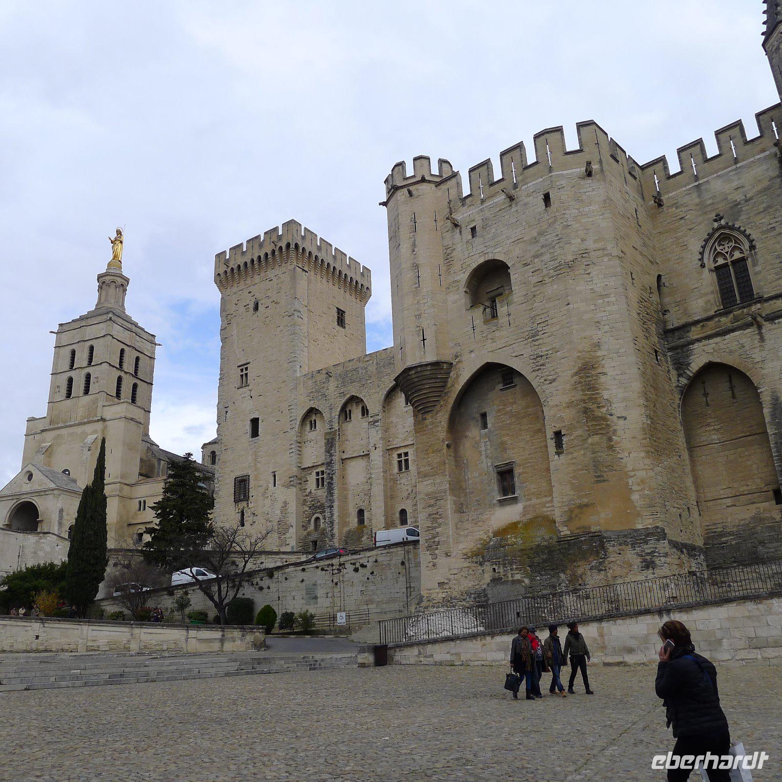 Am Nachmittag erwartete uns Avignon. Wer kennt nicht das Lied ‚Sur le pont d'Avignon.......'. Wir haben es im Bus eifrig geübt bzw. während der Führung gemeinsam gesungen! Überwältigend dann der Anblick der Brücke bei strahlend blauem Himmel und unter der südlichen Sonne. Auch die Temperaturen waren inzwischen deutlich gestiegen. Unsere örtlichen Reiseleiterinnen hatten trotz unserer Verspätung wegen des vielen Verkehrs geduldig auf uns gewartet und führten uns mit viel Herzblut und Charme durch ihr Avignon. Was man in 2 Stunden alles erleben kann.......ob Papstpalast, Aussichtspunkte, alte Stadtmauern, Kirchen.....wir ließen nichts aus und erreichten schließlich müde, aber gut gestimmt, unsere Hotels.