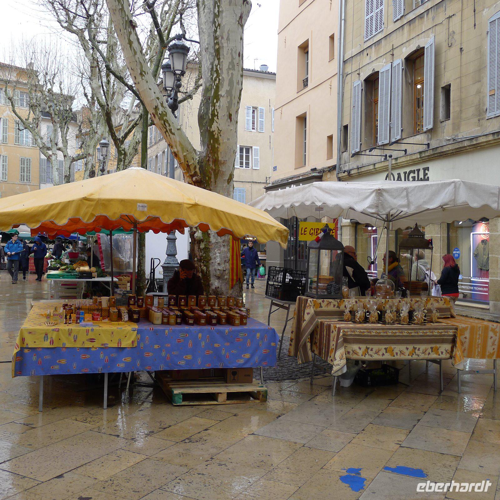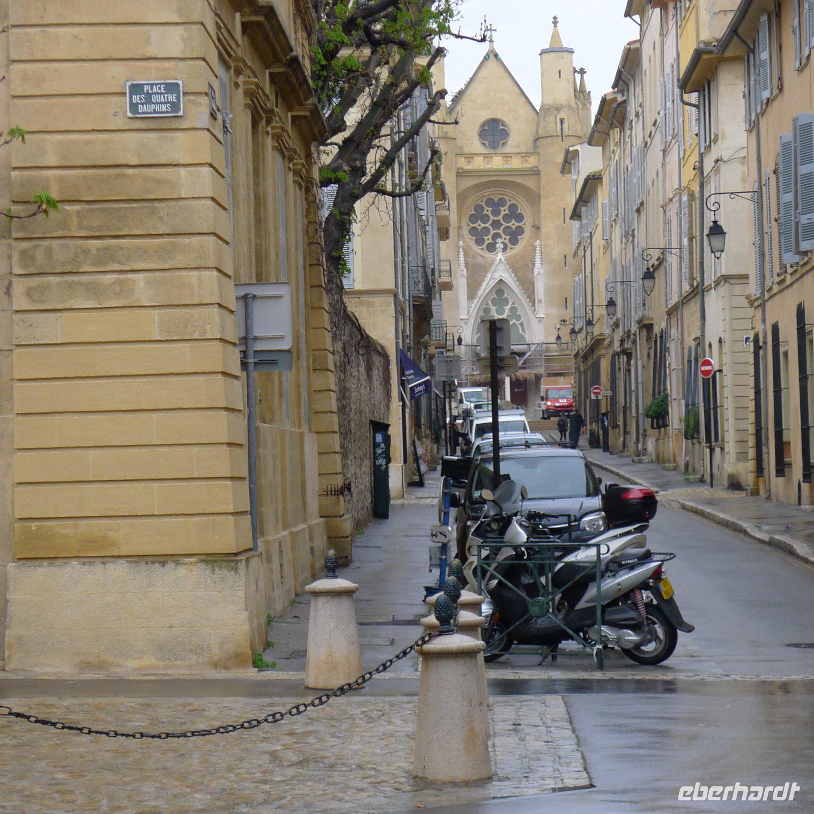 Au revoir Provence! Auf ging es in Richtung Côte d'Azur. Aber nicht ohne einen Zwischenstopp im quirligen Aix-en-Provence einzulegen. Dort war uns das Wetter nicht so gut gesonnen! Obwohl sich unsere örtlichen Reiseleiterinnen viel Mühe gegeben haben, uns den Charme der Stadt näherzubringen und uns u.a. auch vom Maler Paul Cézanne und seinem Leben erzählt haben, war so eine gewisse ‚Unlust' unter den Reisenden zu bemerken. Das änderte sich schlagartig als von einer zur anderen Minute die Sonne hervorkam und Aix uns wenigstens ‚freundlich' und sonnig verabschiedete.