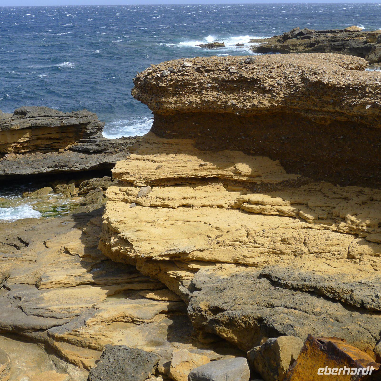 Unser örtlicher Reiseleiter Daniele war ein durch und durch überzeugter Menorquiner und ließ nichts, aber auch gar nichts unversucht, uns ‚seine' Insel näher zu bringen. Das war kein einfaches Unterfangen, ging doch ein strenger und kalter Wind an diesem Ostersamstag. Trotz viel Sonnenschein wurde es uns nicht so recht warm. Die klare Lust und der strahlend blaue Himmel bescherten uns viele schöne Ausblicke während unserer Panoramafahrt an der zerklüfteten Küste und im grünen und welligen Landesinneren. Im kleinen und ruhigen Fornells unternahmen wir einen Spaziergang und wollten - ganz mutig - trotz des starken Windes einen alten Wachtturm erklimmen. Nur mit äußerster Kraft und uns gegenseitig stützend kamen wir gegen den immer stärker werdenden Wind an. Wieder einmal bekam man großen Respekt vor den Naturgewalten.