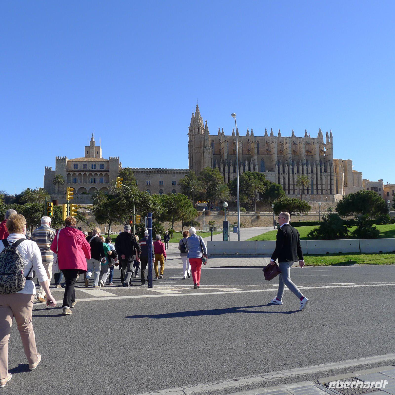 Einige nutzten das prächtige Wetter dazu, den Tag an der frischen Luft mit einem ausgedehnten Osterfrühstück zu beginnen, mit Blick auf die Kathedrale in der Ferne. Der Hafen Palmas liegt nicht ganz so nah am Zentrum wie in Ajaccio auf Korsika oder in Mahón auf Menorca. Mit öffentlichen Bussen, zu Fuß oder mit einem Taxi war es aber auch hier für alle Gäste, die individuell unterwegs waren, kein Problem, das Zentrum Palmas zu erreichen.