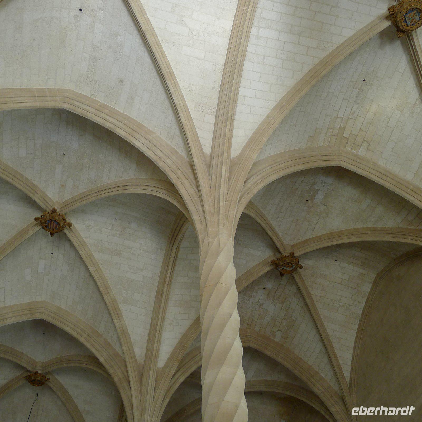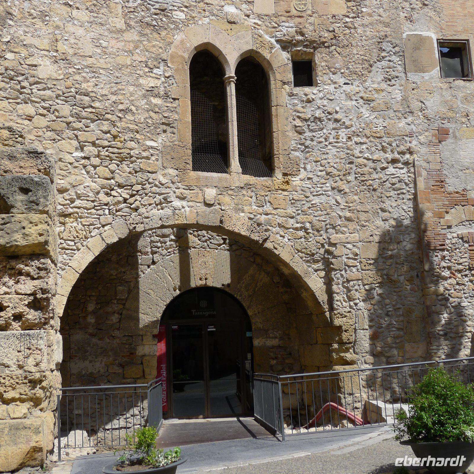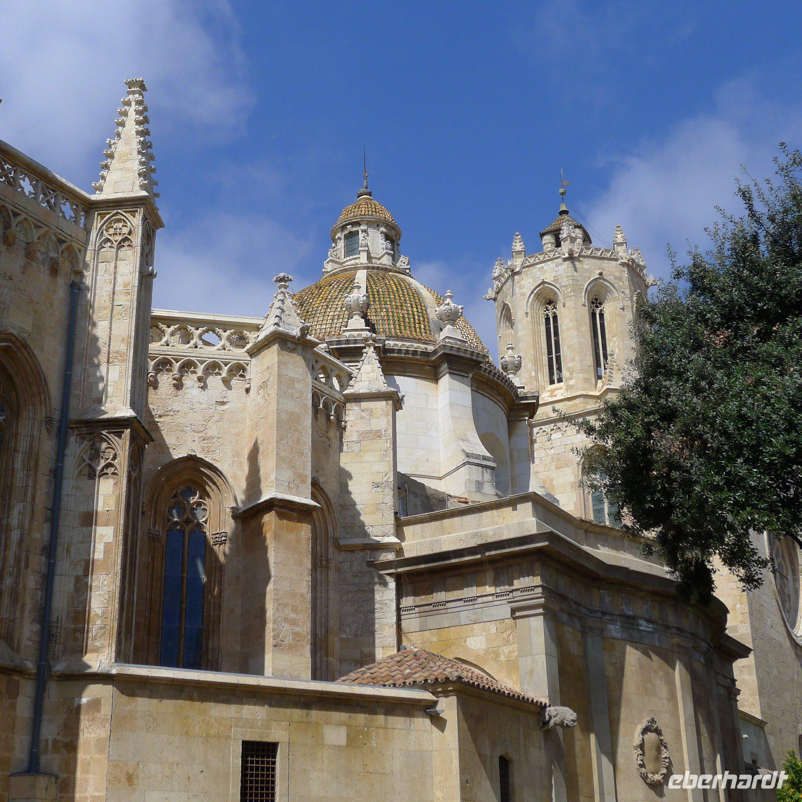 Aus dem Hafen hinaus und aus der Stadt hinaus in die hügelige, fruchtbare Landschaft im Norden Tarragonas fuhr unser Bus mit den Erläuterungen unseres kompetenten Gästeführers. Die Straße führt durch felsige Flusstäler und schließlich in eine weite, von Sandsteinhügeln umgebene Ebene. Wir passieren die von einer dicken Stadtmauer umgebene ehemalige Regionshauptstadt Montblanc und erreichen schließlich den in Weingärten gelegenen Klosterkomplex von Poblet. Bauwerke unterschiedlicher Epochen reihen sich hier aneinander - verschiedene Tore; Kapellen, Wirtschafts- und Wohngebäude der Mönche und der Könige von Aragon, die hier ihren Herrschaftssitz hatten und ihre historische Grablege in der Kirche des Klosters haben.