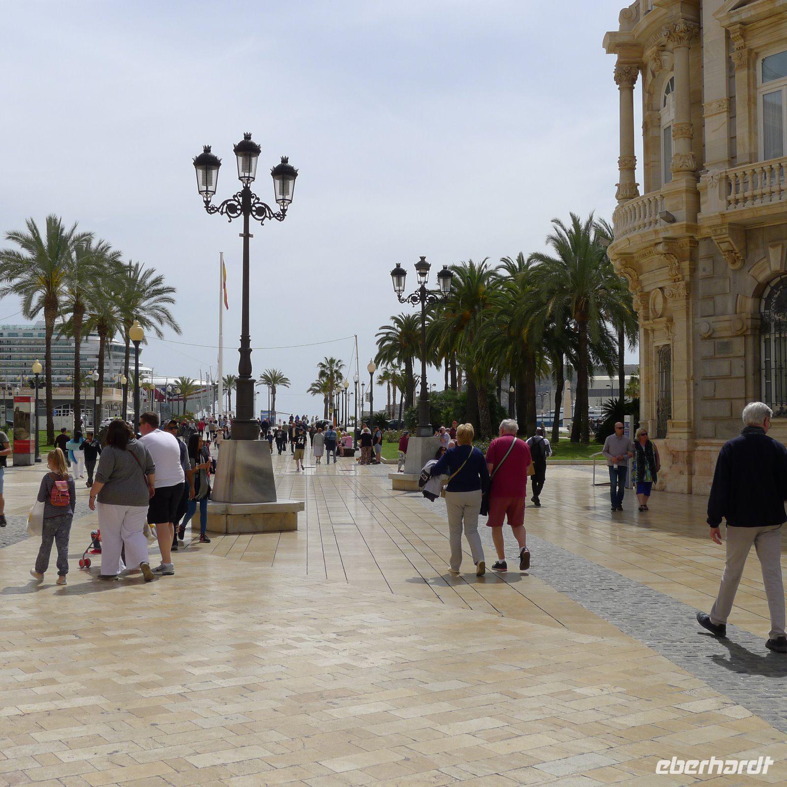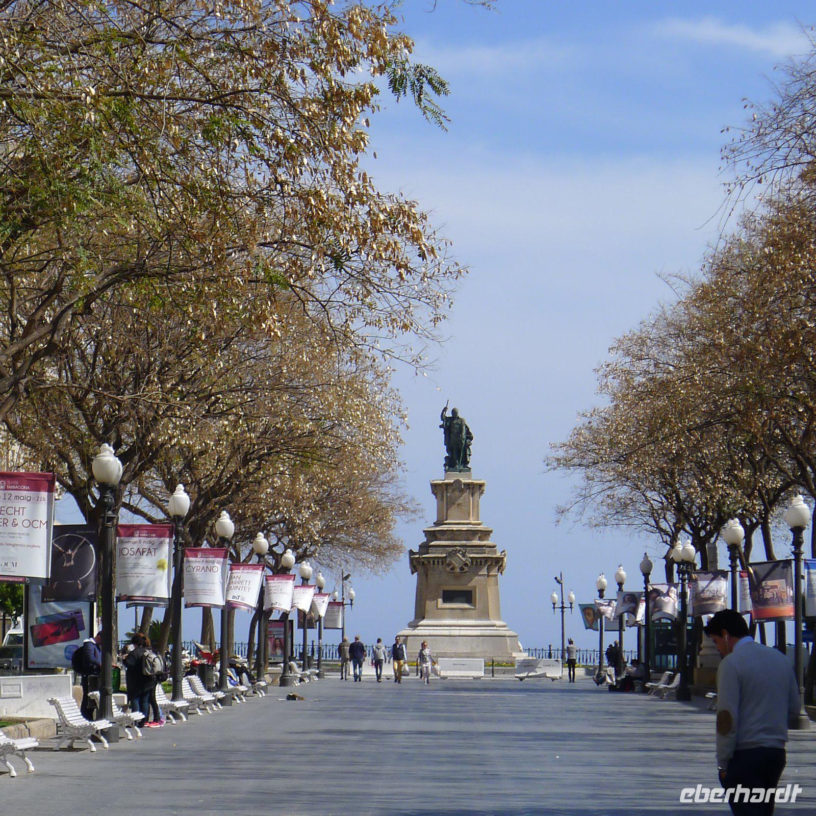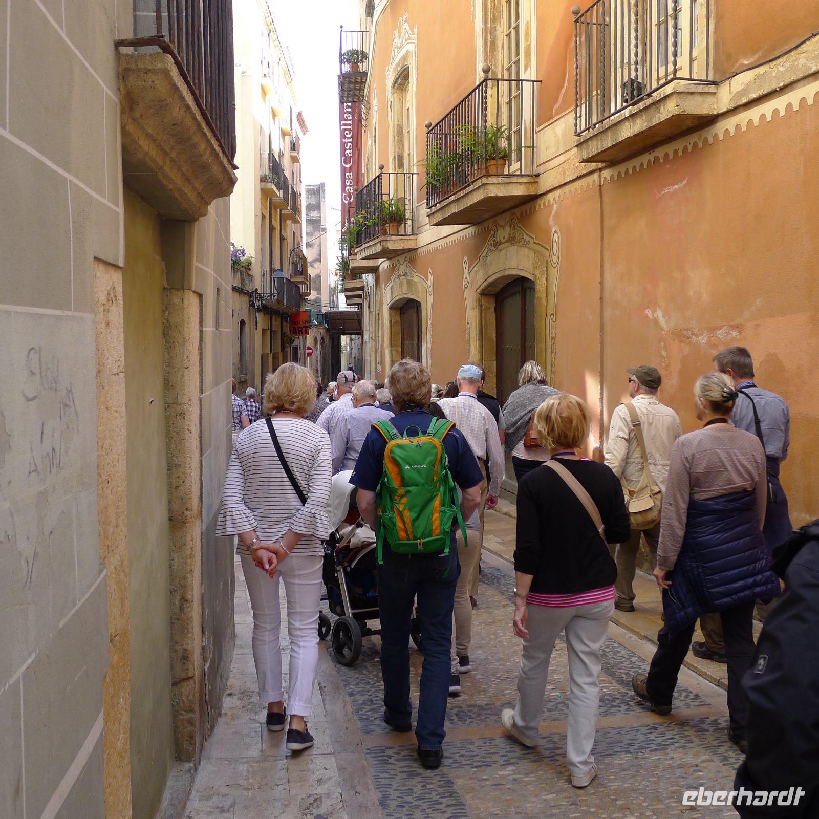 Mit unserer örtlichen Reiseleiterin Dolores bekamen wir auf einer kleinen Busrundfahrt u.a. das große Hafengelände zu sehen. Das historische Zentrum erkundeten wir dann zu Fuß. Die antiken Bauwerke begleiteten uns auf Schritt und Tritt. Wir schlenderten durch enge Gassen mit Kopfsteinpflaster und über schattige Plätze. Natürlich durfte ein Spaziergang über die Ramblas nicht fehlen. Von Dolores erfuhren wir, dass ‚Rambla' eine Bezeichnung für ein Trockenflussbett ist. Der Name leitet sich aus dem arabischen Wort für ‚Sand' bzw. ‚sandiges Flussbett' - raml oder ramla - ab und erinnert uns an die arabische Herrschaftszeit in Spanien.