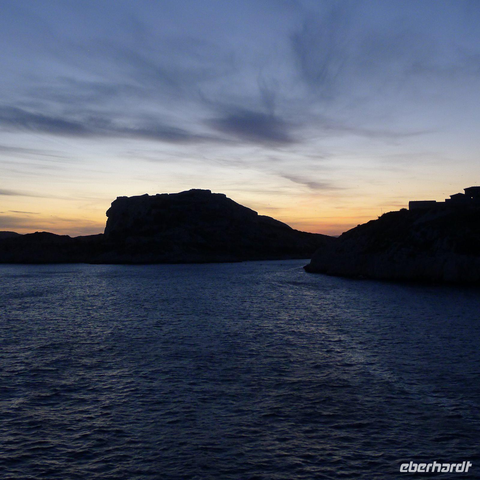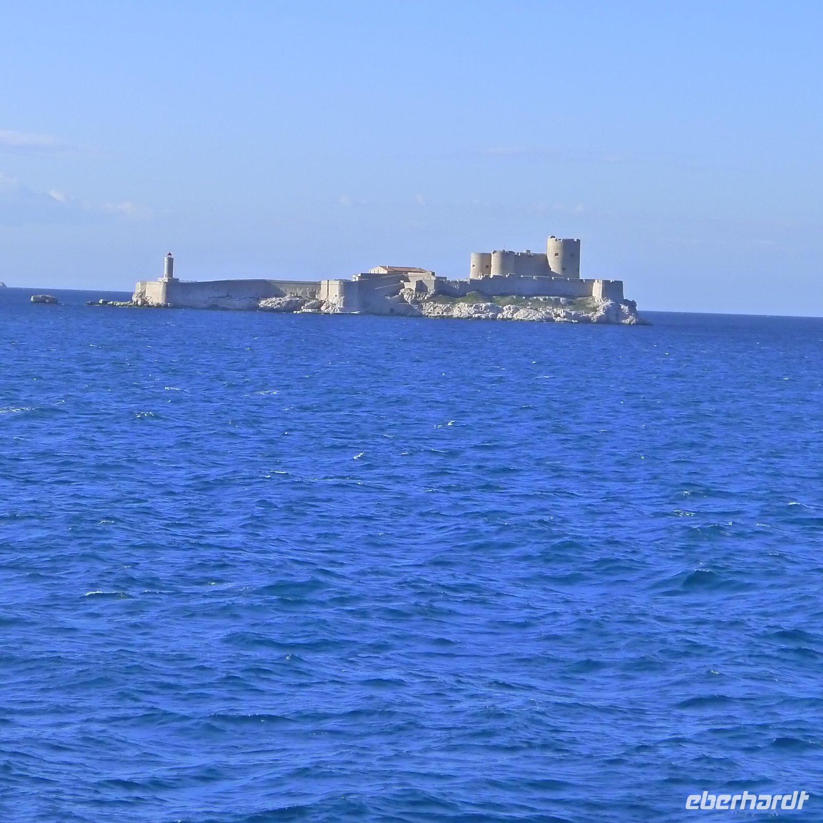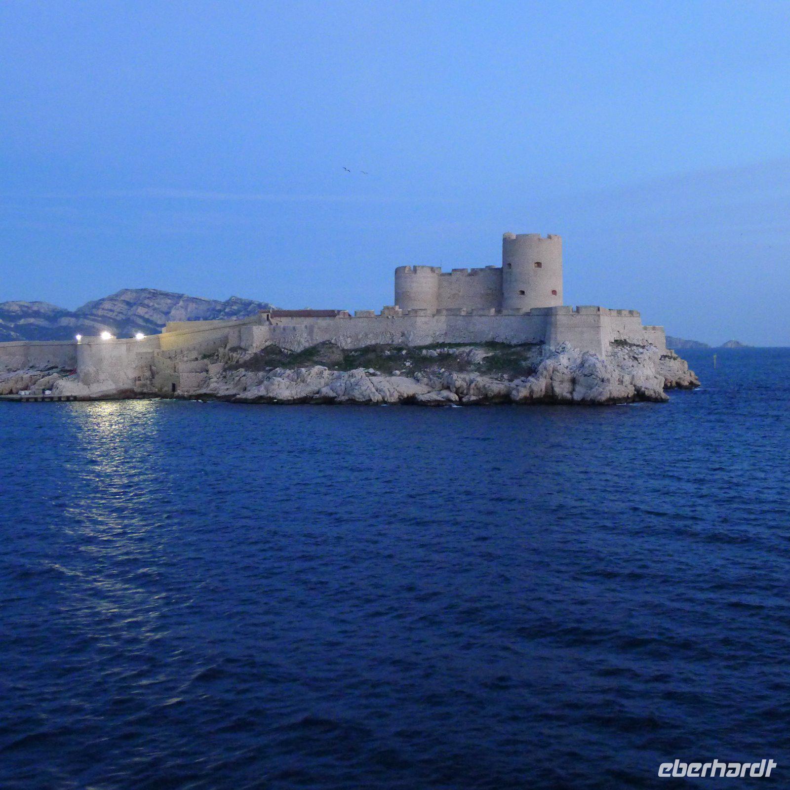 Marseille in Sicht! Welch spektakuläre Hafeneinfahrt! Ein Fotomotiv jagte das nächste! Von der Sonne beschienene Inseln und Klippen, das wehrhafte Fort auf der Insel If, die wir alle vom Grafen von Monte Christo kennen, die in der Ferne auftauchende Silhouette Marseilles, die Schaumkronen des leicht bewegten Meeres ..... wohin nur sollte man seinen Blick zuerst richten?