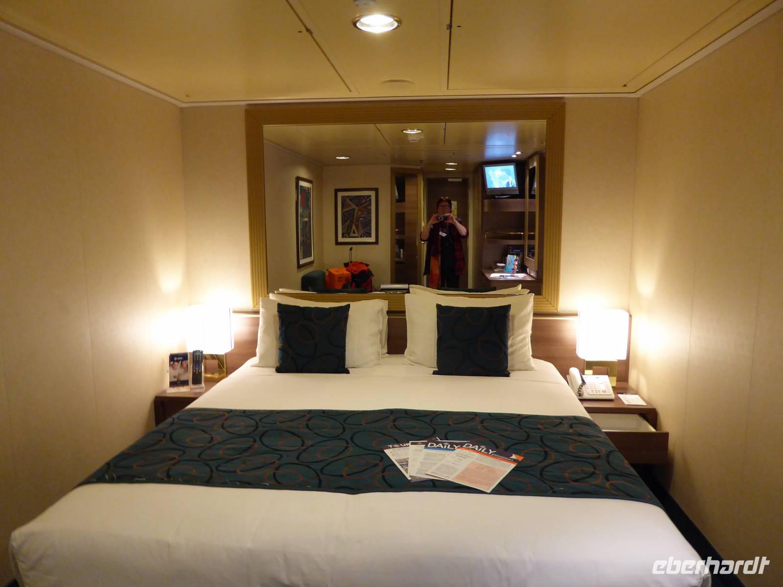 Jede Kabine erhält ein Tagesprogramm, auf dem zu entnehmen ist, was die uns tagsüber erwartet. In der Zanzibar werden rund um die Uhr Kaffee, Tee, Wasser und Eiswürfel angeboten. Dort gibt es auch das Frühstück bis um elf, nahtlos geht es zum Mittagessen über und anschließend gibt es Pizza, Hamburger oder sonstige Naschereien. Wer will, kann also rund um die Uhr speisen.