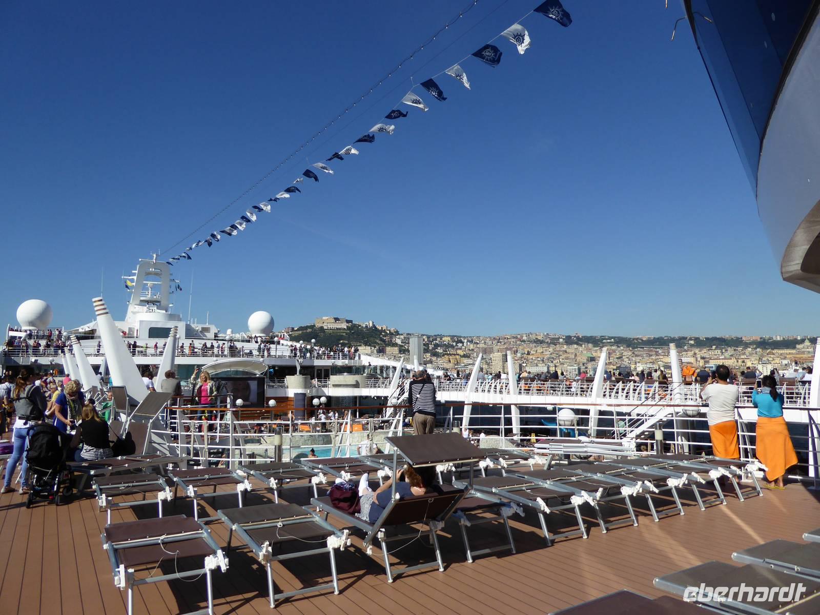 Andere Ausflüge führten nach Capri oder Sorrent. Um 18.30 Uhr müssen jedoch alle wieder an Bord sein, denn pünktlich um 19.00 Uhr verlassen wir den Hafen von Neapel und nehmen Kurs auf Messina.