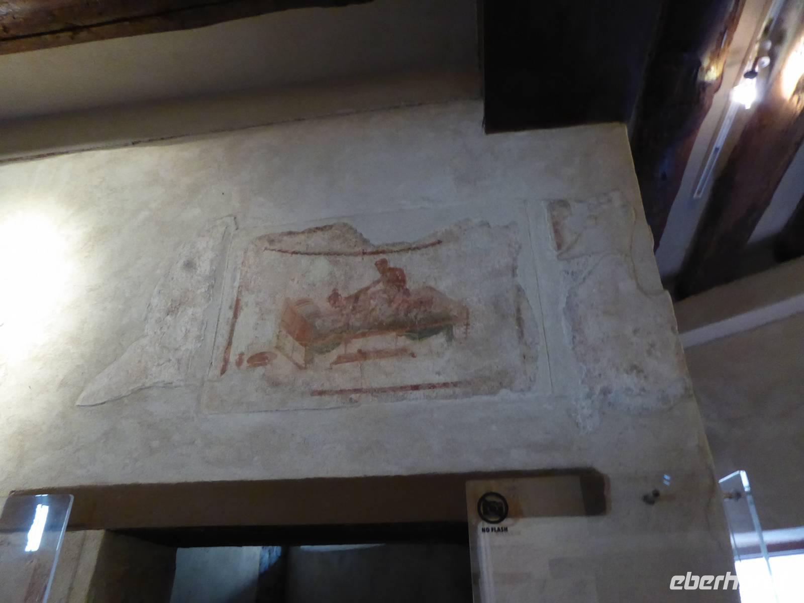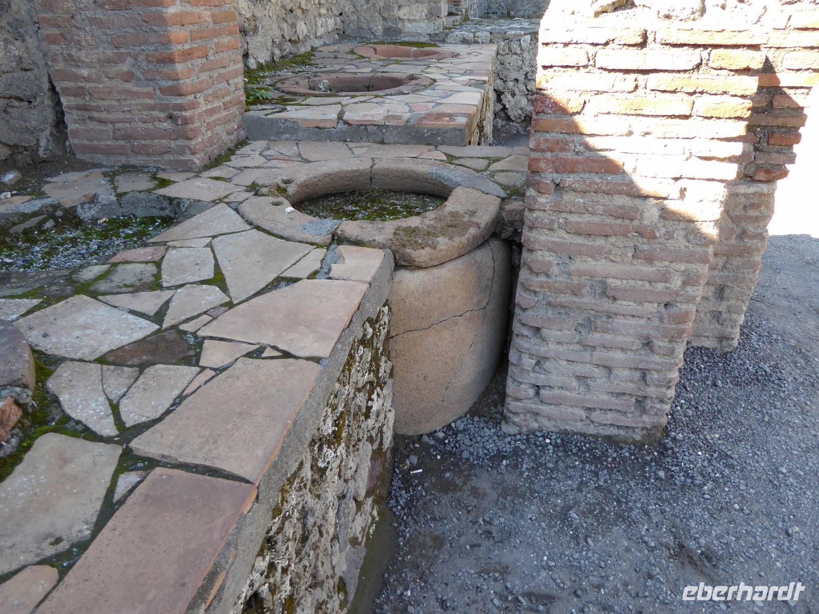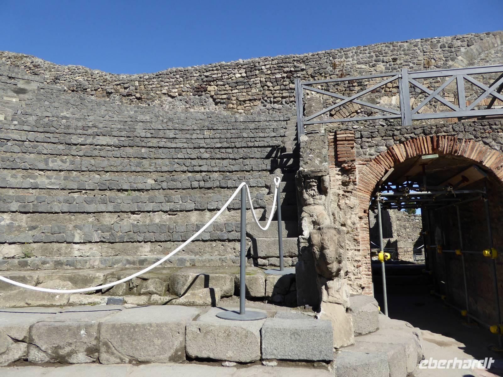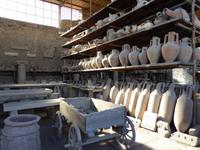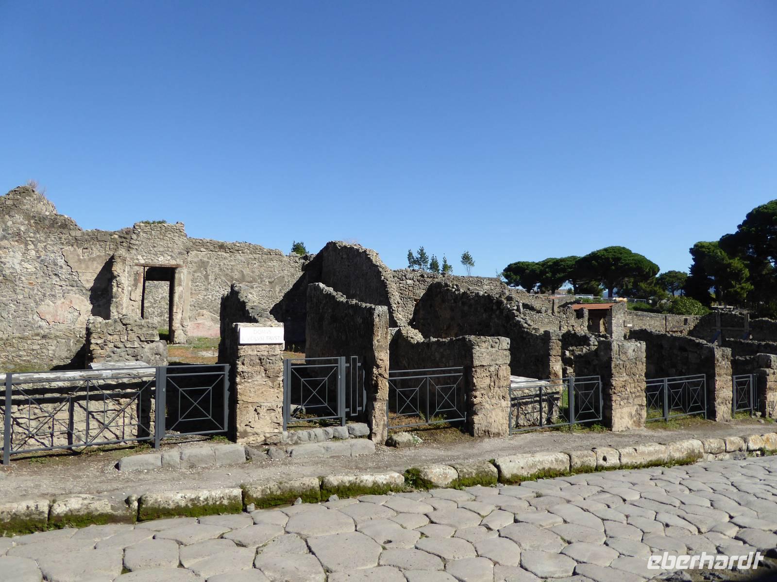 Nach einer halben Stunde Fahrt mit dem Bus erhalten alle Teilnehmer Kopfhörer, die es ermöglichen, den Guide auch auf weitere Entfernungen deutlich zu hören. Wir besichtigen die Ruinen der Stadt, in der einst blühendes Leben herrschte. Unserem Guide gelingt es, die Führung so zu gestalten, dass wir eine Vorstellung von der Stadt bekommen. Besonders faszinierend scheint für ihn das Eroscenter zu sein, denn immer wieder macht er uns darauf aufmerksam, welche Hinweise es noch heute zu dem damaligen erotischen Leben der Stadt gibt. Wir besuchen das Haus des Fauns, eine Villa aus dem zweiten Jahrhundert v. Chr., die einem Patrizier gehörte und nach einer Bronzestatue im Atrium des Hauses benannt wurde. Interessant ist auch die Bäckerei, die den Eindruck macht, als könnte sie man heute wieder in Betrieb nehmen. Zum Schluss, als alle Füße müde sind, bleibt noch Zeit, ein Souvenir zu erstehen oder ein leckeres Eis zu überhöhtem Touristenpreis zu kosten.