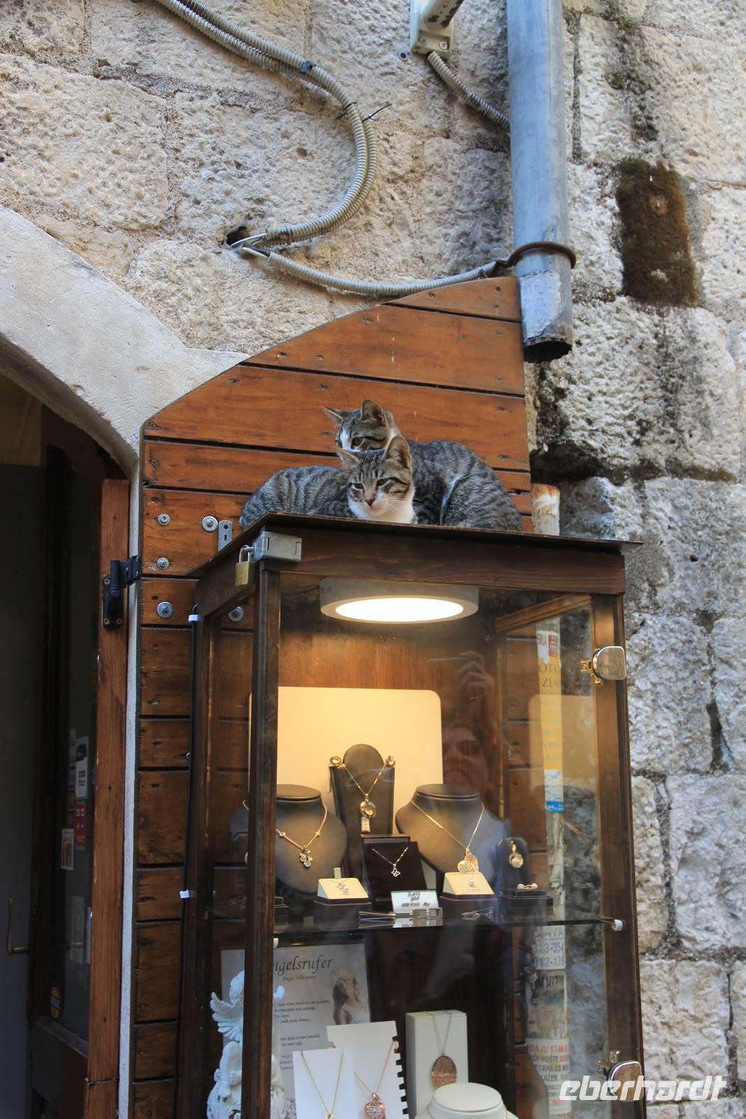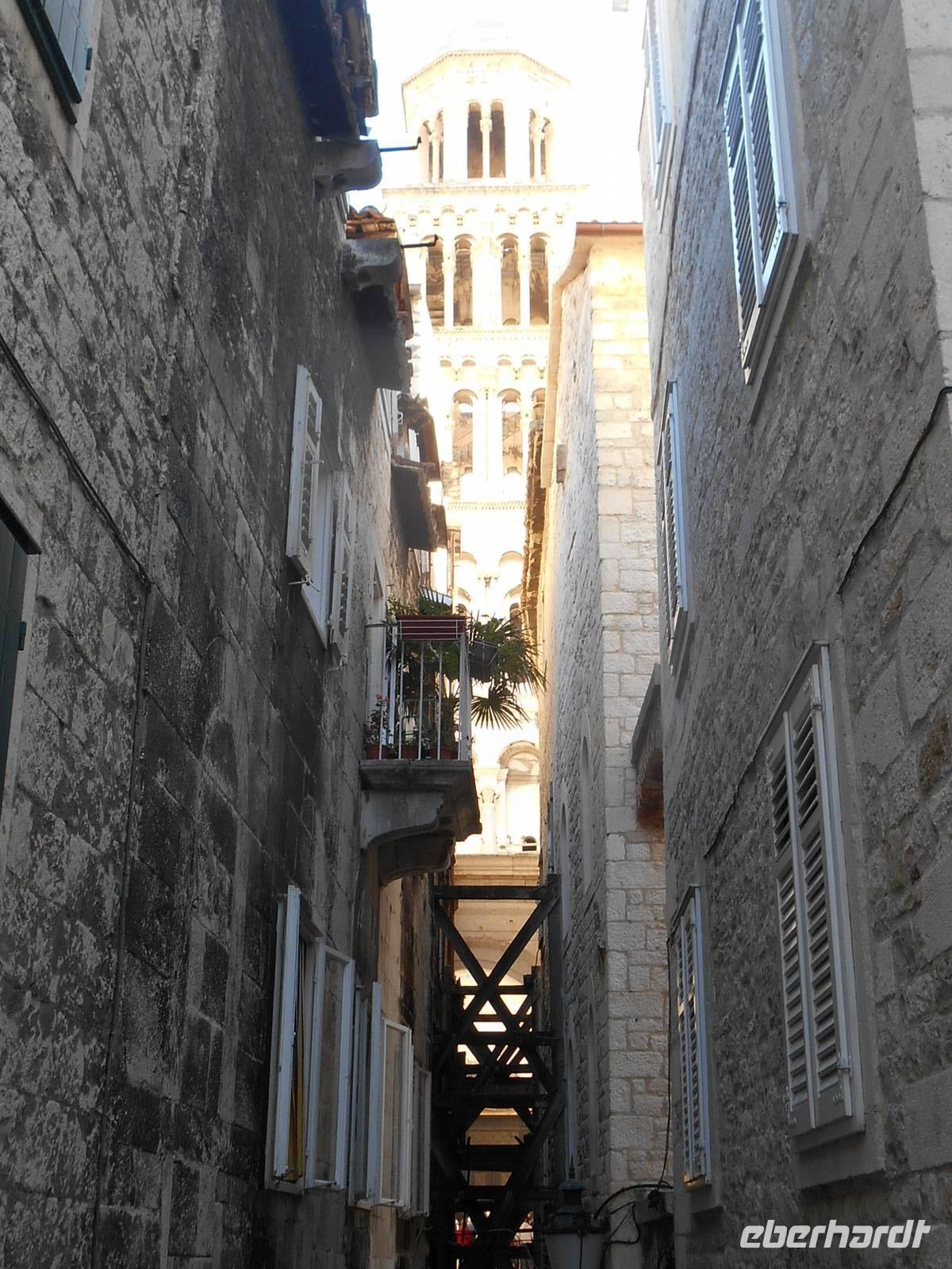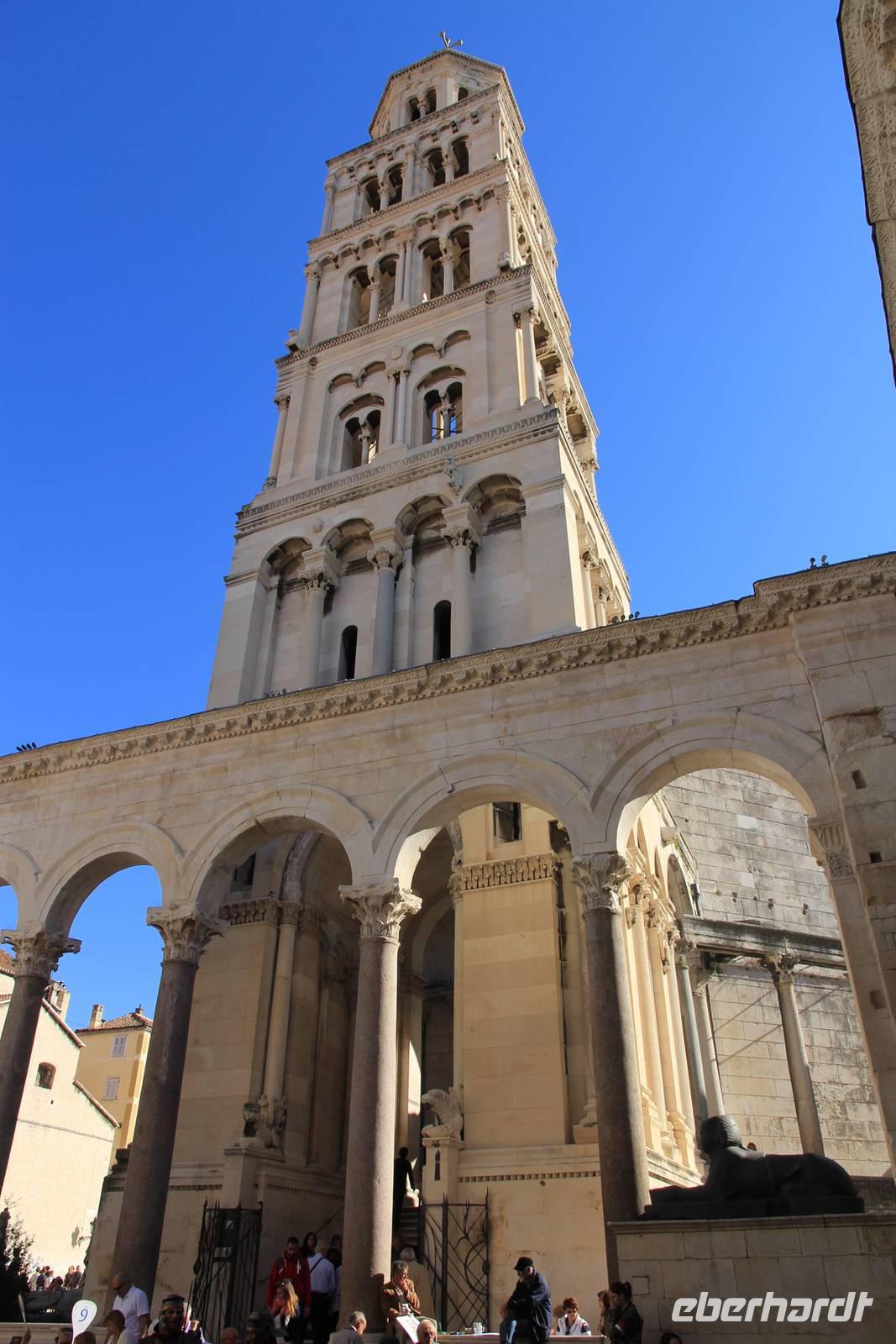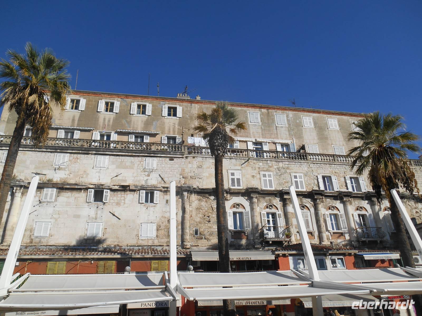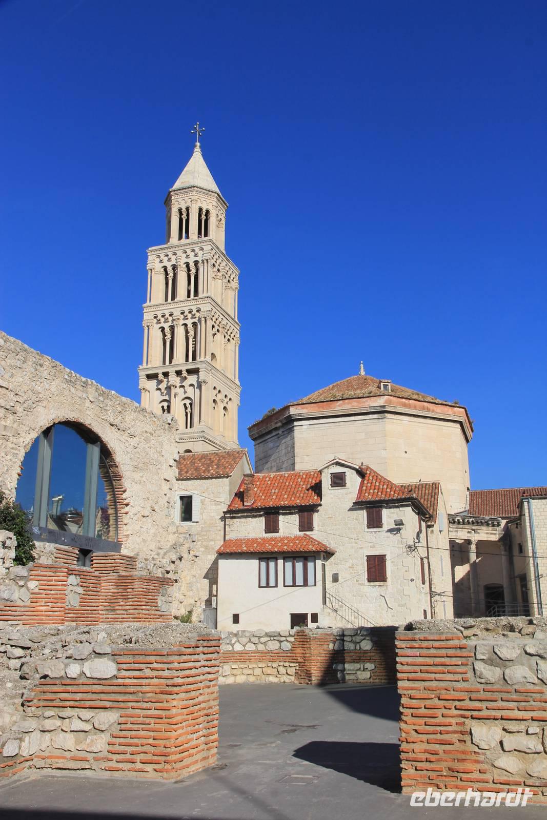 Einst sollte der Palast den Herrscher schützen; er wurde längst von Touristen aus allen Teilen dieser Welt erobert. Wir lassen uns einfach im Strom der Besucher treiben und drehen dabei die Zeit zurück. Unsere Führer nehmen uns mit auf diese Zeitreise; hier in den Kellerräumen ist noch viel aus der Römerzeit erhalten geblieben, als wir aber die steile Treppe emporsteigen, haben wir gleich Jahrhunderte übersprungen und sind im Mittelalter angelangt. Schmale Gassen kreuzen sich hier und am Platz Peristyl sind wir im Zentrum angelangt. Mächtige Säulenreihen umstehen den Platz der von der Domkirche dominiert wird; hier, an diesem schönen Ort, gibt es oft Konzerte und Opernaufführungen.