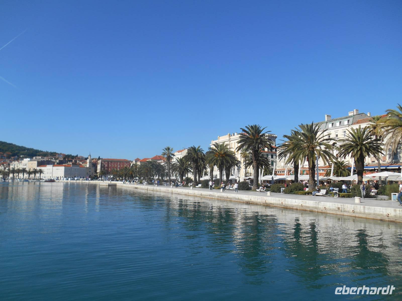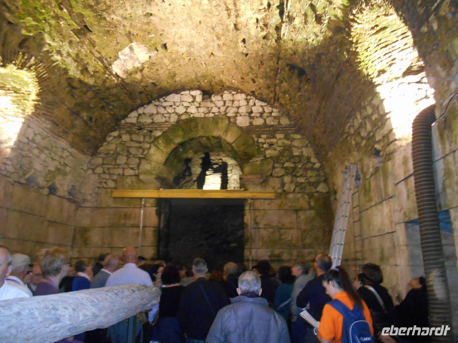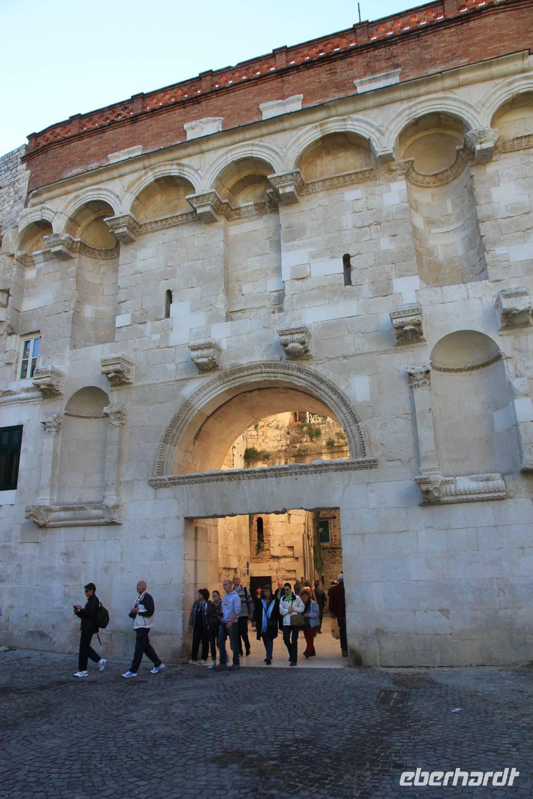 Unser Weg führt entlang der Hafenkante; die Morgensonne meint es gut und die kleinen Wellen reflektieren das Licht auf dem Wasser, dass es nur so funkelt. Dann kommt die Riva in Sicht, die Promenade und zugleich auch die bekannteste Fußgängerzone der Stadt. Von hier können wir auch den südlichen Teil von dem Palast sehen, den uns der Römische Kaiser Diokletian hinterließ. In der Mitte dieses Palastes ist ein kleines Eingangstor, hier verschwinden wir nun im Inneren und kommen aus dem Staunen nicht mehr heraus. Wir sehen die mächtigen Fundamente und die Abstützungen, die den oberen Teil tragen; es mutet wie ein Wunder an, dass das schon vor gut 1 700 Jahren entstand; wahrlich, die Römer haben für die Ewigkeit gebaut!