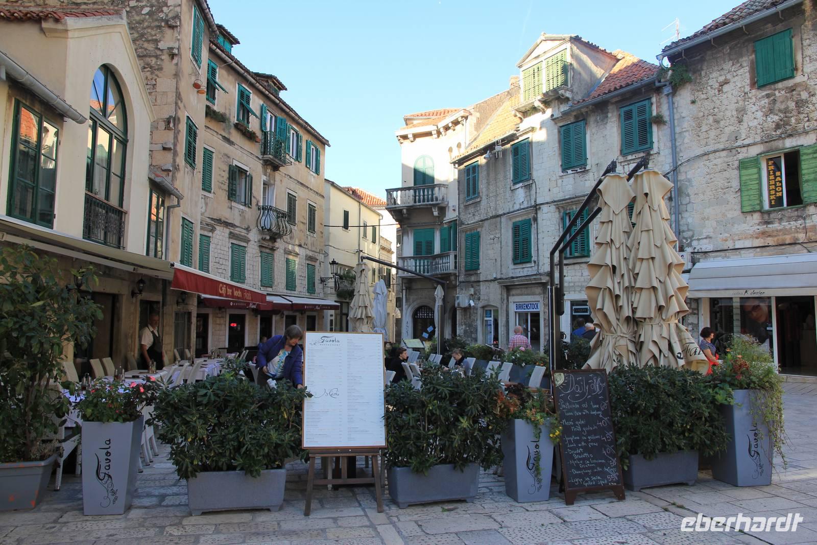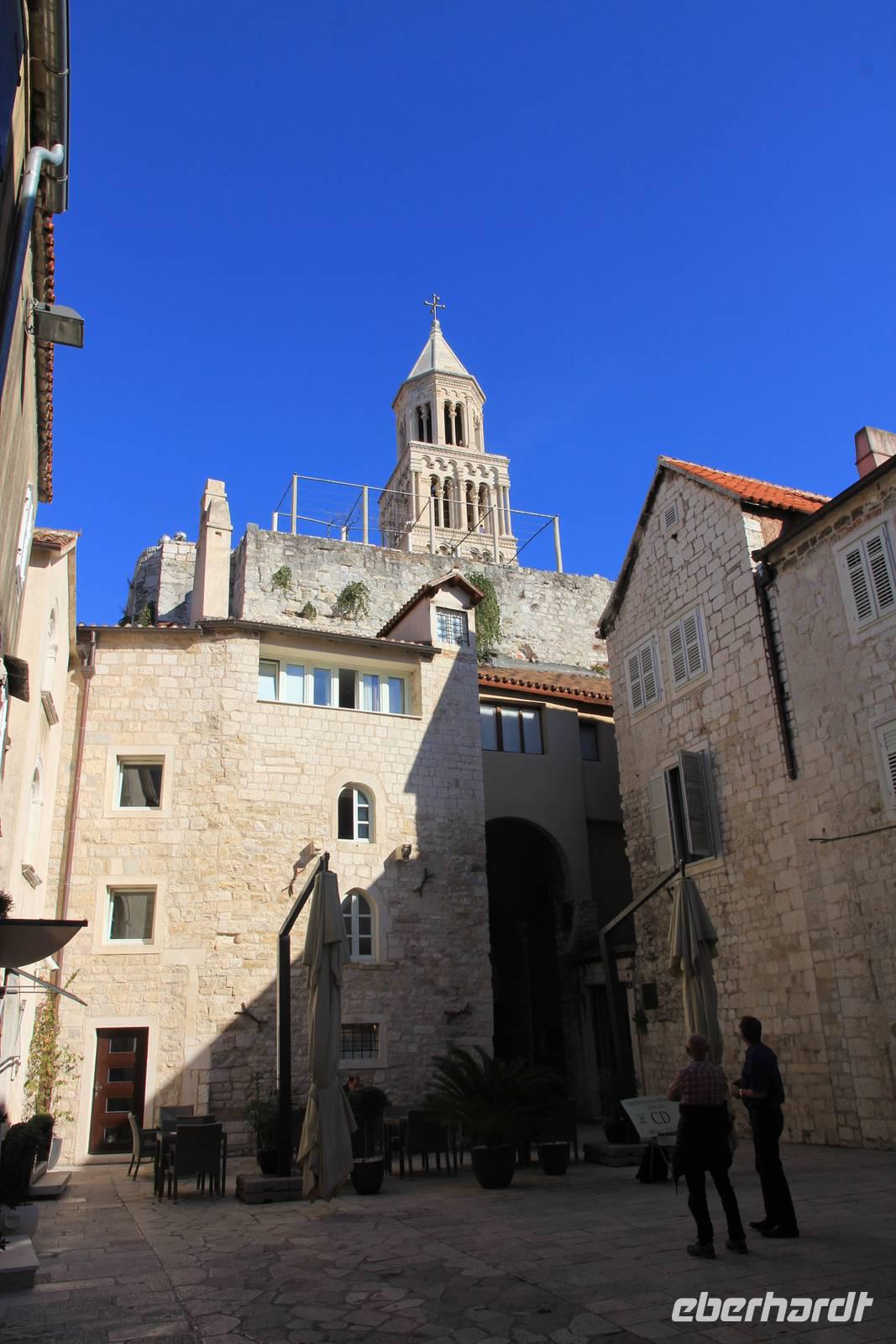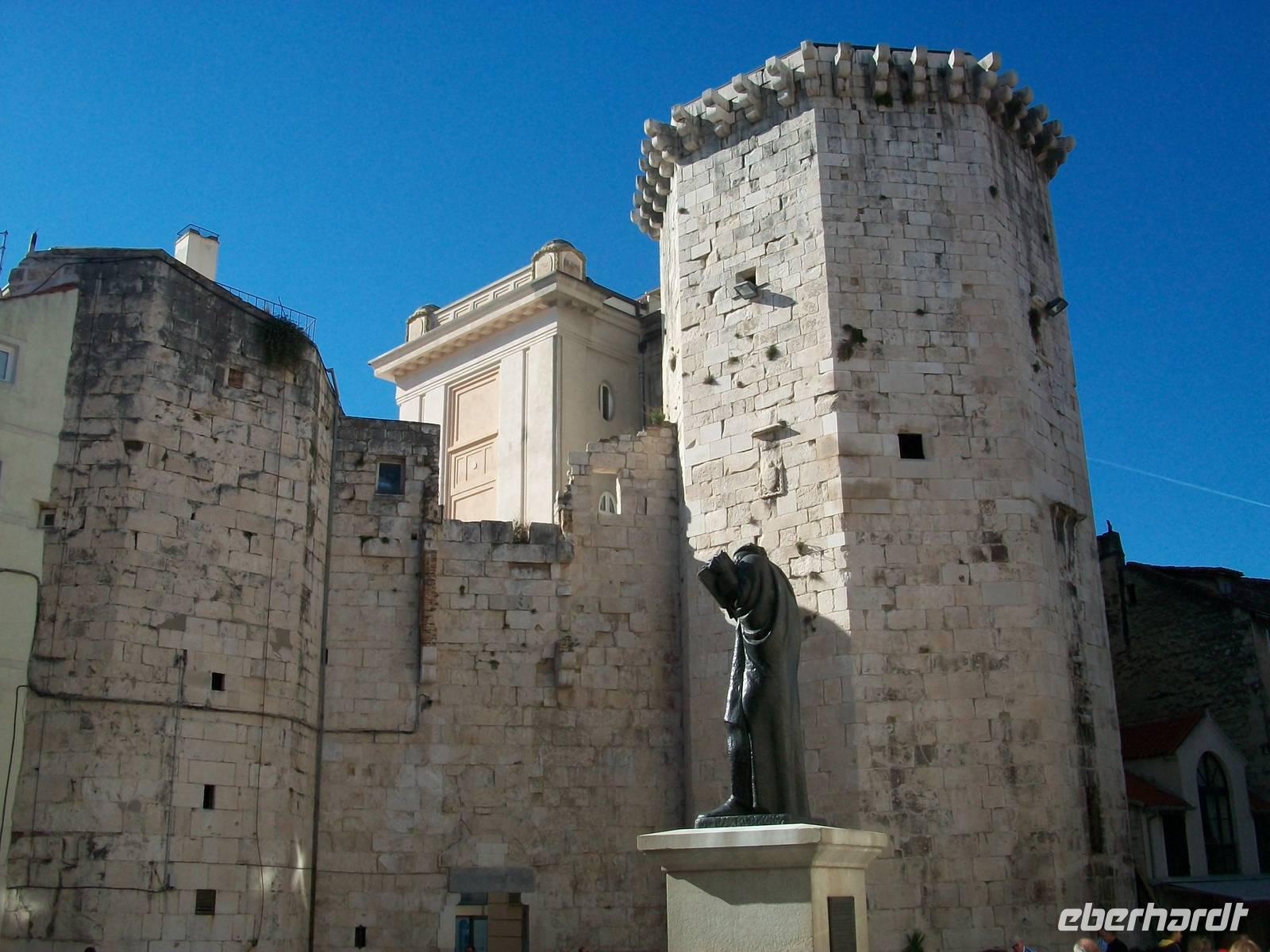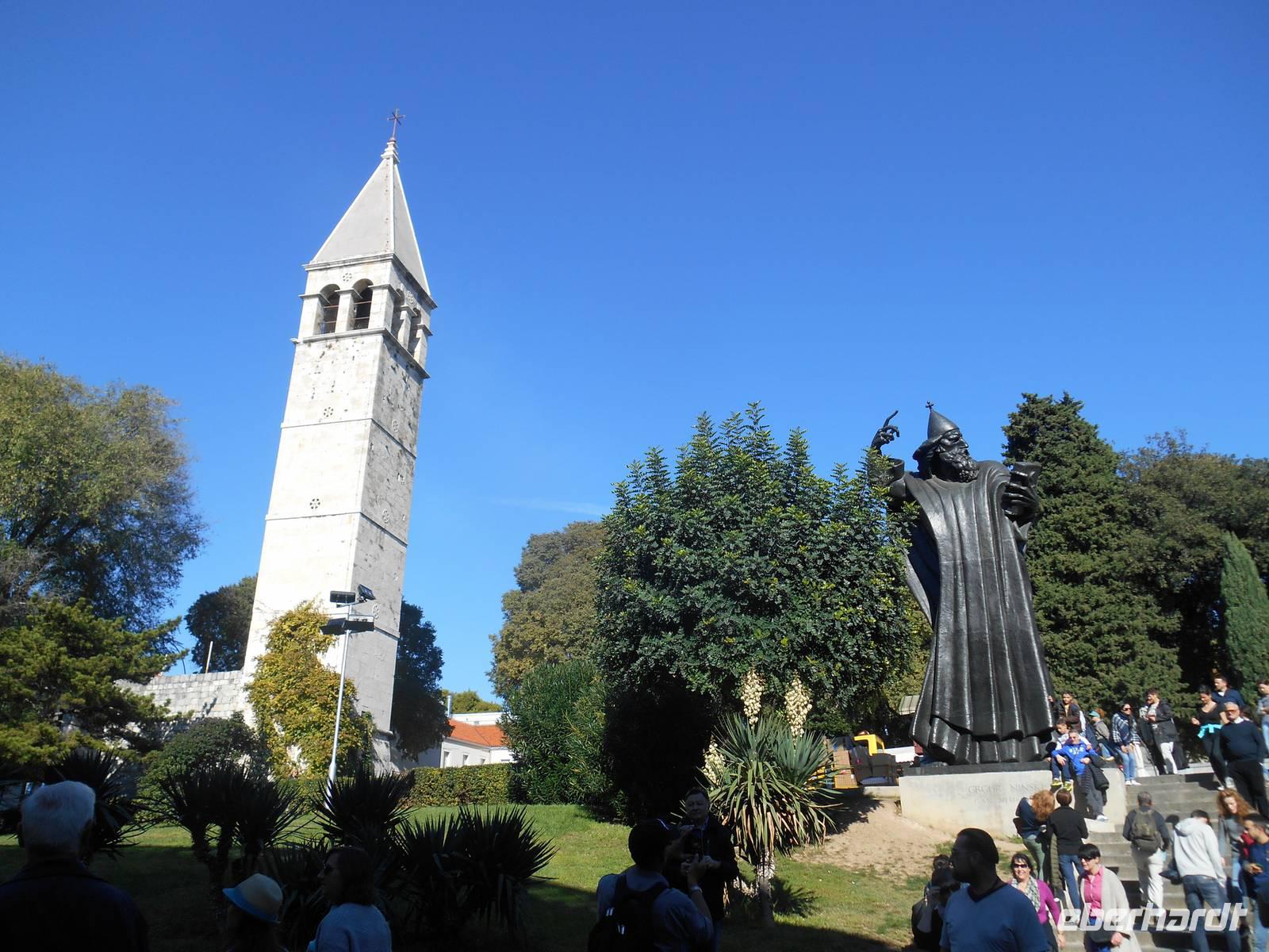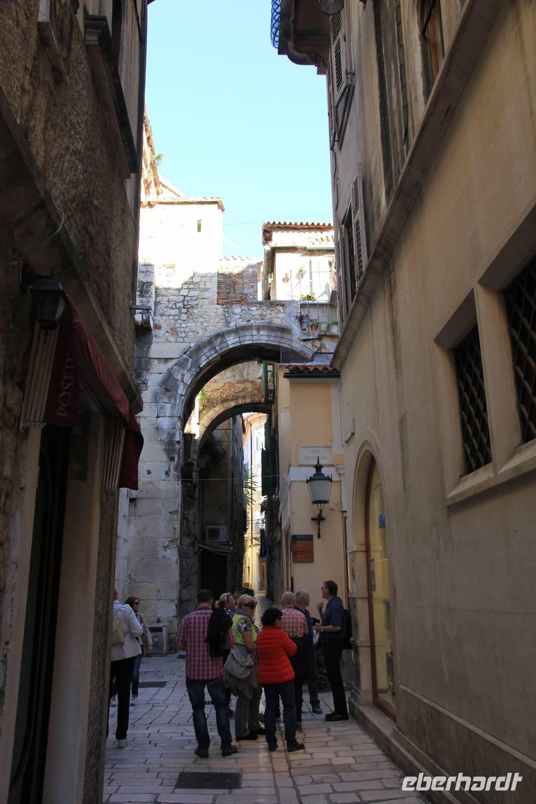 Die warme Herbstsonne begleitet unseren weiteren Weg durch das Gassengewirr; wir sehen den Jupitertempel, blicken in die pittoresken Innenhöfe hinein und bestaunen am Goldenen Tor die monumentale Statue des Bischofs Gregor von Nin, einst ein wichtiger Mann in der kroatischen Kirchengeschichte.