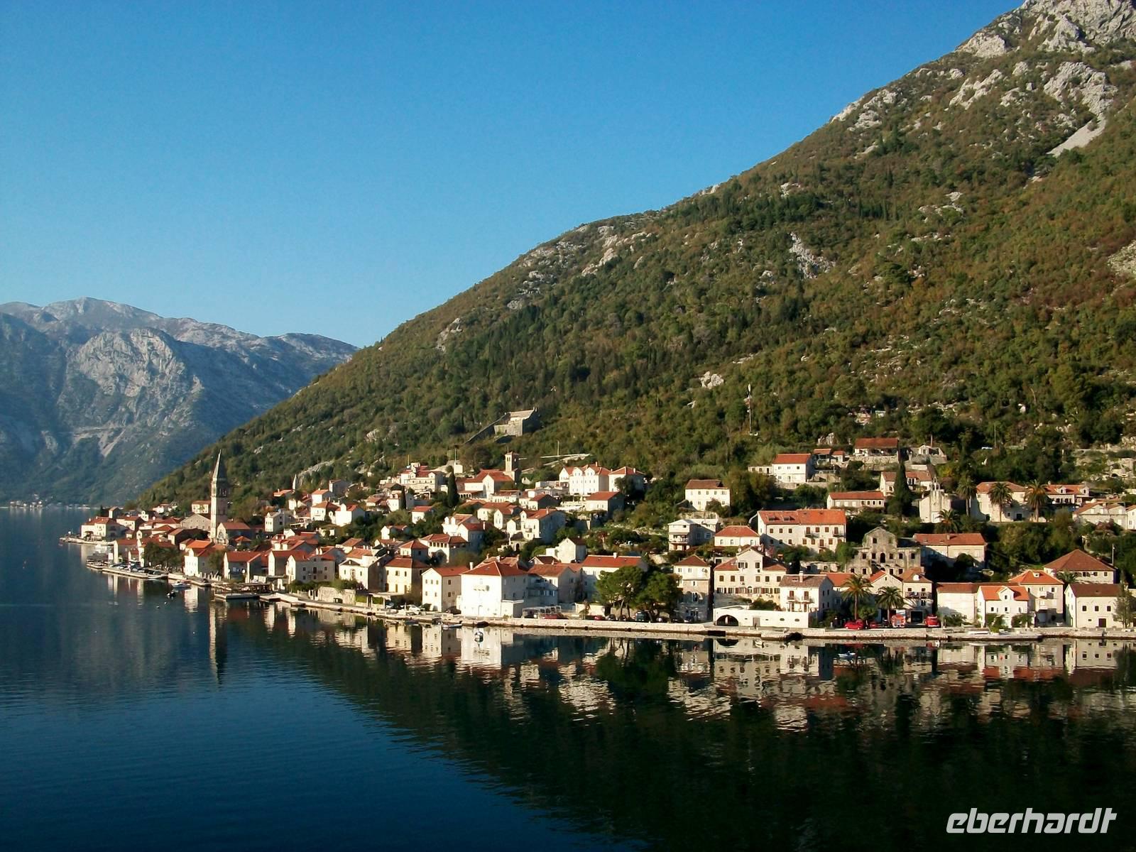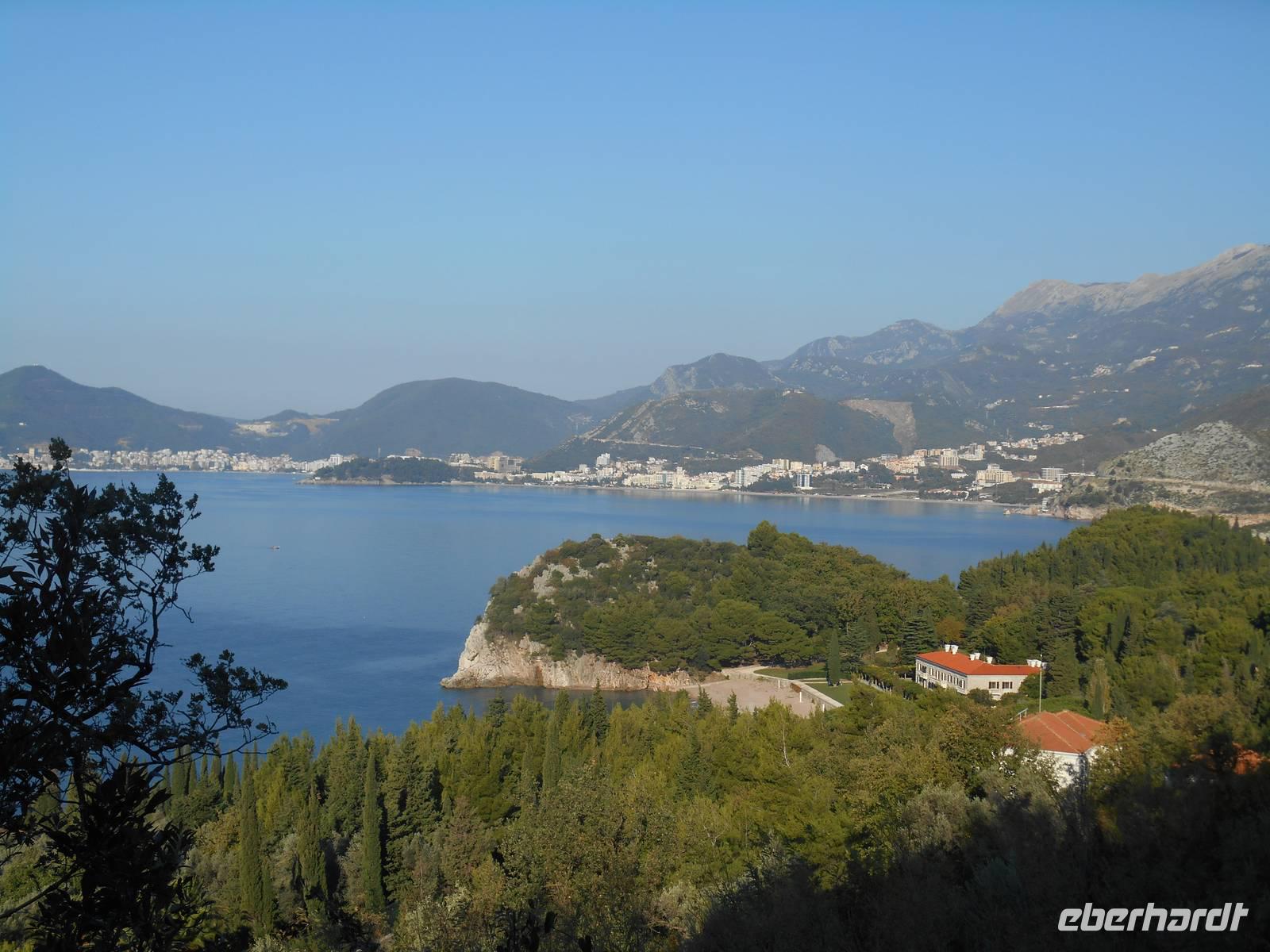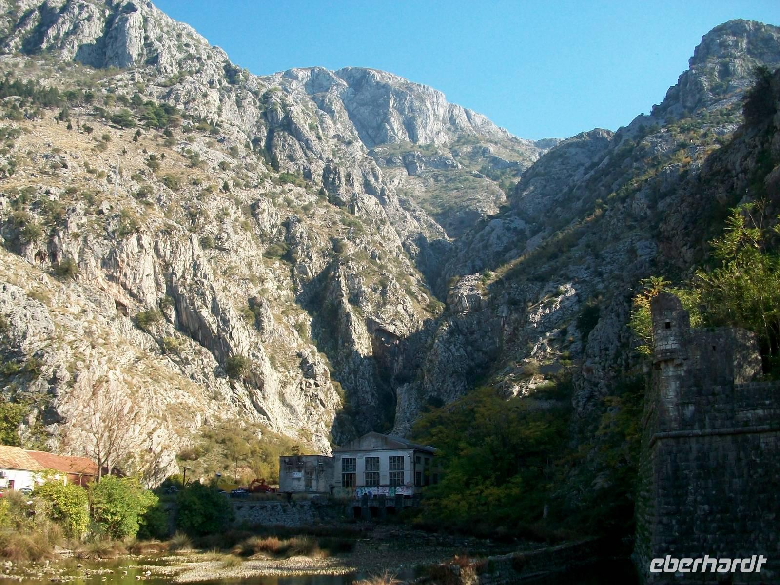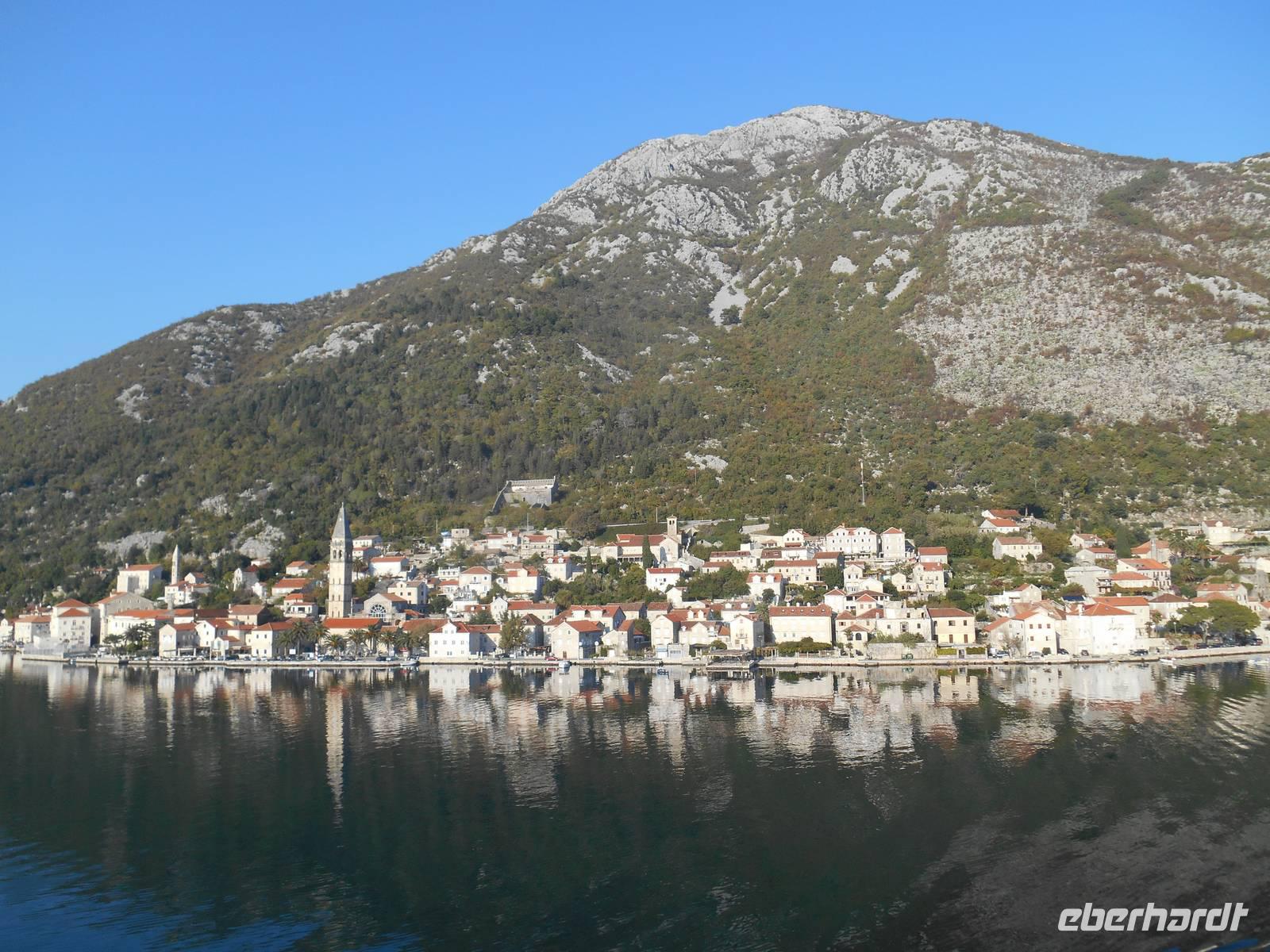 Die alten Venezianer sind auf demselben Weg wie wir unterwegs gewesen. Damals waren die Berge, die steil vom Wasser aufsteigen, mit dichten Wäldern besetzt und dies übte auf die Betrachter einen etwas unheimlichen Eindruck aus, denn diese schroffen Erhebungen sahen damals sehr dunkel aus. Die Seeleute, immer auch sehr abergläubig, raunten sich leise zu: „Das ist das Land der Schwarzen Berge!" in ihrer Sprache Monte Negro. Als dann die Slawen einwanderten behielten sie den Ausdruck bei und nannten das Land welches sie besiedelten „Crna Gora", und das ist bis zum heutigen Tag so geblieben.