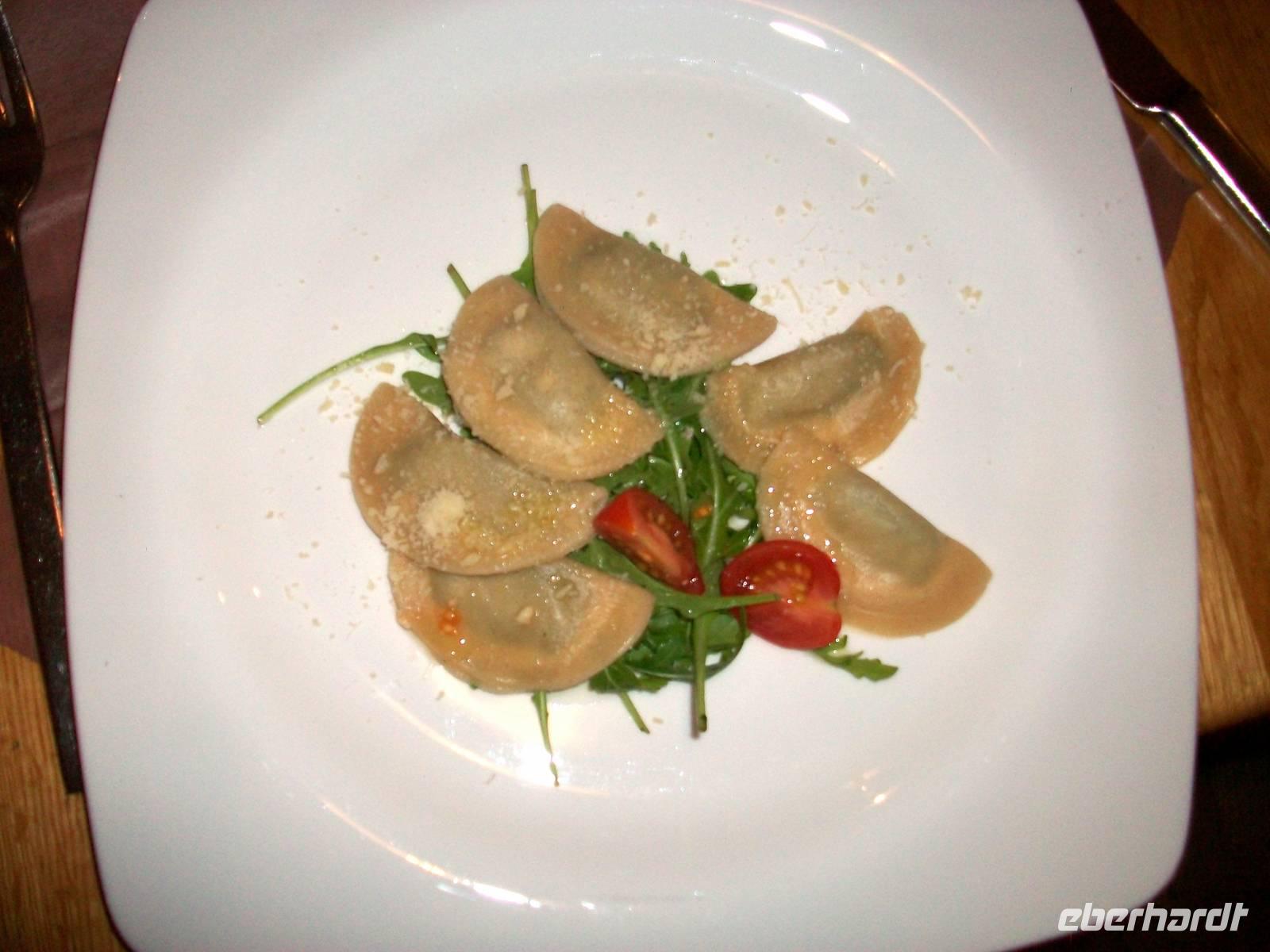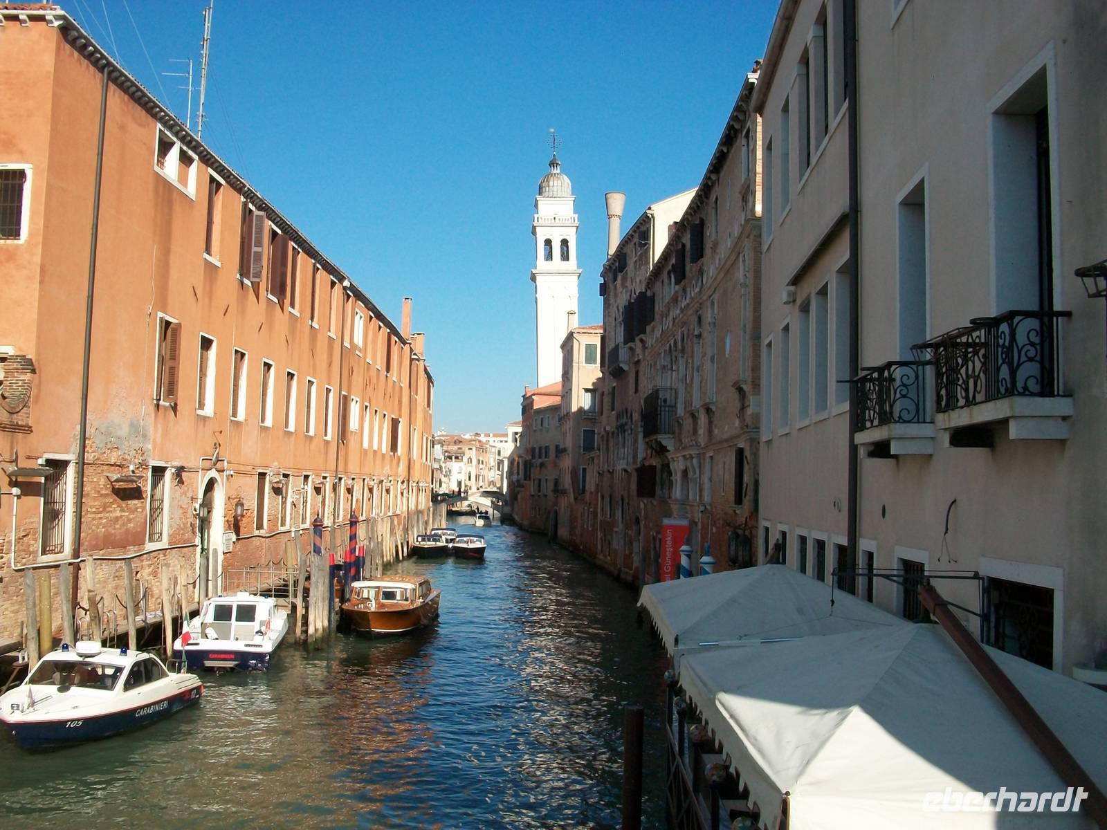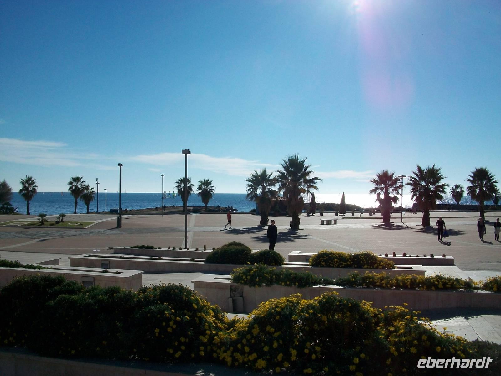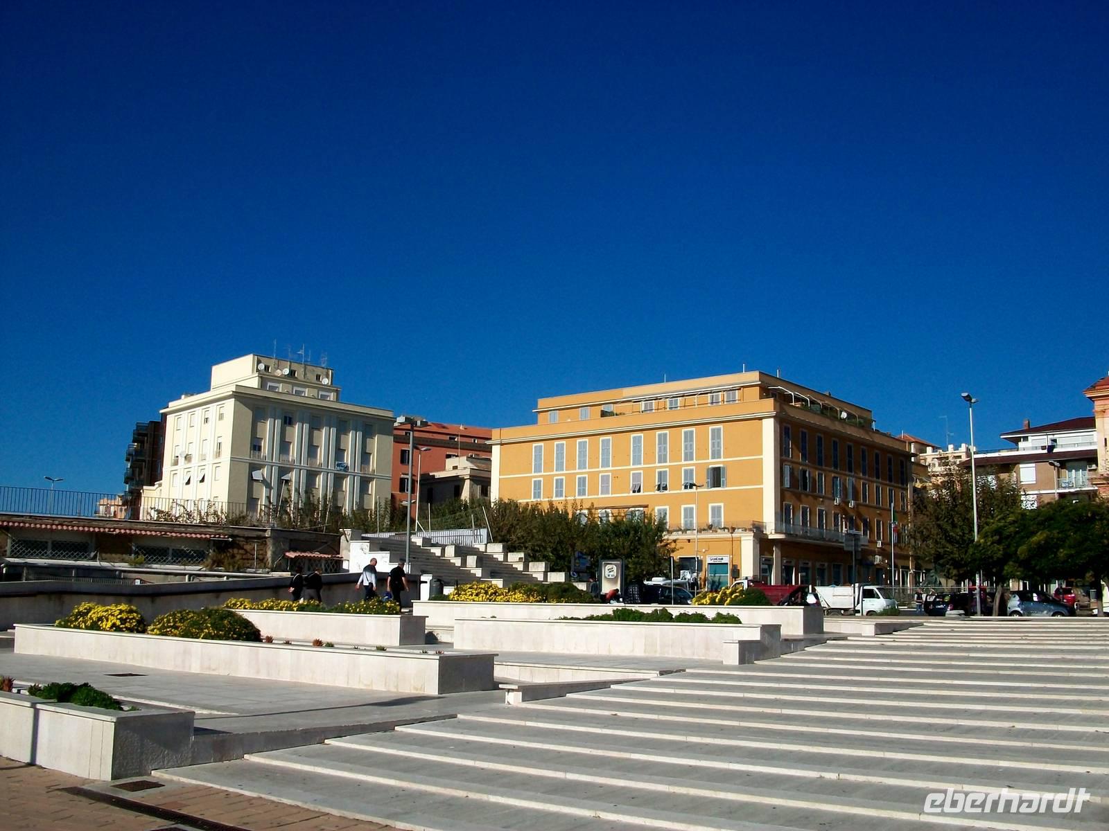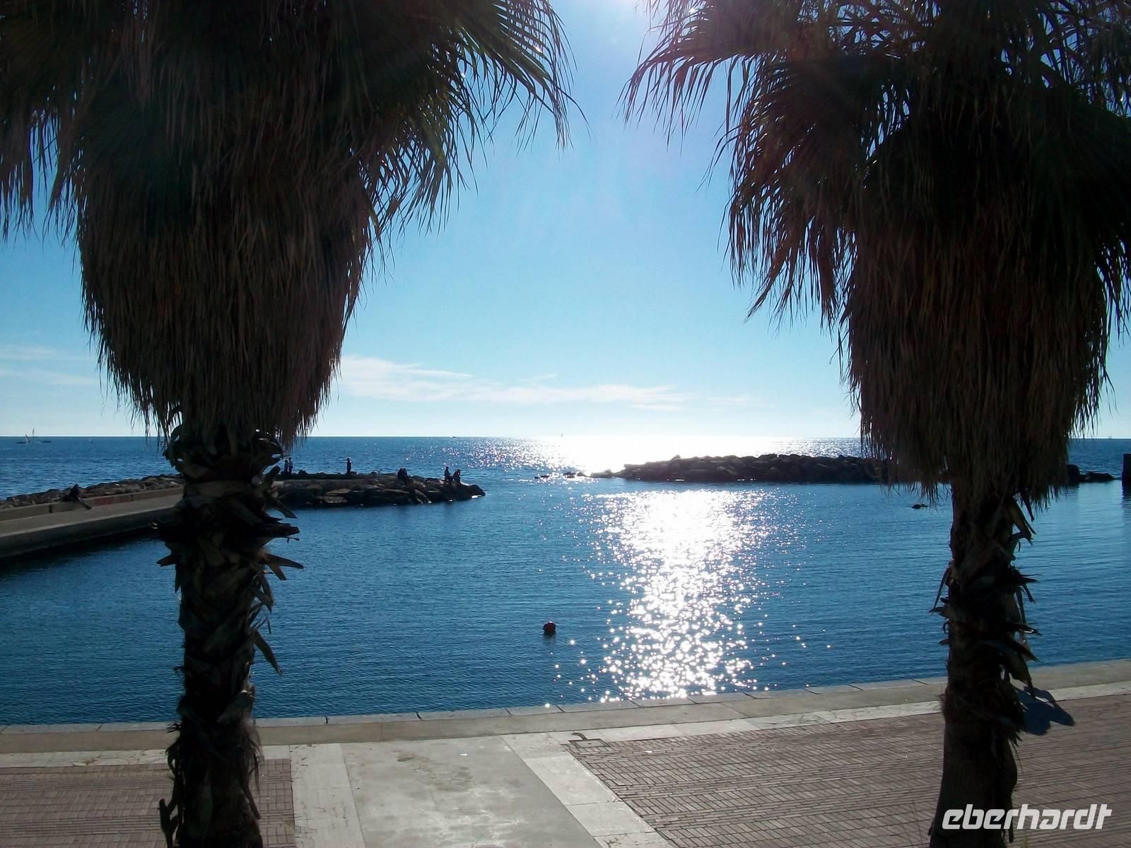 Der Weg führt uns dann noch über schöne Plätze und danach zurück zur sonnendurchfluteten Riva; ganz hinten ist auch unser Schiff auszumachen auf dem schon das Mittagessen bereitet wird, welches uns wenig später die nötige Kräftigung gibt.