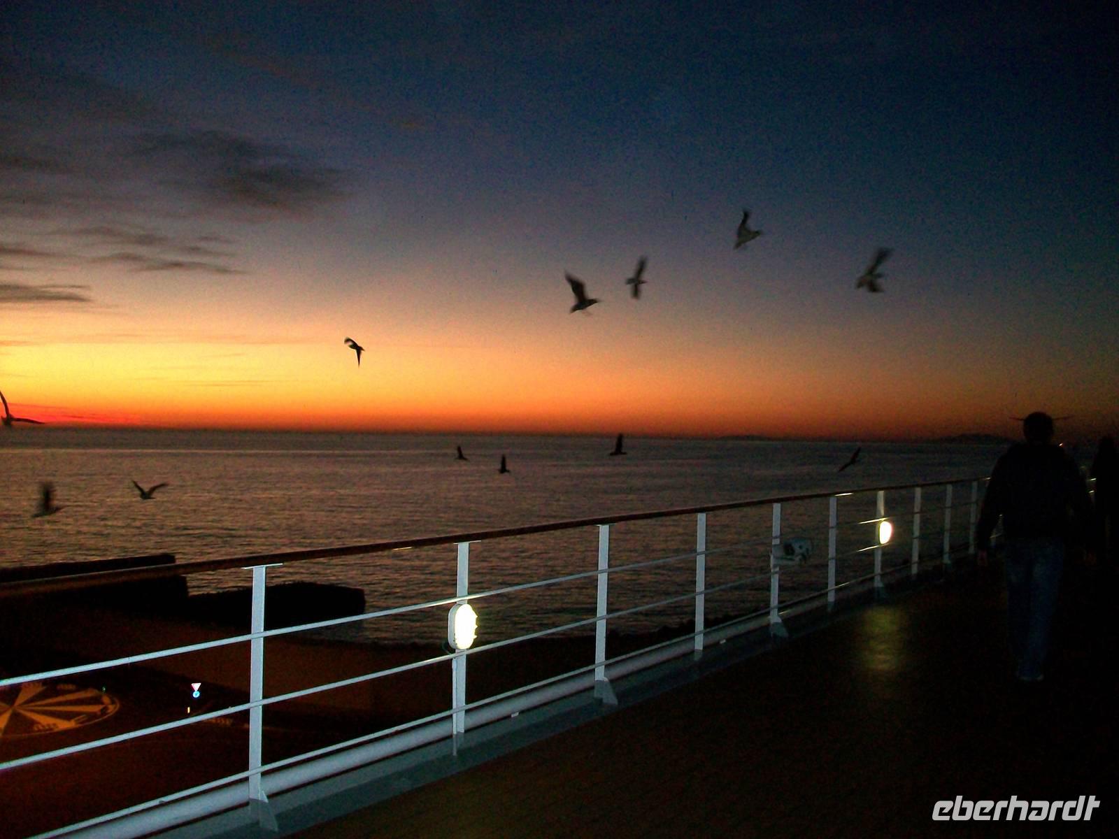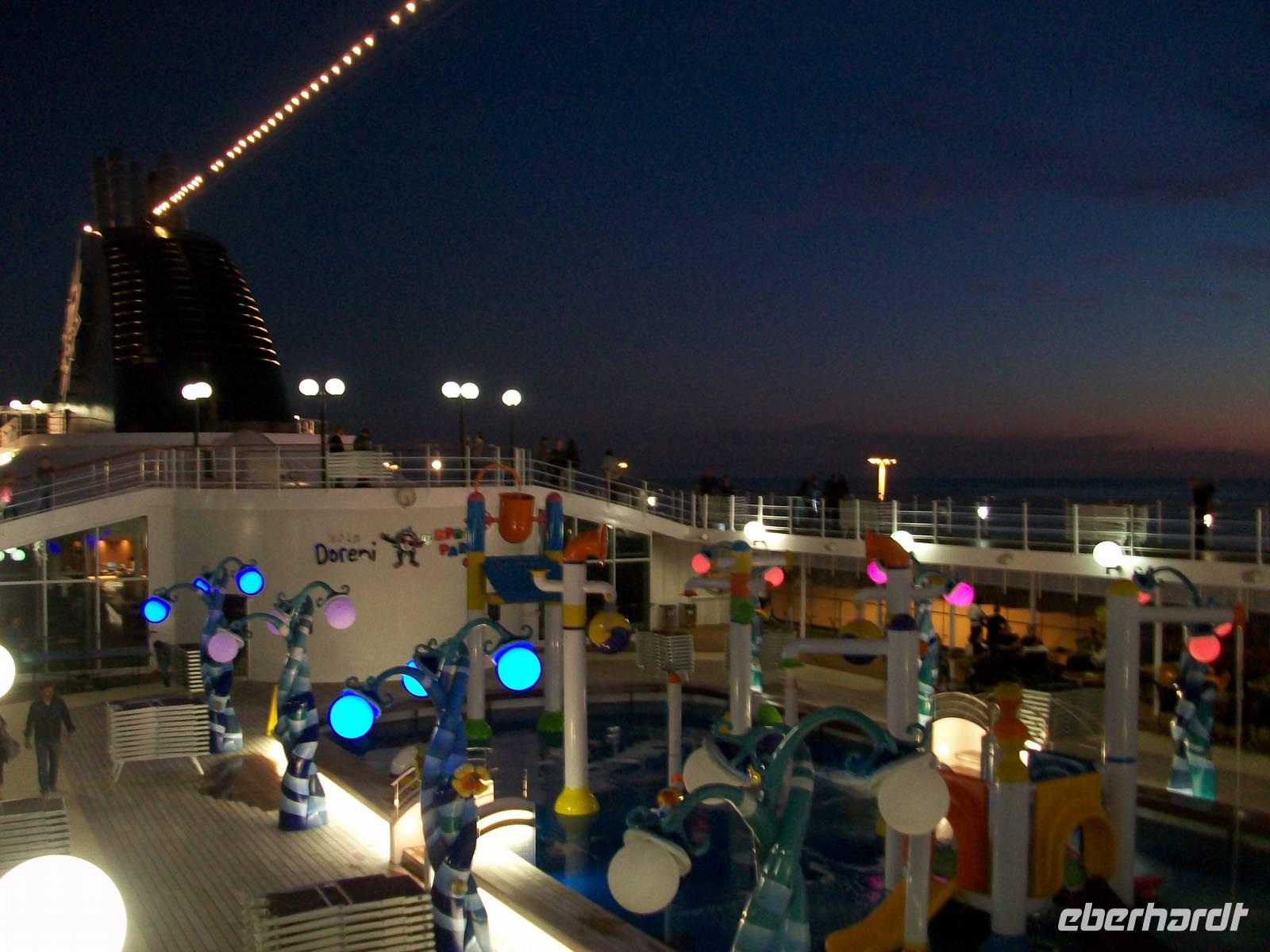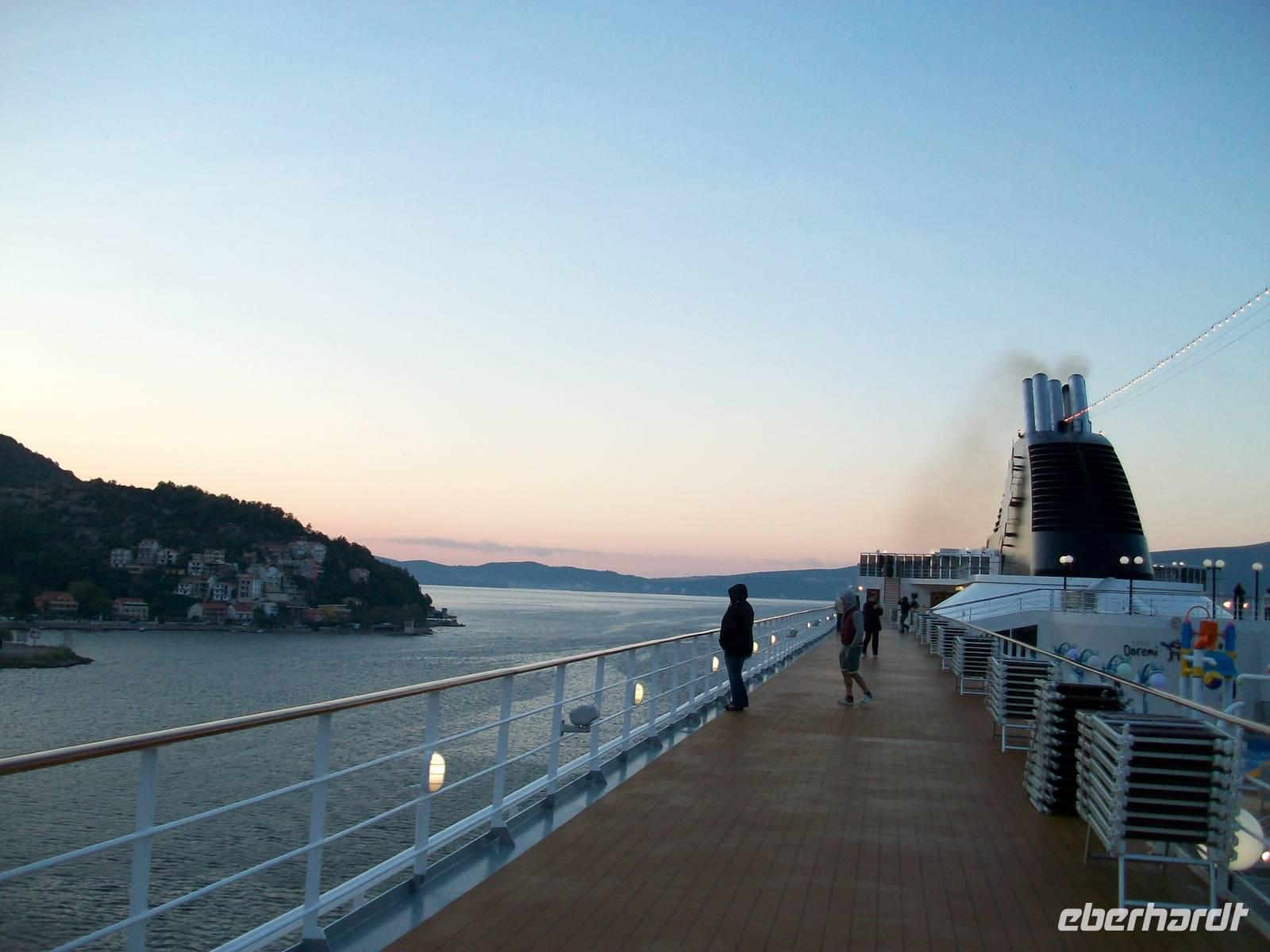 Diesen Tag verbringen wir auf See, denn das Schiff umrundet den Fuß des Italienischen Stiefels. Wir nutzen die Zeit zum Bummel durch alle Geschäfte und Einrichtungen auf und unter Deck.