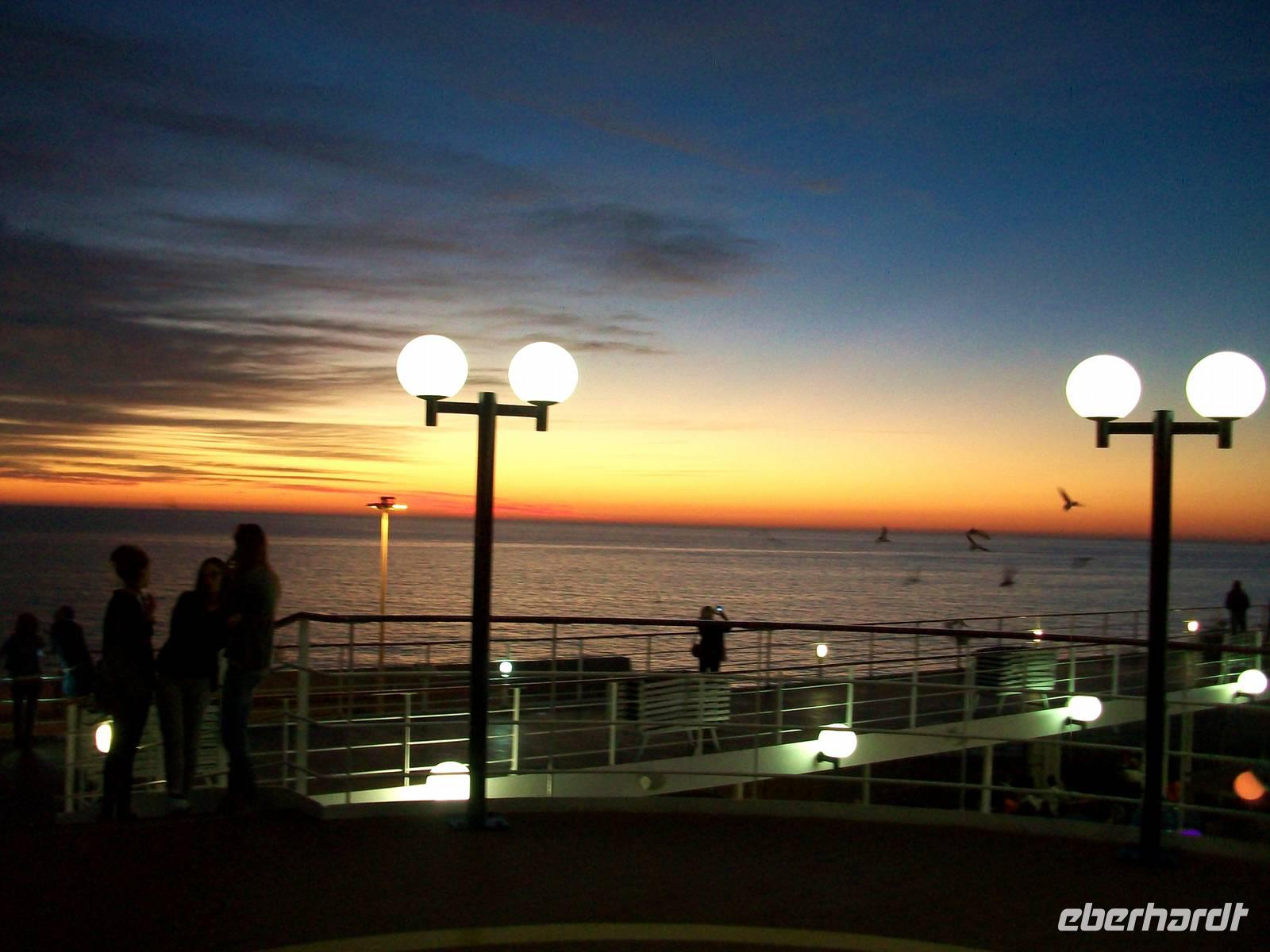 Die Musiker spielen, wir sind im angeregten Gespräch, allein die Zeiger der Uhr drehen sich unaufhörlich, es wird langsam Zeit an Bord unseres Schiffes zurückzukehren. Die Sonne hat sich auch in Richtung Horizont begeben, und als wir an der Riva entlanglaufen, verschwindet sie im Westen langsam im Meer- ein schöner Tag geht zu Ende!