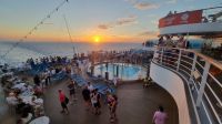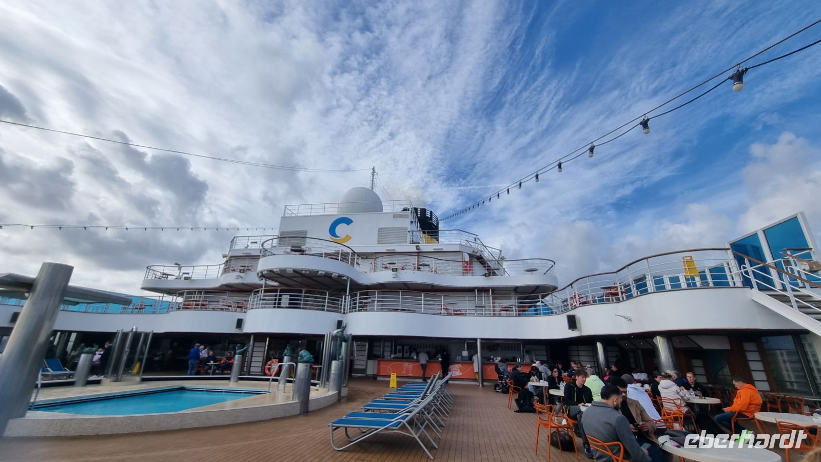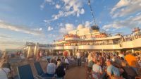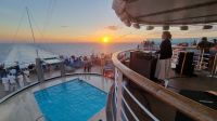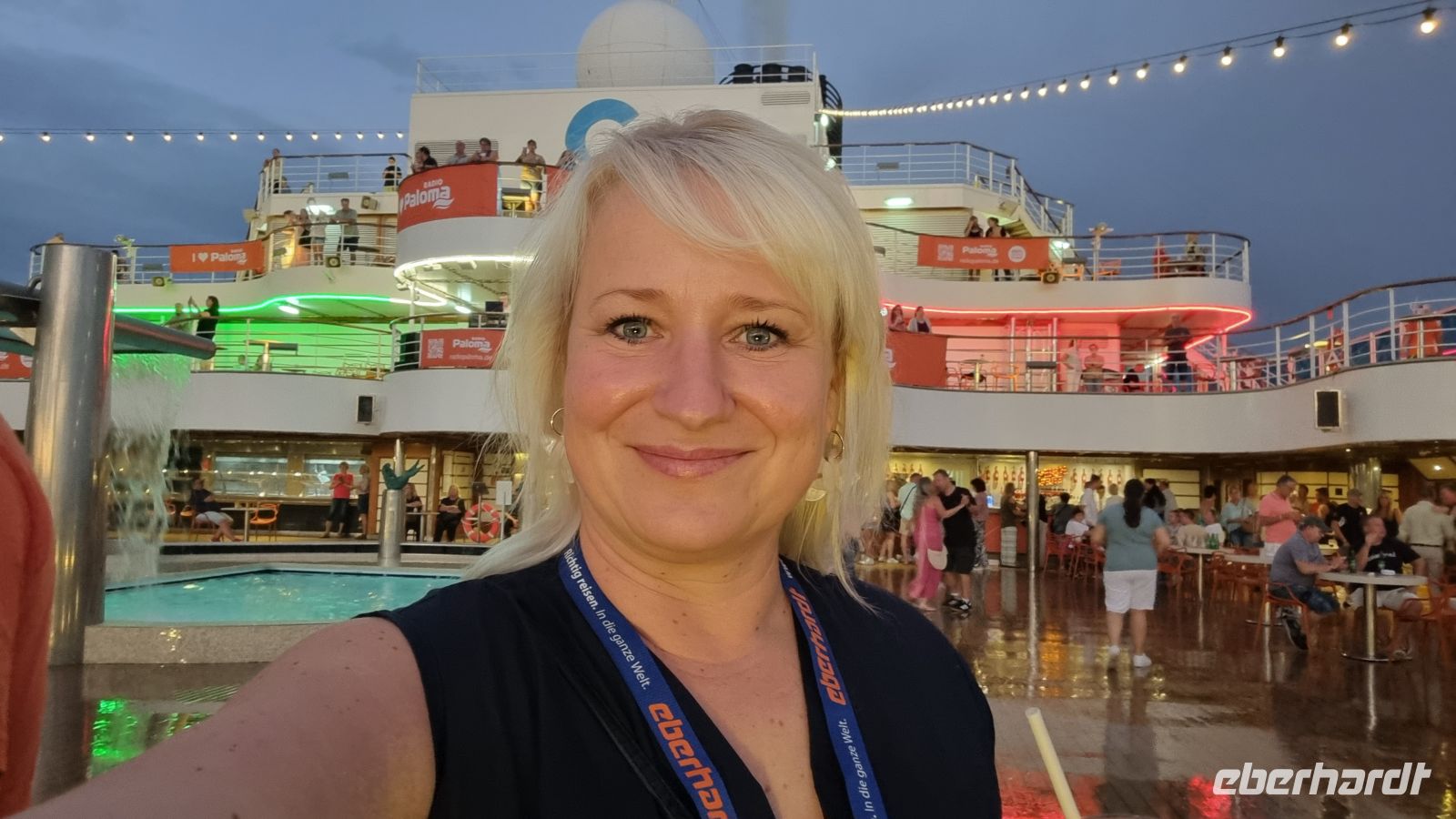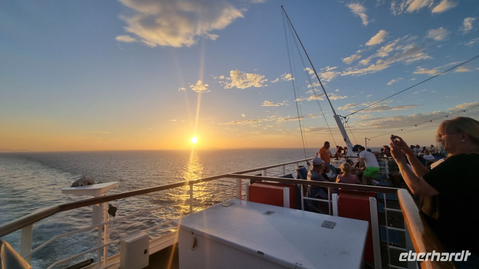 Am Nachmittag hieß es wieder alle an Bord, und beim Auslaufen herrschte auf Deck 9 an der Aperol Bar beste Stimmung – begleitet von einem bunten Schlagermix und der warmen Mittelmeerbrise.