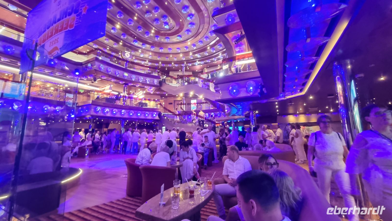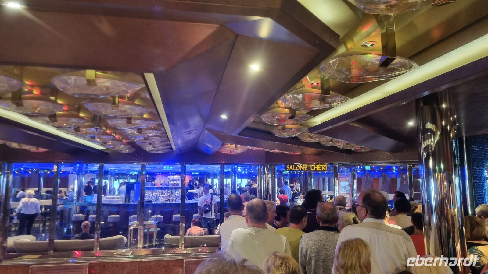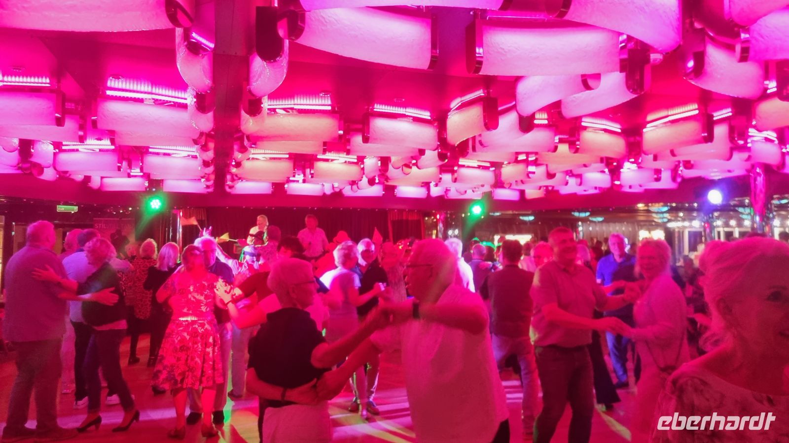 Zum Abschluss des Tages ging es noch einmal auf Deck 5 in die Cherry Bar, wo viele Gäste das neu Gelernte beim Discofox ausprobierten – ein schwungvolles Ende eines schwungvollen Tages auf See.