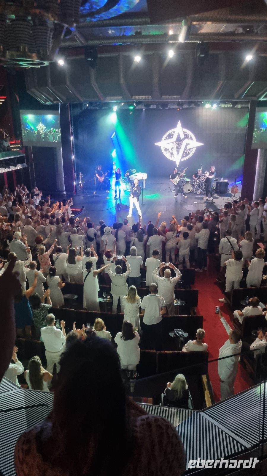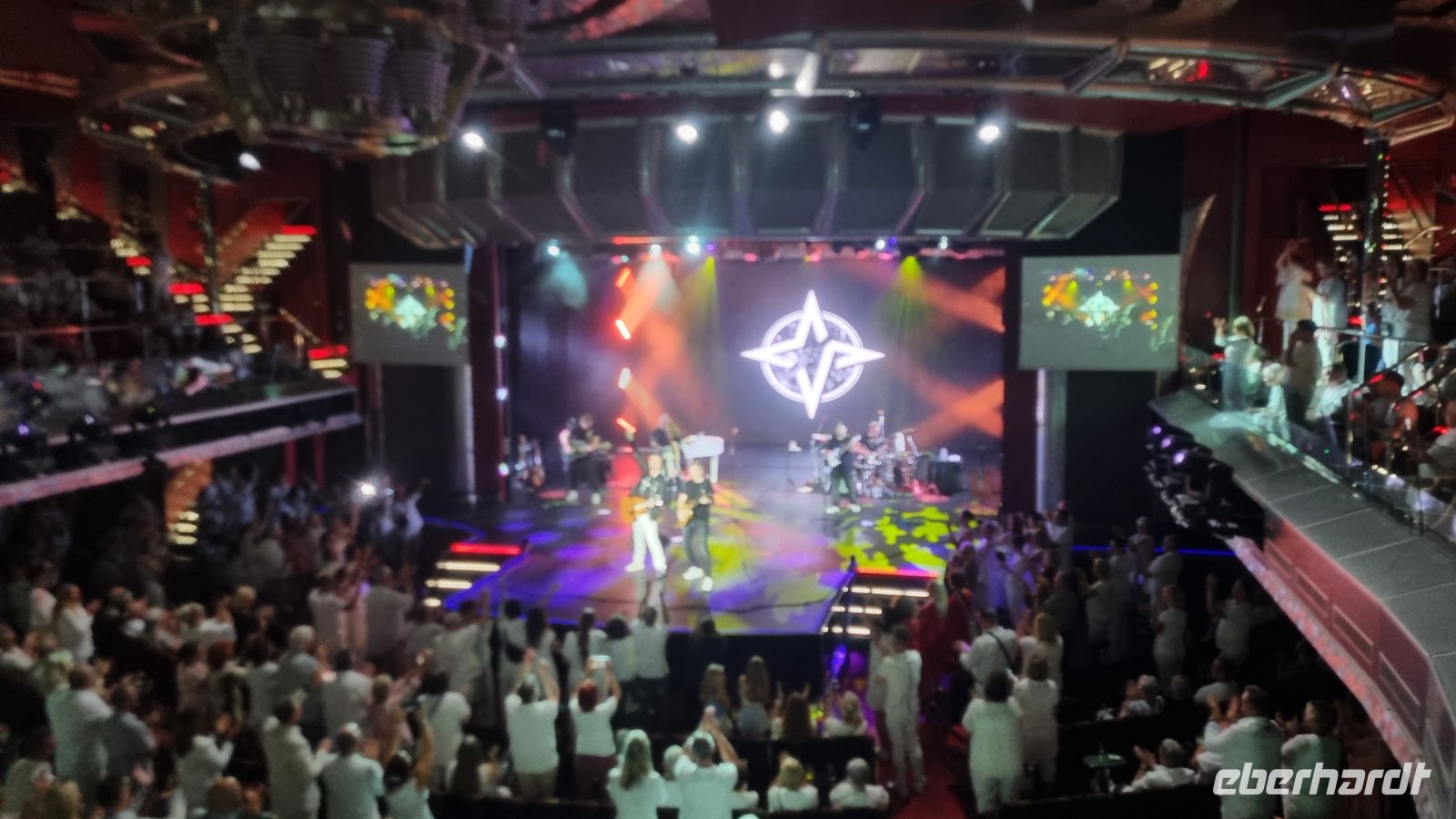 Der Abend stand unter dem Motto „White Night“, und ganz in Weiß gekleidet genossen wir das Flair an Bord. Nach dem Abendessen begeisterte Nick P. im Theater. Mit seiner Band sorgte er für großartige Stimmung – bekannt ist er durch Hits wie „Ein Stern (…der deinen Namen trägt)“, „Geboren um dich zu lieben“ und „Come on Let’s Dance“, die sofort zum Mitsingen einluden.