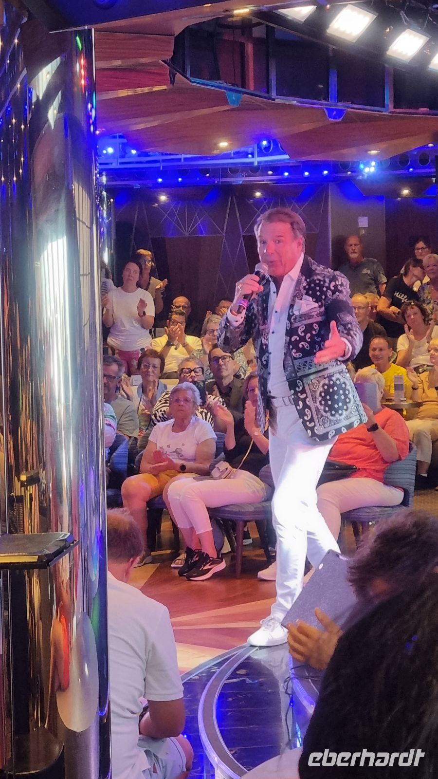Später ging es in der Grand Bar auf Deck weiter, wo die Starken Freunde mit energiegeladenem Schlager und viel Charme das Publikum mitrissen. Auf Deck 9 rundete Leonard, bekannt für seine eingängigen Melodien und seine herzliche Bühnenpräsenz, den Abend ab – ein stimmungsvoller Abschluss eines abwechslungsreichen Tages.