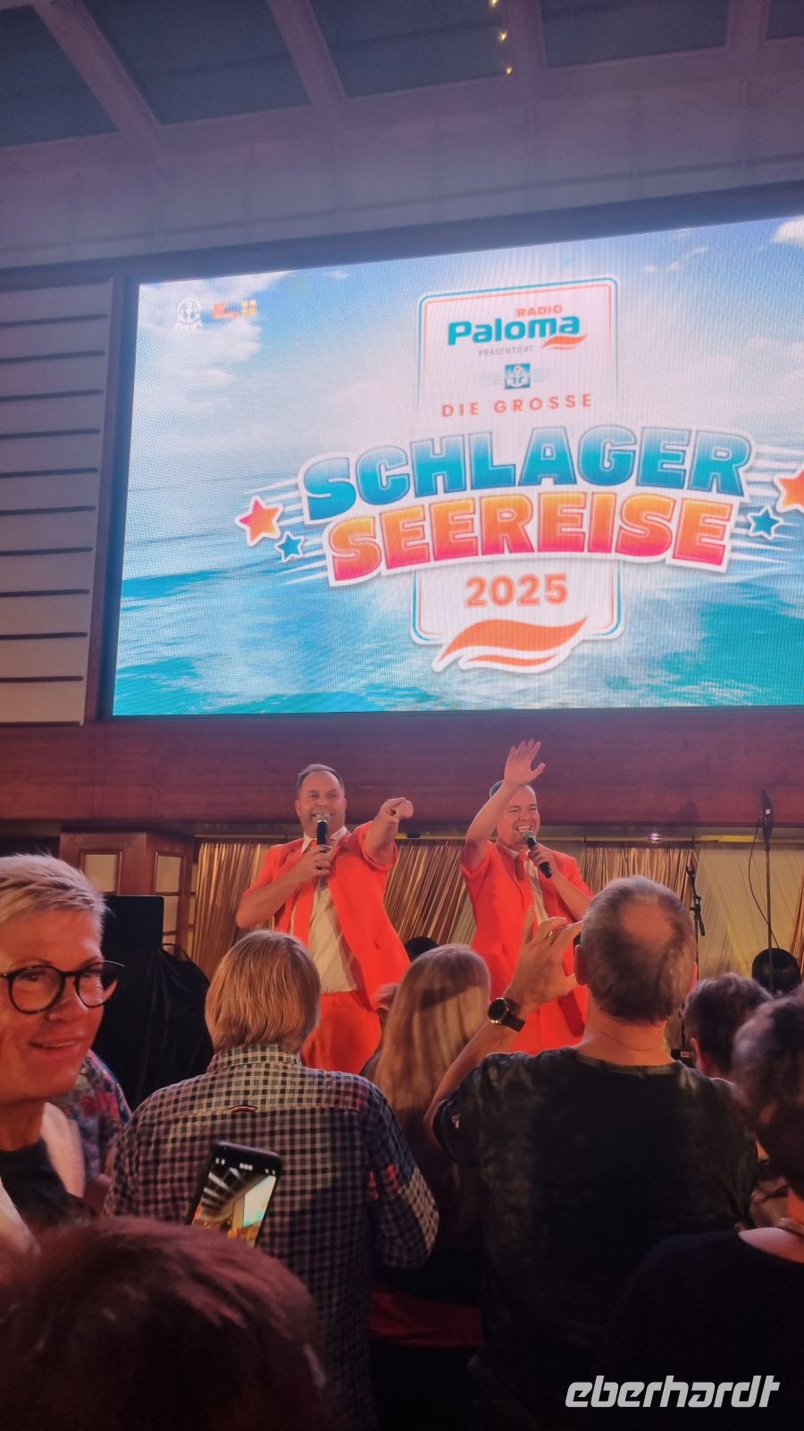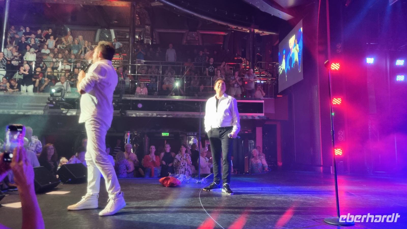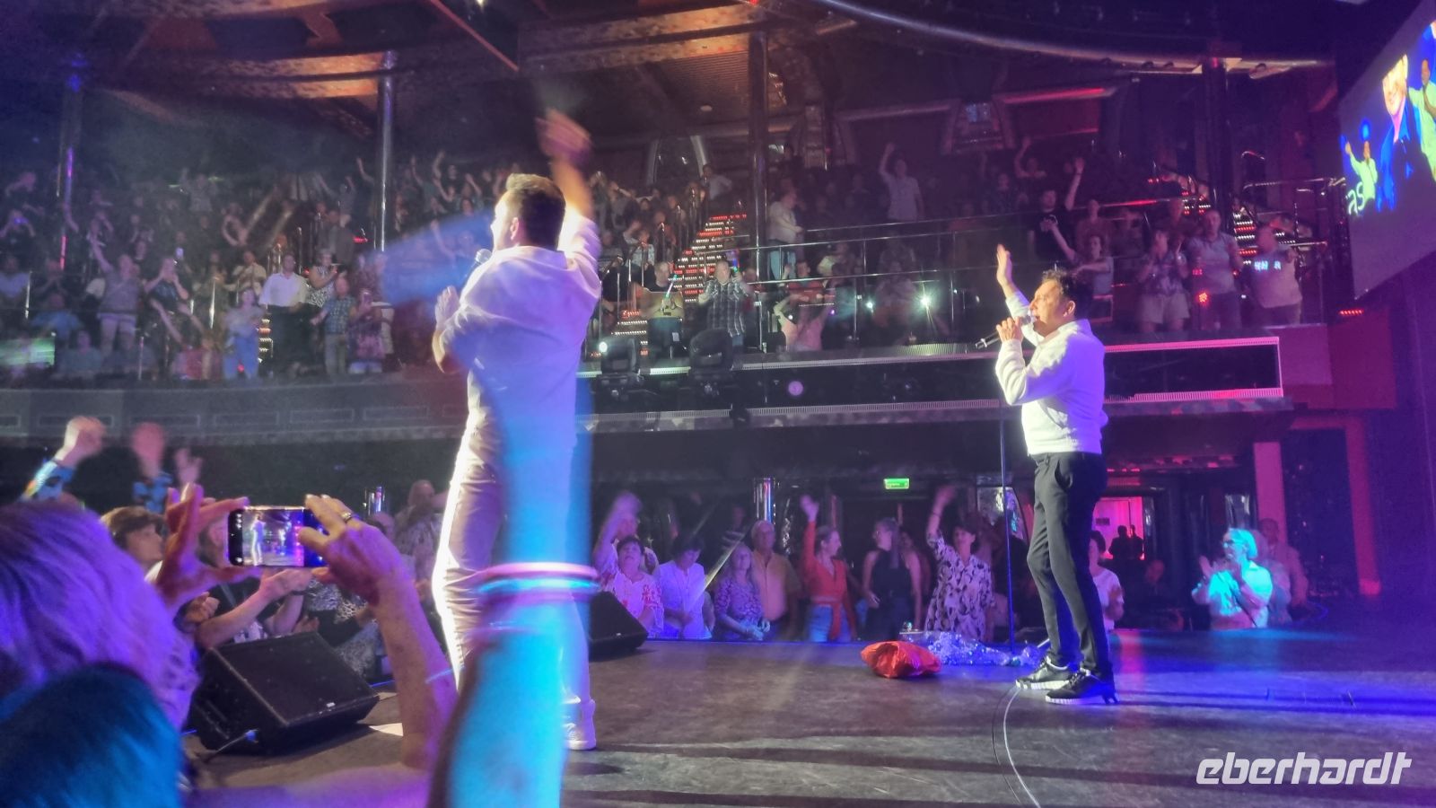 Nach dem Abendessen stand ein weiteres Highlight auf dem Programm: die große Show im Theater mit Fantasy. Das erfolgreiche Duo, bekannt durch Hits wie „Ein weißes Boot“, „Bonnie & Clyde“ und „Darling“, begeisterte mit ihrer Energie und einem mitreißenden Bühnenprogramm.