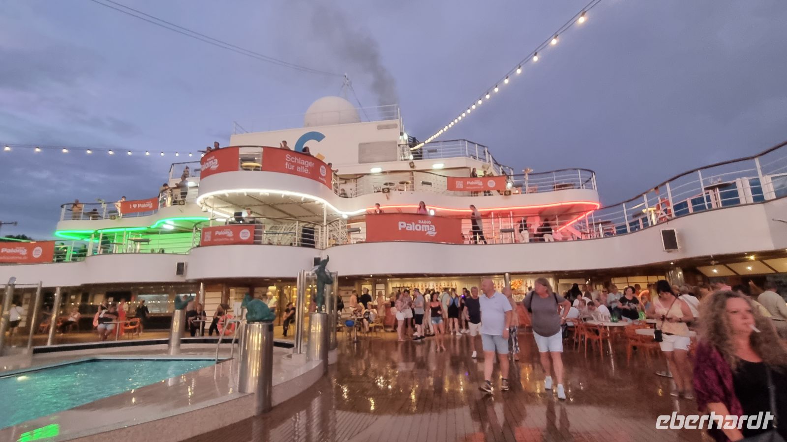 Später wurde auf Deck 9 weiter zu den auftretenden Schlagerstars getanzt: Bei der großen White Party traten Graziano und Sunrise auf. Graziano, der charmante Südtiroler mit seiner warmen Stimme, begeisterte mit romantischen Liedern wie „Ti amo per sempre“, während das Duo Sunrise mit modernen, tanzbaren Schlagern und viel Energie das Publikum zum Feiern brachte. Es war ein stimmungsvoller Abend voller Musik, Tanz und Sommerfeeling auf hoher See.