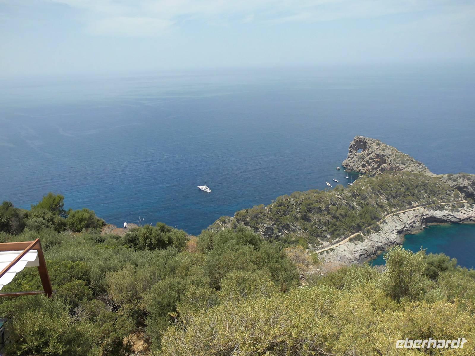 Das Frühstück nahmen wir wieder auf der Außenterrasse, mit dem fantastischen Blick auf das Meer ein. Nach diesem entspannten Start in den Tag, checkten wir aus dem Hotel aus und trafen uns mit dem örtlichen Stadtführer Antonio, kurz Toni und dem Busfahrer David, zu einer Erkundungstour durch den Westen der Insel Mallorca. Entlang von Palmen umsäumten Straßen fuhren wir am Hafen von Palma, der Hauptstadt der Insel entlang. Hier entdeckten wir auch schon unser Kreuzfahrtschiff, die Mein Schiff 2. Vorfreude machte in uns breit, doch wir wollten ja zunächst noch ein wenig den Westen der Insel erkunden. Unser erster Halt war in Santa Eugenia in einer kleinen Weinkellerei. Der Winzer zeigte uns seine „Schätze", die gut gefüllten Eichenfässer im Weinkeller. Bei einer kleinen Verkostung wurden uns landestypische Spezialitäten gereicht, so ließen wir uns Schinken aus Mallorca oder den Käse aus Menorca schmecken. In guter Stimmung fuhren wir weiter. Immer weiter näherten wir uns dem imposanten Tramuntana Gebirge mit beeindruckenden Gipfeln. Rechts und links an den Straßen wuchsen Orangen- und Zitronenbäume, Mandel- und Olivenbäume, Affenbrotbäume und üppig blühende Oleanderbüsche. Wir durchfuhren den Ort Bunyola mit dessen engen Gassen und den typischen mallorquinischen Häusern. Durch einen 3023 Meter langen Tunnel erreichten wir die Ortsgrenze von Sòller. Ein kurzer Spaziergang brachte uns ins Zentrum. Eine Attraktion des Ortes ist die alte Straßenbahn. Diese brachte uns in einer 20 minütiger Fahrt, in den knarrenden Waggons bis zum Port de Sòller. Der herrliche Hafenbereich lud uns während der Freizeit, zum Verweilen ein. Weiter führte uns unser Ausflug über Serpentinenstraßen mit wunderschönen Aussichten auf das Meer und auf das Gebirge. Im Ort Valldemossa legten wir wieder einen Stopp ein. Durch kleine Gassen und Märkte erkundete jeder für sich das Bergdorf.