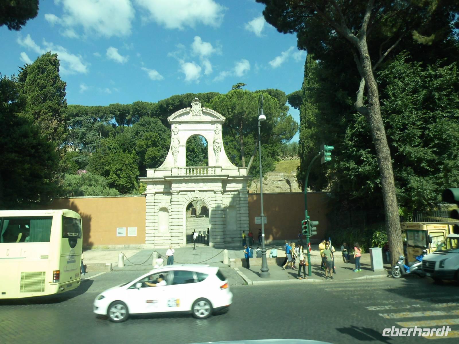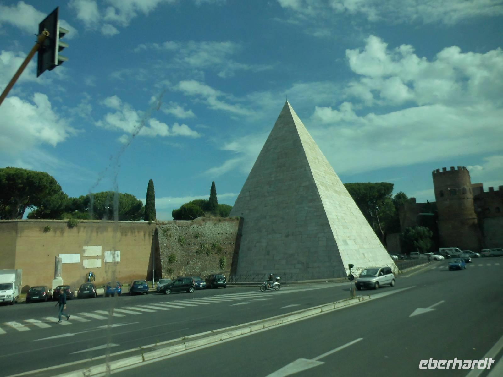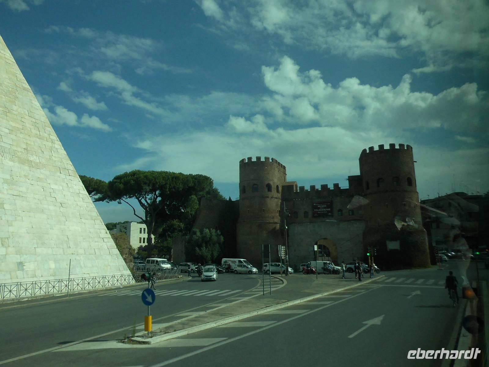 Bei einem bewölkten Himmel erreichte unser „schwimmendes Hotel" die Hafenstadt Civitavecchia. Von hier aus starteten viele Ausflüge nach Rom und deren Umgebung. Von unserer Gruppe verteilten diese sich von der Panoramafahrt durch Rom, die Fahrt mit dem Roma-Express oder Rom mit Kolosseum sowie Schloss Odescalchi und Trevignano. Der Ausflug Panoramafahrt durch Rom begann schon sehr früh. Auf der Autobahn A12 kamen wir recht schnell voran und erreichten das 80 km entfernte Rom nach 90 minütiger Fahrt. Christina, die örtliche Stadtführerin brachte uns die Hauptstadt Italiens näher. So erfuhren wir, das Rom eine sehr grüne Stadt mit 16 öffentlichen Gärten ist. Der Fluss Tiber fließt durch die Stadt und über 30 Brücken führen von einer Fluss-Seite zur Andern, zum Teil sind Brücken bemerkenswerte 2000 Jahre alt. Auf unserer Rundfahrt sahen wir eine Reihe von beeindruckenden Bauwerken, wie die Pauluskirche mit den wunderschönen Mosaiken, die über 2000 Jahre alte Cestius-Pyramide mit dem angrenzenden Stadttor Porta San Paolo. Weiter fuhren wir zum Aventin Hügel mit den Überresten von Thermen bzw. Badekomplexen in welchen früher bis zu 1600 Personen Platz hatten.