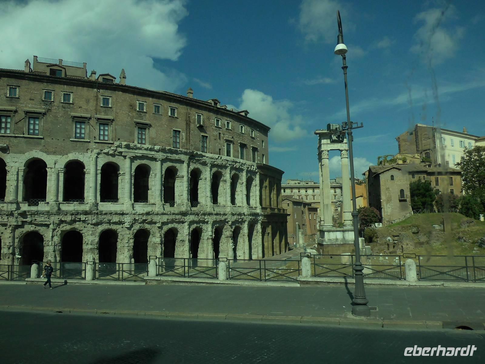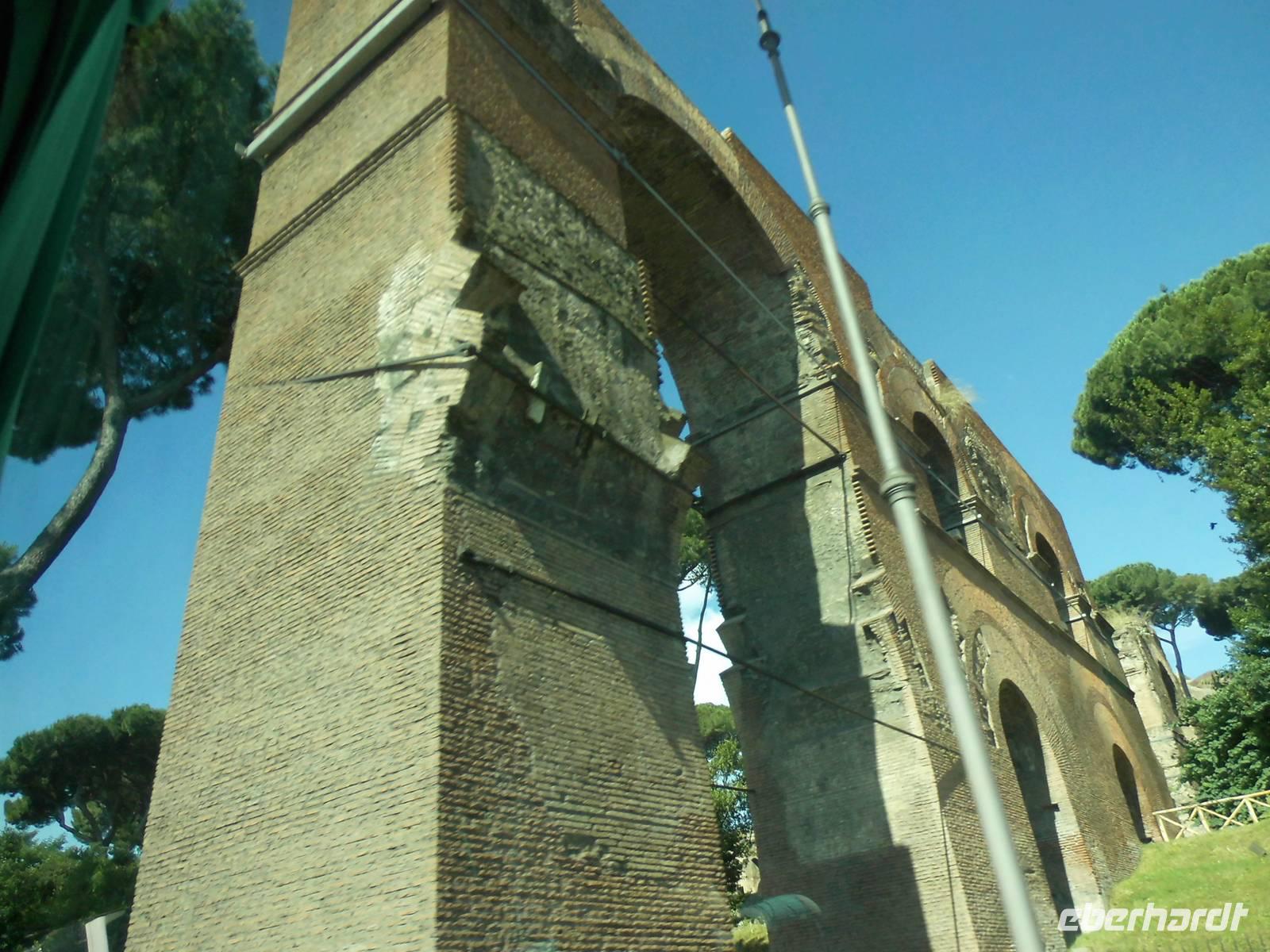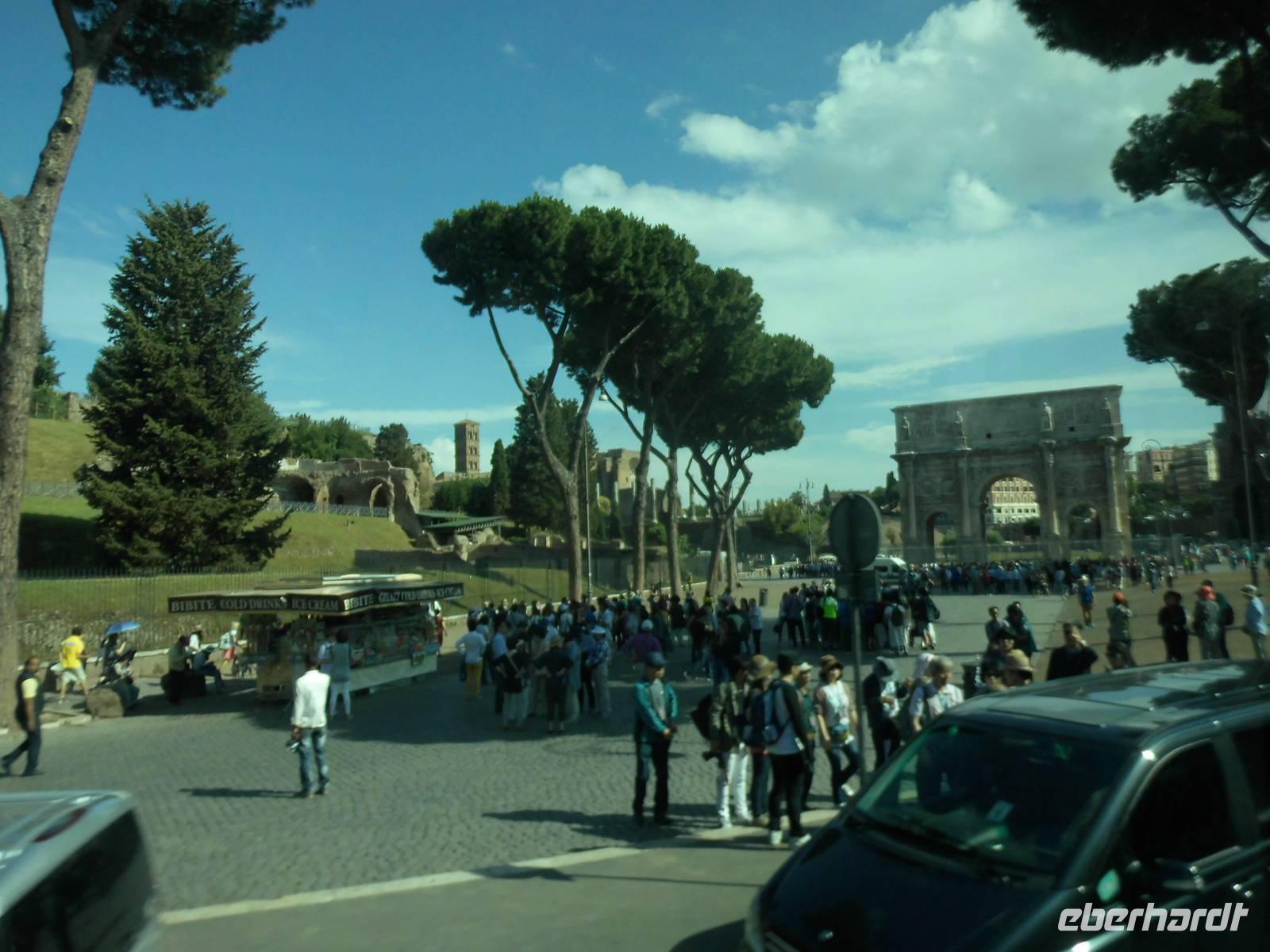 Bei einem bewölkten Himmel erreichte unser „schwimmendes Hotel" die Hafenstadt Civitavecchia. Von hier aus starteten viele Ausflüge nach Rom und deren Umgebung. Von unserer Gruppe verteilten diese sich von der Panoramafahrt durch Rom, die Fahrt mit dem Roma-Express oder Rom mit Kolosseum sowie Schloss Odescalchi und Trevignano. Der Ausflug Panoramafahrt durch Rom begann schon sehr früh. Auf der Autobahn A12 kamen wir recht schnell voran und erreichten das 80 km entfernte Rom nach 90 minütiger Fahrt. Christina, die örtliche Stadtführerin brachte uns die Hauptstadt Italiens näher. So erfuhren wir, das Rom eine sehr grüne Stadt mit 16 öffentlichen Gärten ist. Der Fluss Tiber fließt durch die Stadt und über 30 Brücken führen von einer Fluss-Seite zur Andern, zum Teil sind Brücken bemerkenswerte 2000 Jahre alt. Auf unserer Rundfahrt sahen wir eine Reihe von beeindruckenden Bauwerken, wie die Pauluskirche mit den wunderschönen Mosaiken, die über 2000 Jahre alte Cestius-Pyramide mit dem angrenzenden Stadttor Porta San Paolo. Weiter fuhren wir zum Aventin Hügel mit den Überresten von Thermen bzw. Badekomplexen in welchen früher bis zu 1600 Personen Platz hatten.