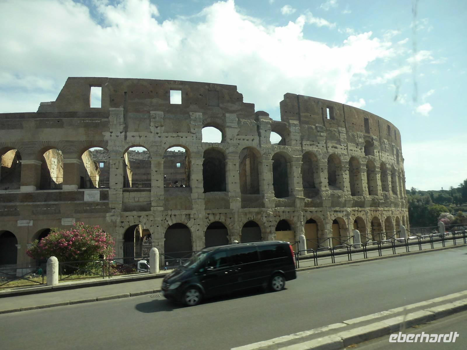 Ein besonderer Höhepunkt auf unserer Panoramarundreise durch Rom war das Kolosseum. Hier fuhr der Bus ganz langsam vorbei und Christina erklärte uns dieses imposante Amphitheater, in welches bis zu 50.000 Personen Platz fanden. Beeindruckt fuhren wir weiter zum Palatin-Hügel, mit seinen Spuren der Vergangenheit. Die Ruinen der Vestalinnen und der Circus Maximus mit einer unglaublichen Länge von 600 m sind nur ein Teil der zu bestaunenden Überreste. Rom ist einfach sehenswert. Wir bestaunten das Nationaldenkmal für Emanuel II. und die Engelsburg mit der Engelsbrücke. In Vatikanstadt hatten wir Zeit für einen Besuch des berühmten Petersplatz mit dessen Petersdom. Und wir hatten Glück, denn gerade sprach Papst Franziskus. Nach einer kurzen Sicherheitskontrolle betraten wir den Petersplatz, welcher mit unglaublich vielen Menschen gefüllt war. Zunächst verfolgten wir die Ansprache auf Leinwänden, doch natürlich versuchten wir auch unser Glück dem Papst ein wenig näher zu kommen. Dieses Erlebnis war sehr ergreifend. Nun hieß es jedoch Abschied nehmen von der „ewigen Stadt". Wir waren uns sicher, Rom ist eine weitere Reise wert.