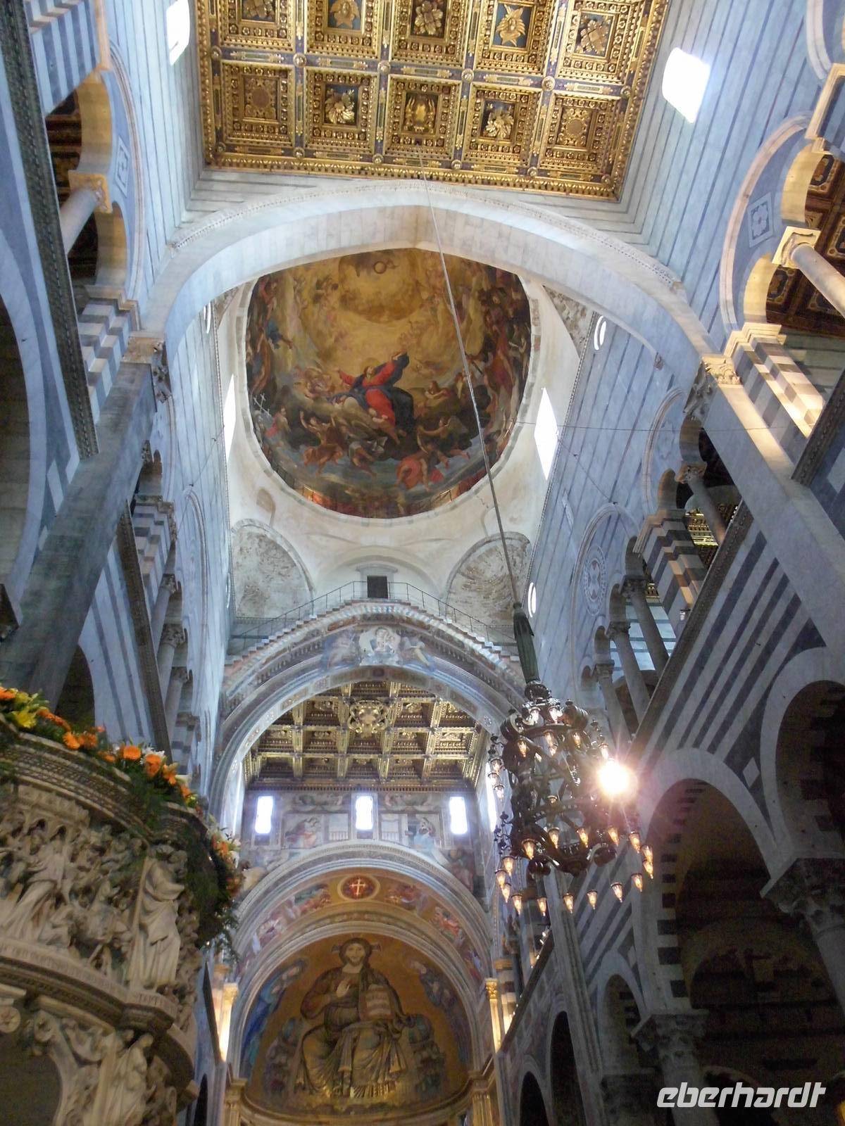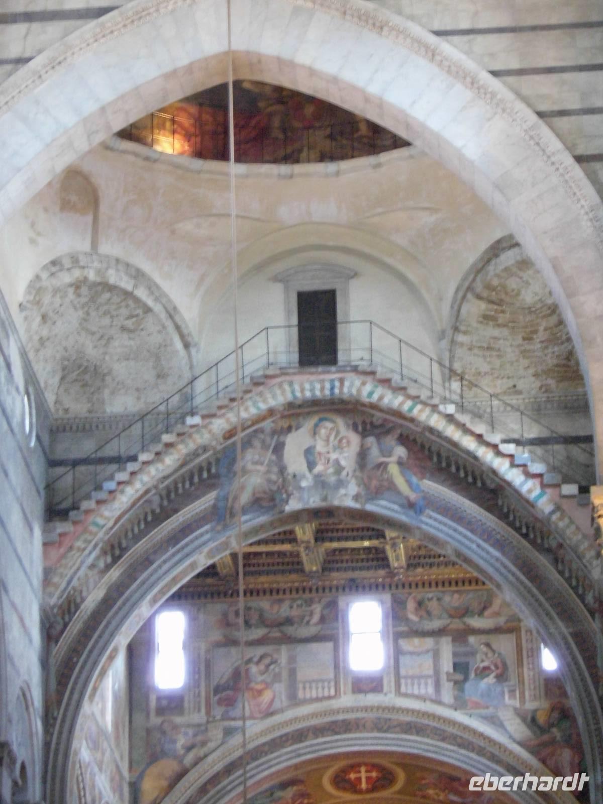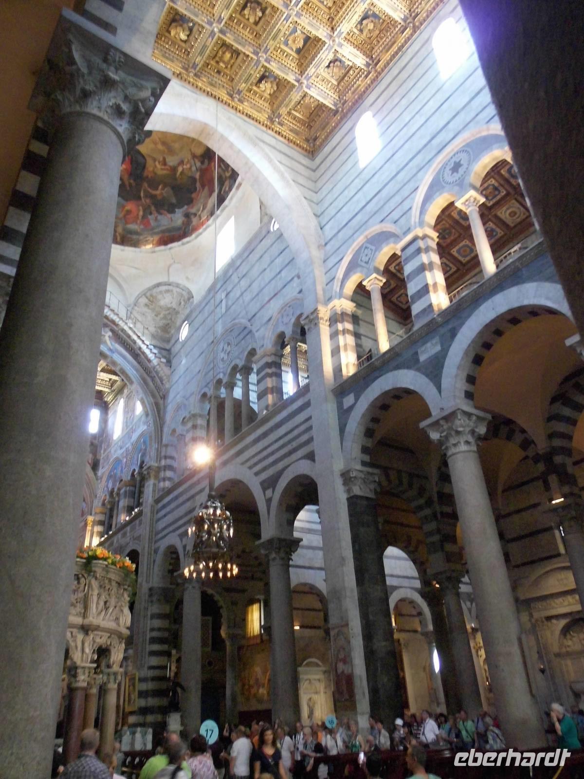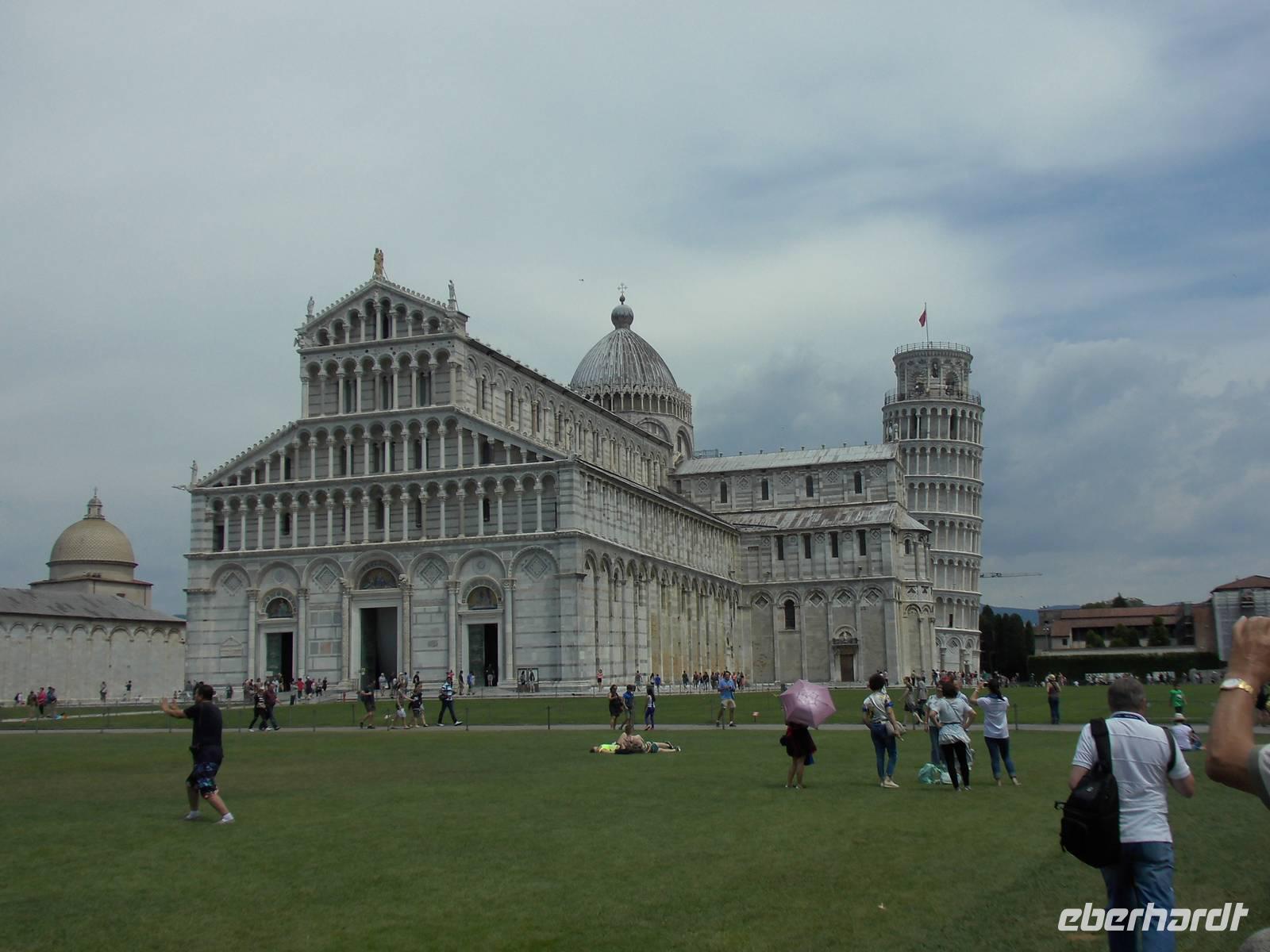 Der Bus parkte außerhalb der Stadt und so spazierten wir vorbei an Märkten und Geschäften bis zum Treffpunkt unserer örtlichen Stadtführerin, welche uns den Platz der Wunder näher brachte. Schon beim Betreten des Platzes hört man immer wieder ein „Ahh", der Anblick ist unbeschreiblich. Herausragendste Gebäude sind das Baptisterium, eine Taufkirche mit einer beeindruckender Akustik, die Kathedrale und natürlich der Schiefe Turm. Dieser war als Glockenturm für die Kathedrale geplant und neigte sich schon während der Bauzeit im 12. Jh. Der Untergrund, einer Mischung aus Morast und Sand trugen dazu bei, dass der Turm sich neigte. Unzählige Fotos wurden gemacht. Kein Wunder also, dass der gesamte Platz zum UNESCO-Welterbe gehört.