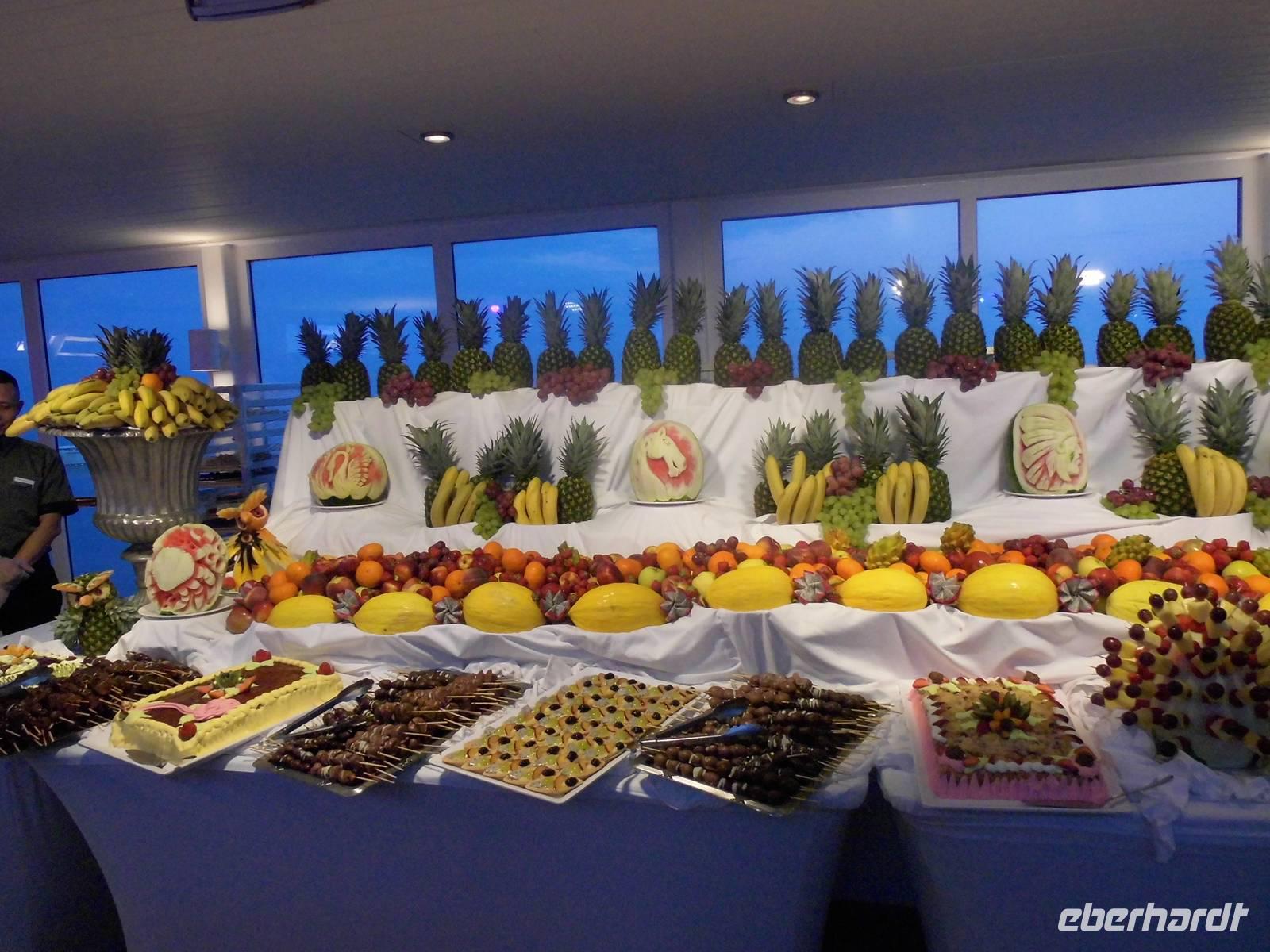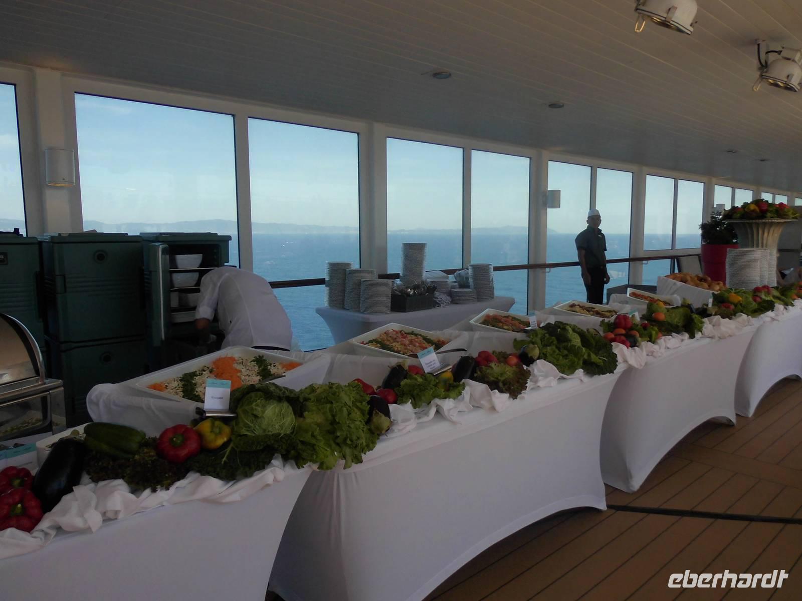 Zum Mittagessen wurde auf dem Pooldeck ein leckeres Barbecue aufgebaut, mit Würstchen, Fleisch und Salaten. So ein entspannter Tag verging sehr schnell.