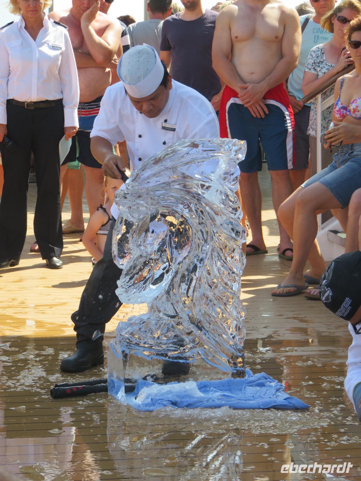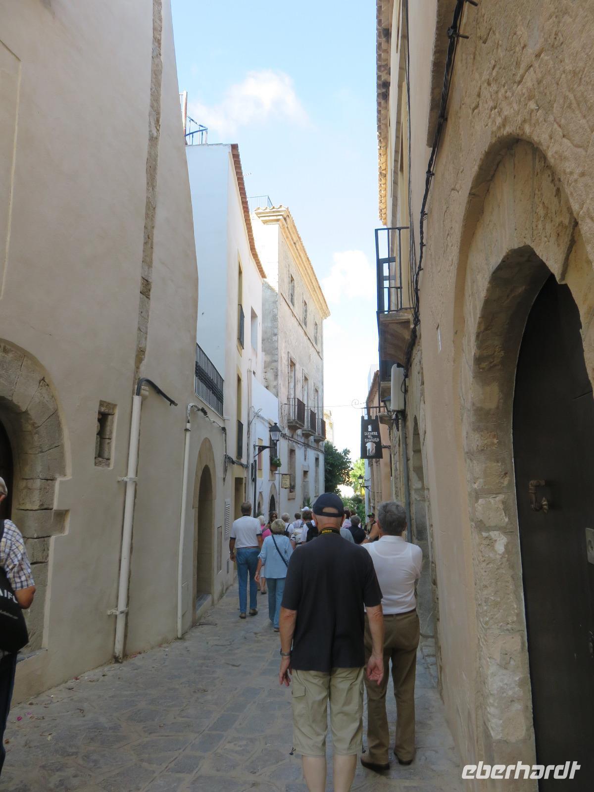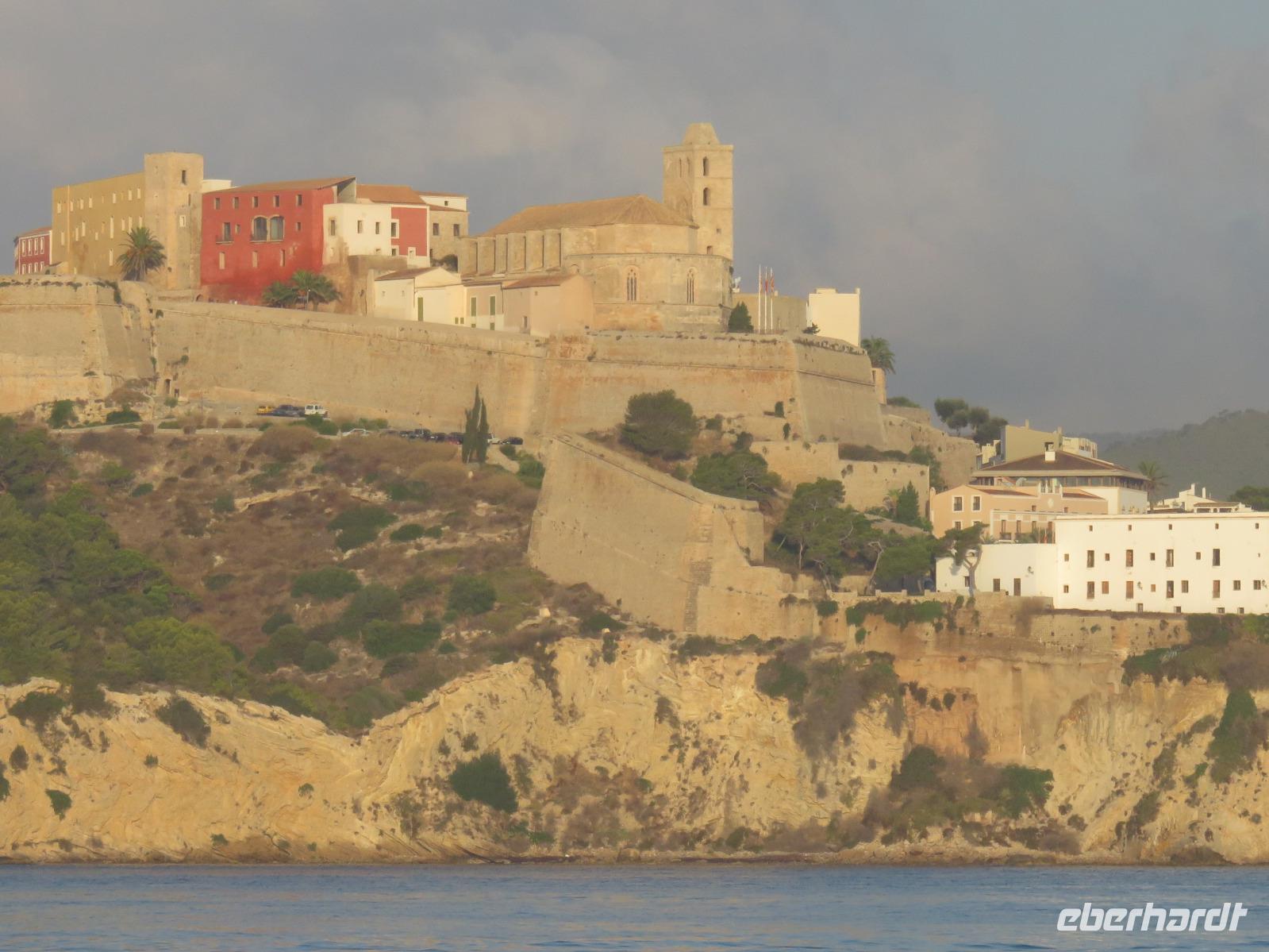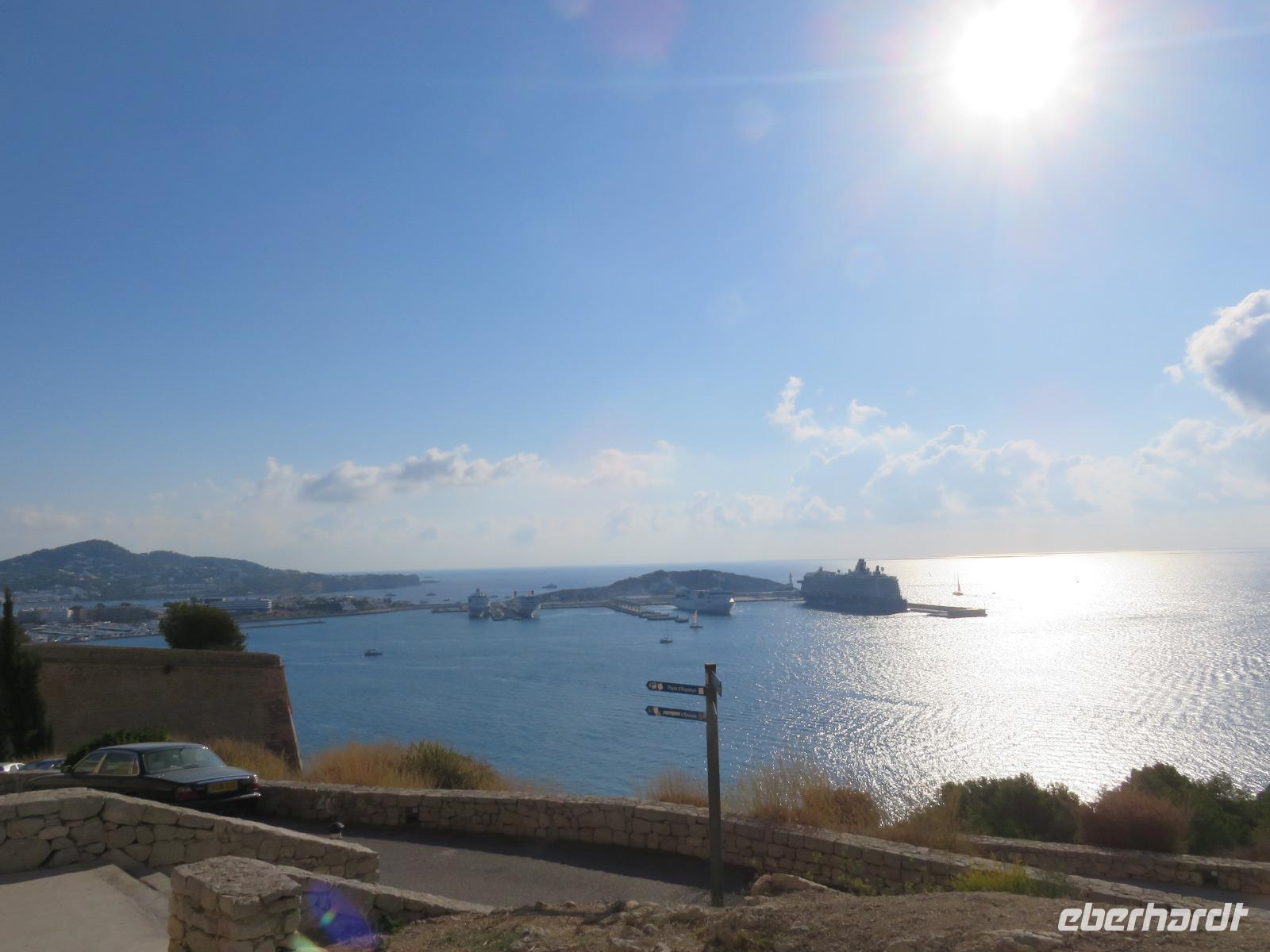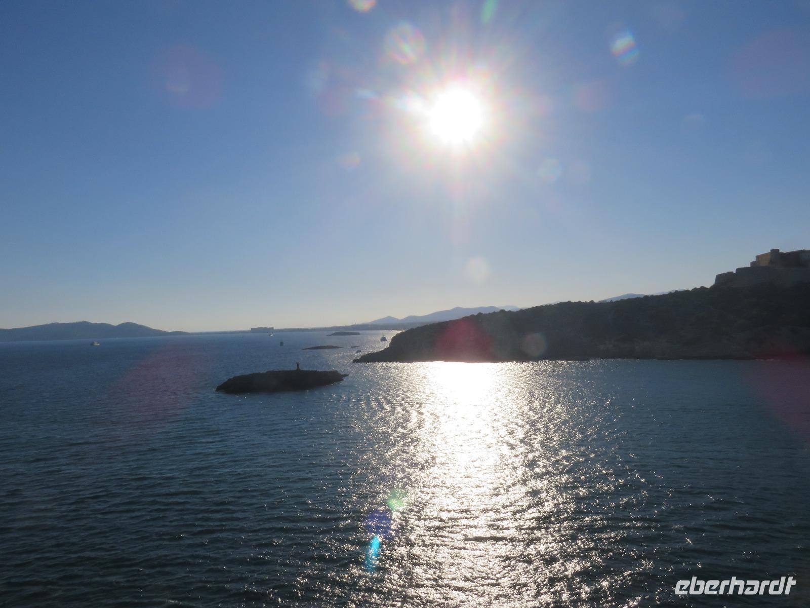 Am Vormittag erreichten wir Ibiza. Unseren letzten Ausflug verbrachten wir als Eberhardt Gruppe wieder gemeinsam. Die örtliche Reiseleiterin Vicky erwartete uns bereits am Morgen an Land. Wir fuhren zunächst entlang des Naturschutzgebietes in der Nähe von Ibiza Stadt, welches als Feuchtgebiet für viele Zugvögel im Frühjahr und Herbst auf ihrer langen Reise ein Rastplatz ist. Wir besuchten eine kleine Töpferei. In dieser werden noch heute in alter Tradition mit der Technik, die bereits vor 2.000 Jahren genutzt wurde, wunderschöne Töpferwaren in Handarbeit hergestellt. In einer kleinen Vorführung konnten wir dem Töpfer zuschauen und waren erstaunt, wie in kürzester Zeit Vasen, Schalen und andere Dinge entstanden. Anschließend fuhren wir in das Gebiet der Salinen. Jedes Jahr werden von August bis November bis zu 60.000 Tonnen Salz geerntet. Dies ist eine wichtige Einnahmequelle für die Insel. Nun ging es hinauf zum höchsten Punkt der Altstadt. Uns eröffnete sich ein einmaliger Blick über Ibiza-Stadt, die Buchten und zur Insel Formentera. Durch die wunderschöne Altstadt spazierten wir zu Fuß. Die Stadtmauer aus dem 16. Jahrhundert ist 21 Meter hoch und bis zu 4 Meter dick und umgibt die Altstadt komplett. Sie ist eine der wenigen noch vorhandenen kompletten Stadtmauern in Europa. Unser Weg führte uns zur Kathedrale der Stadt. Nachdem wir die Kathedrale von innen besichtigt hatten, genossen wir von der Terrasse aus den Blick über die Altstadt und den Hafen. Wir gingen weiter durch romantische Gasse bergab. Vicky zeigte uns so manch interessante Ecke in der Altstadt. Wir sahen die Reste einer Straße aus dem 10.Jahrhundert, die bei Bauarbeiten entdeckt wurde. Am Rathaus erzählte sie uns die wechselvolle Geschichte des Hauses vom Gefängnis bis zum heutigen Sitz der Verwaltung der Insel. Auch die wunderschönen Pflanzen wie Kapernsträucher, wilder Pfeffer oder andere bunt blühende Gewächse begeisterten uns. Durch das untere Stadttor mit dem Wappen des spanischen Königs erreichten wir den Markt und den Hafen von Ibiza-Stadt. Nun blieb Zeit für eine Pause in einem der gemütliche Cafés oder zum Stöbern in den vielen Geschäften, die allerlei bunte Waren anboten. Ibiza ist die Hippi-Insel und dies spiegelte sich teilweise in den Angeboten wieder. Die Aussteiger der Flower-Power-Bewegung hatten Ibiza in den 60er Jahren in Besitz genommen. Noch heute ist die Insel davon geprägt. Unser Bus holte uns am Hafen wieder ab und brachte uns zurück zur Mein Schiff 3. Den letzten Abend auf unserem „schwimmenden Hotel" genossen wir noch einmal bei einem gemeinsamen Abendessen im Atlantik-Restaurant. Bei der Abschieds-Show im Theater zeigte sich ein Großteil der Crew und wir erfuhren, das diese aus rund 1018 Personen und vielen Nationen besteht.