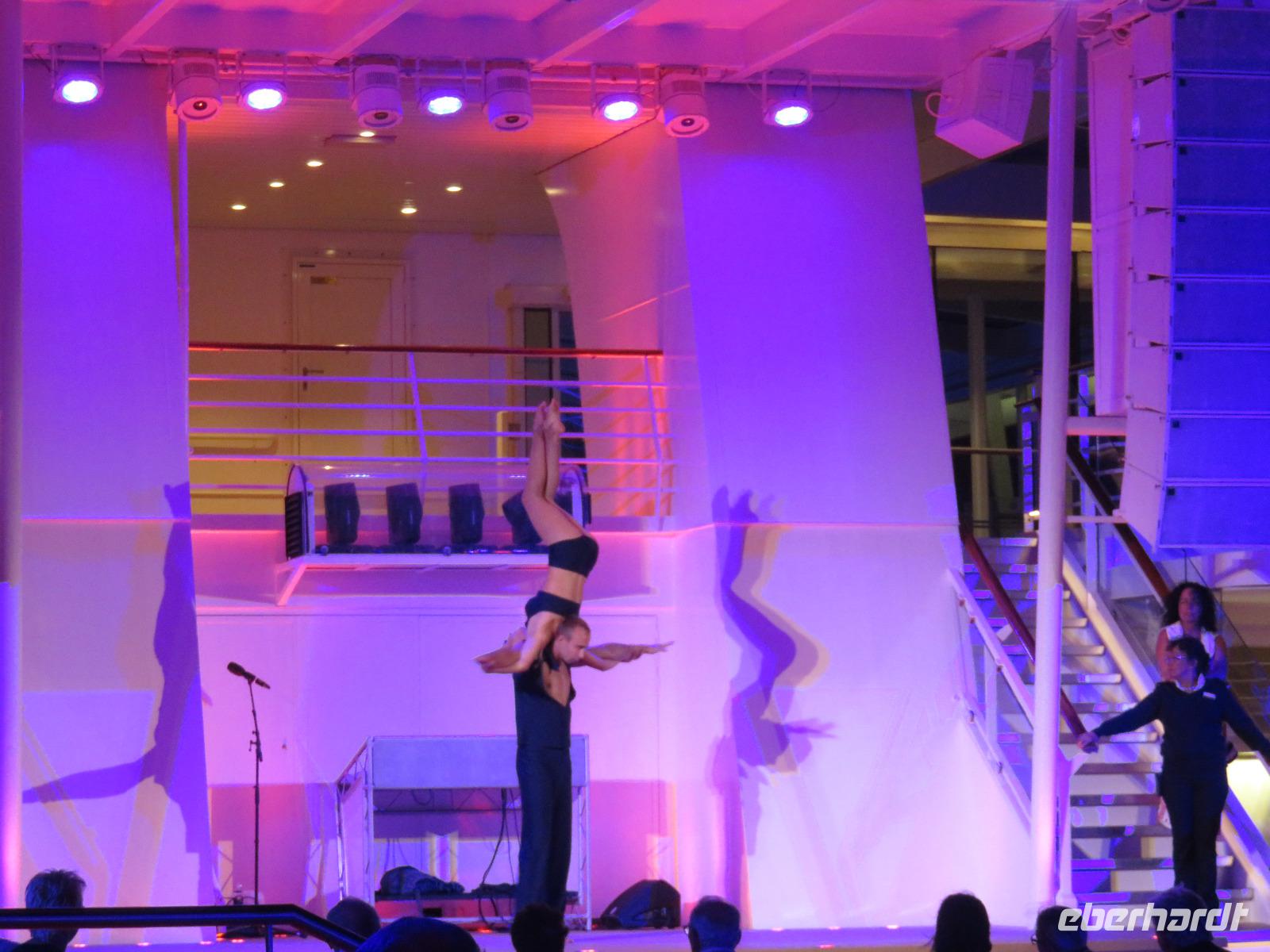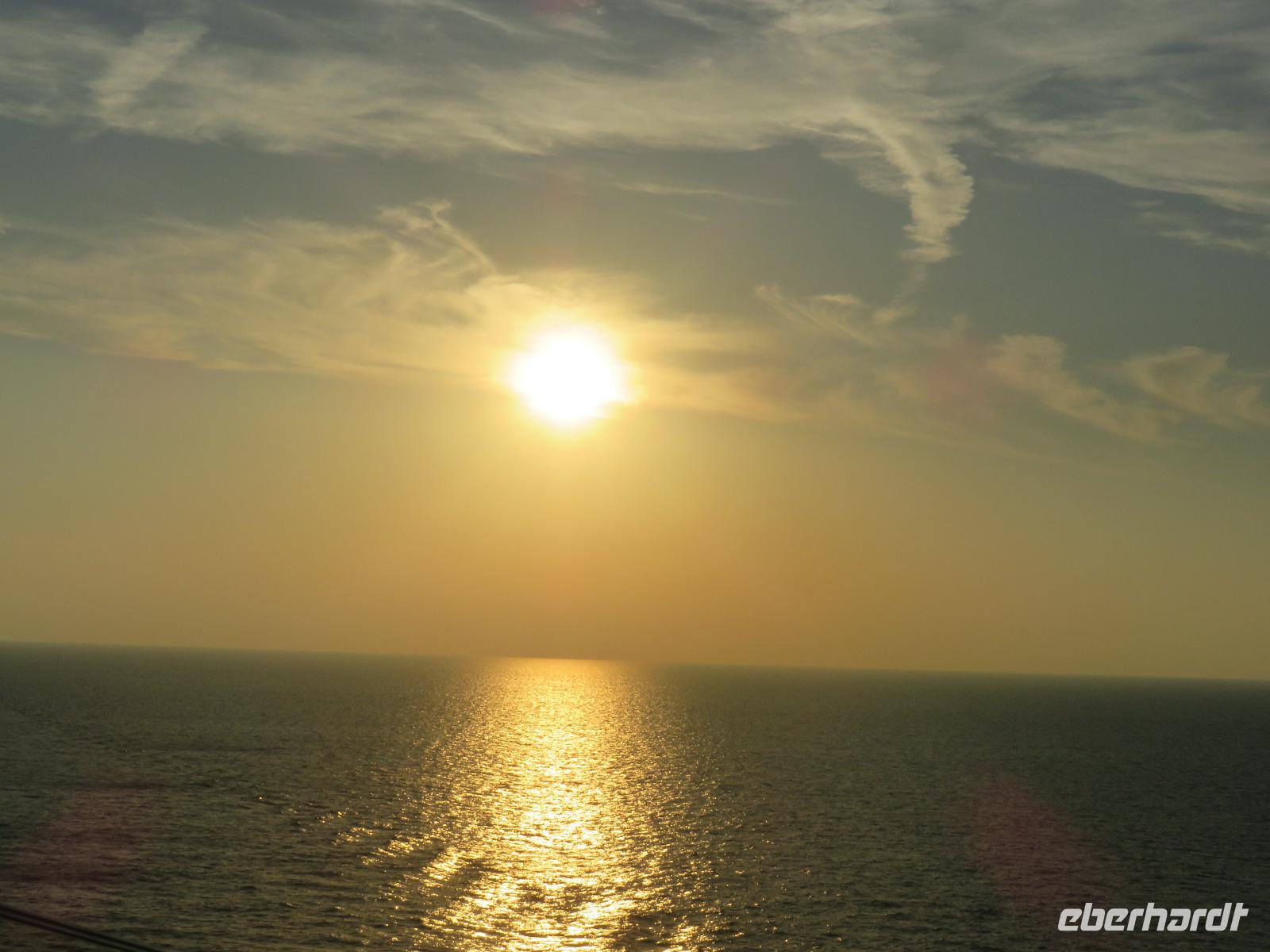 Nach einem ausgiebigen Frühstück hatten wir an diesem Tag Zeit, die Mein Schiff 3 zu erkunden. Am Vormittag trafen wir uns zu einem Schiffsrundgang mit der Gastgeberin Cama. Sie zeigte uns das Schiff. Wir sahen die verschiedenen Bars, die Restaurants und den Sport & Spa Bereich. Beeindruckend ist der 25 Meter lange Außenpool auf Deck 12, der mit Meerwasser gefüllt ist. Außerdem gibt es noch einen Innenpool mit Seewasser. Wir schauten ins Klanghaus, einen Konzertsaal auf See. Cama hatte so manchen Tipp für uns parat. Mit einem Glas Sekt stießen wir in der TUI Bar auf eine schöne Reise an. Anschließend verbrachte jeder den Tag nach seinen Wünschen. Manchmal hatte man schon die Qual der Wahl zwischen Faulenzen, interessanten Vorträgen und kulinarischen Verführungen. Während des Abendessens konnten wir einen fantastischen Sonnenuntergang auf dem Meer erleben. Anschließend stellten sich im Theater der Kapitän auf sehr lustige Weise und die Offiziere vor. Die Hits der anschließenden Musical-Show versetzte uns in vergangene Zeiten.