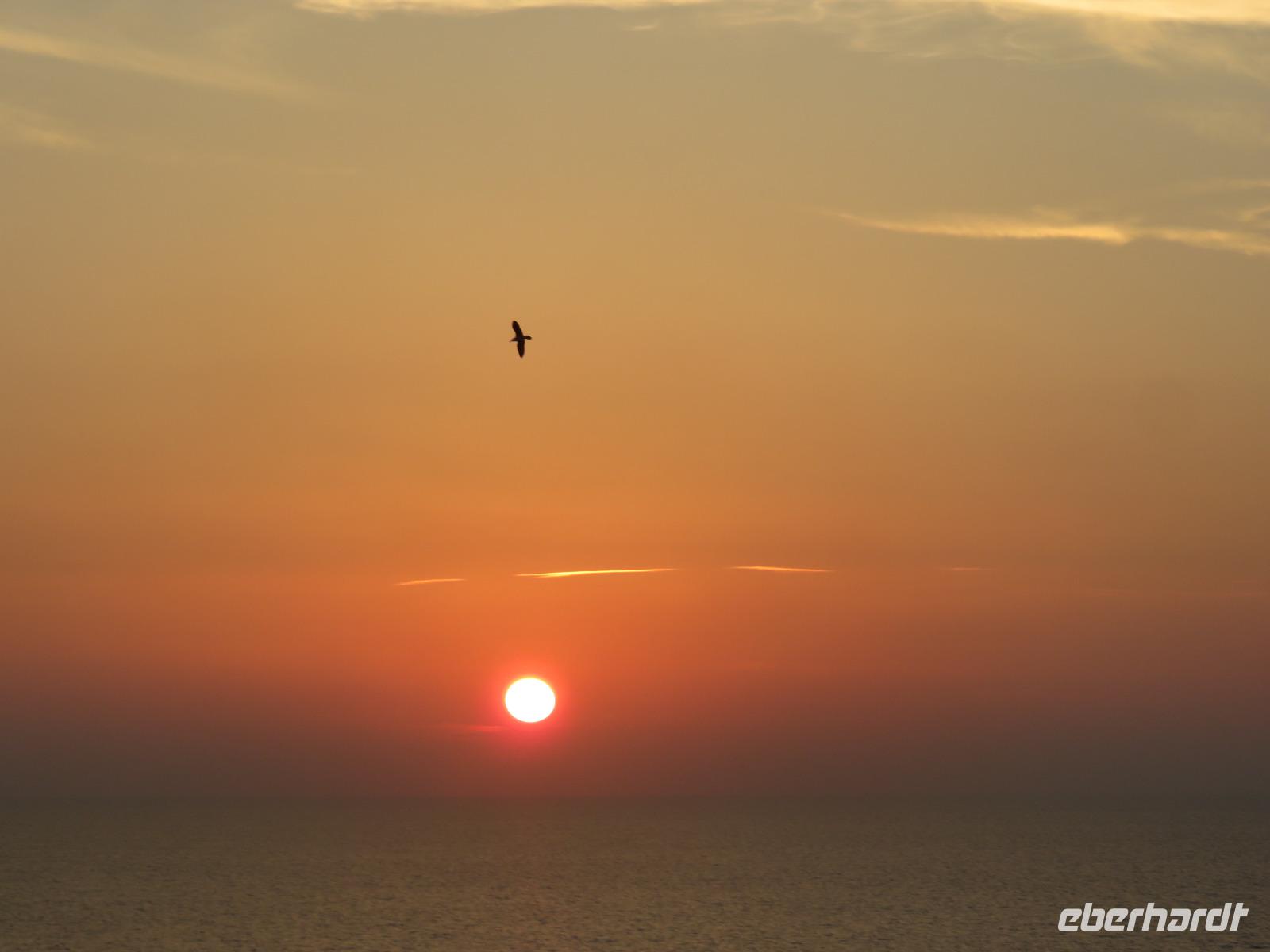 Zum Abendessen verließen wir die französische Küste. In der Nacht frischte der Wind etwas auf und so merkten wir einige Schiffsbewegungen. Aber alle haben die Nacht gut überstanden.