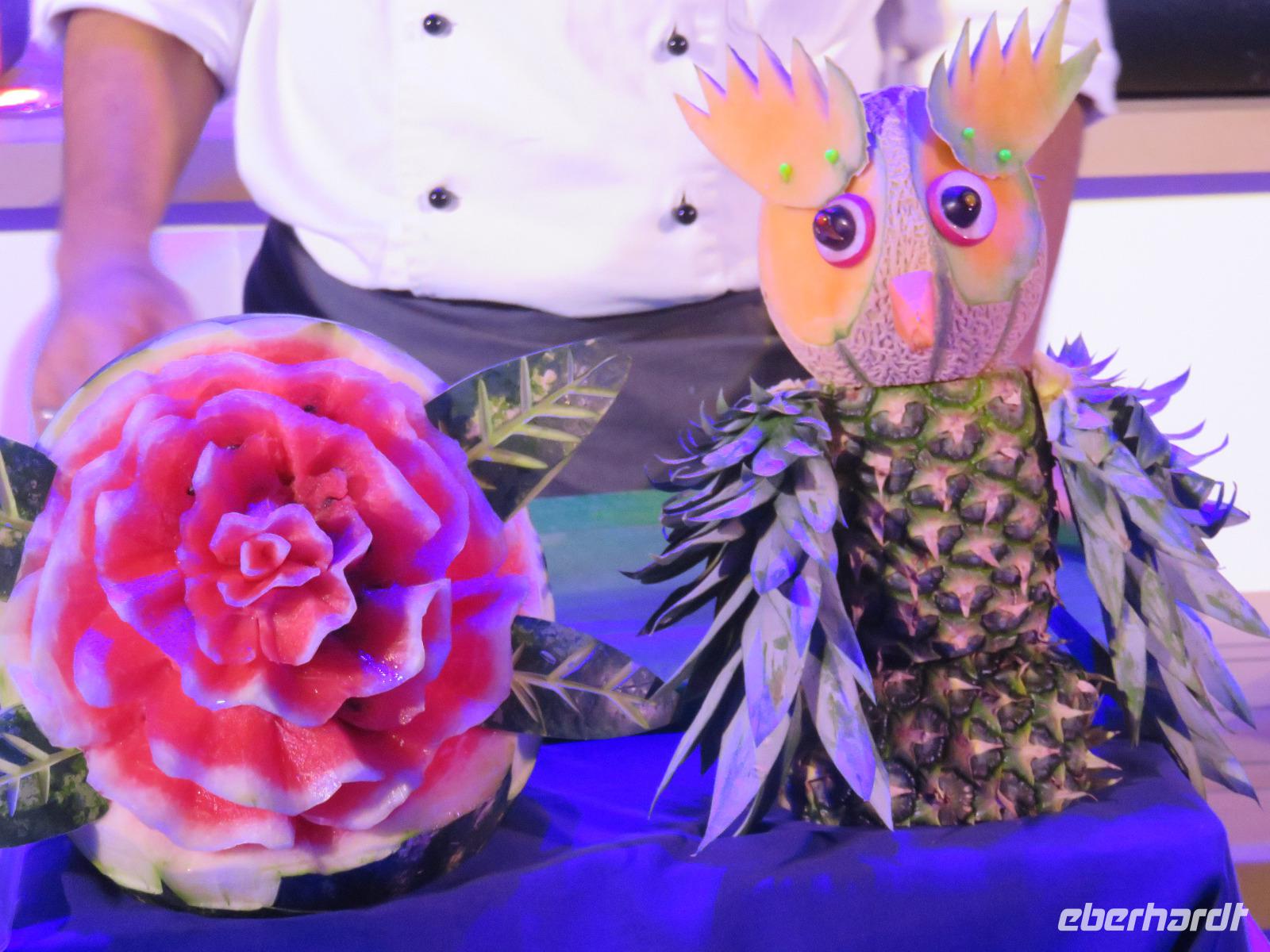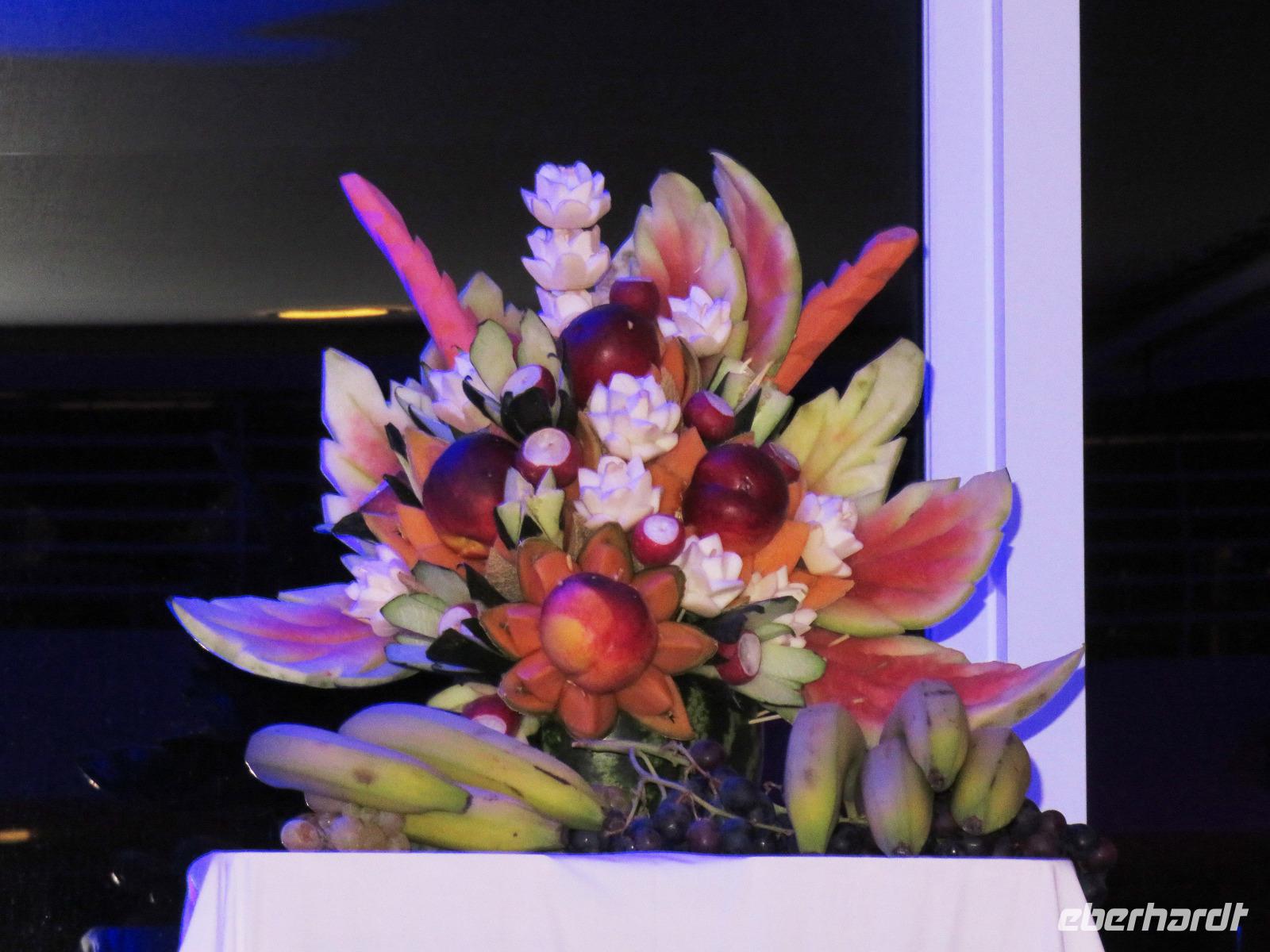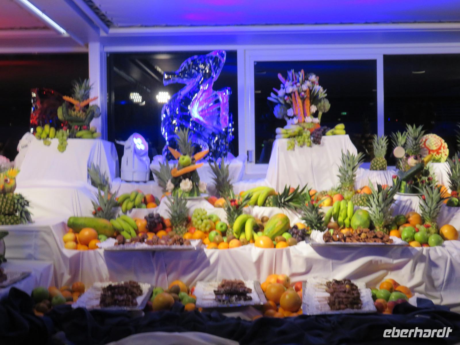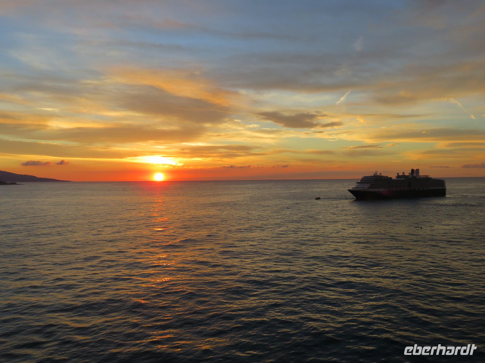 Das Auslaufen aus dem Hafen von Monaco bot uns einen wunderschönen Blick auf das kleine Fürstentum. Am Abend fand eine Party auf dem Pooldeck statt. Bei starkem Wind gab es stimmungsvolle Musik, leckere Cocktails und ein tolles Früchtebuffet und in Schokolade getauchte Früchte.