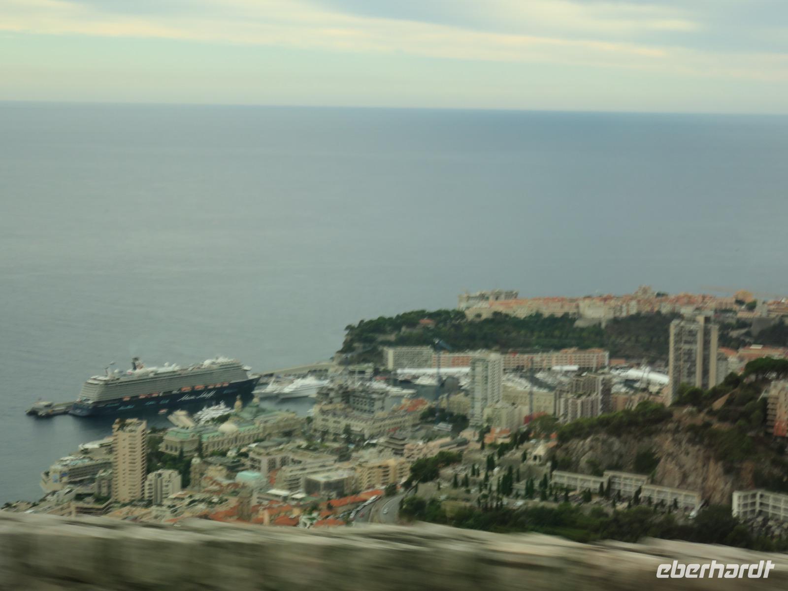 Heute stand unser eigener Eberhardt-Ausflug entlang der Côte d'Azur auf unserem Programm und das Wetter spielte auch wieder mit. Bereits am zeitigen Morgen lief die Mein Schiff 3 in den Hafen von Monaco ein und durfte als einziges Kreuzfahrtschiff direkt an der Pier festmachen. Es bot sich uns ein einmaliger Blick auf wunderschöne Yachten und die gigantischen Bauten von Monaco im Morgenlicht. Unser örtlicher Stadtführer Guiseppe und der Busfahrer Walter erwarteten uns direkt am Schiff. Guiseppe war ein echter Italiener, mit dem bekannten italienischen Temperament! Zunächst führte uns der Ausflug aus Monaco heraus. Auf der oberen Panoramastraße fuhren wir in Richtung Nizza. Die Fahrt entlang der Côte d'Azur begeisterte uns. Guiseppe erzählte uns, das die Côte d'Azur an der italienischen Grenze in Menton beginnt und in Cassis, in der Nähe von Marseille endet. Bekannteste Städte sind Cannes, Nizza und das Fürstentum Monaco. Viele Dörfer stammen noch aus dem Mittelalter. Unser italienischer Reiseleiter erklärte mit Stolz, dass dieses Gebiet bis 1860 zu Italien gehörte. Auf der Fahrt von Monaco über die Gemeinde Èze bis nach Nizza eröffneten sich uns immer wieder atemberaubende Ausblicke auf die Küste und das Meer. Kurz vor Nizza verließen wir die Panoramastraße und wir erreichten einen Aussichtpunkt mit einem fantastischen Blick auf die größte Stadt der Côte d'Azur. Bei einer anschließenden Stadtrundfahrt durch Nizza sahen wir die Bauten um den Geribaldi Platz, das Museum der modernen Art und die imposanten Hotels, wie das berühmte Hotel Negressco. Nun spazierten wir in die Geschäftsstraßen von Nizza mit dem berühmten Blumenmarkt. Durch kleine Gassen erreichten wir die Kathedrale. Nachdem wir einen kurzen Blick in die Kirche geworfen hatten, konnten wir individuell die Stadt erkunden. Zunächst war der herrlichen Blumenmarkt und Obst- und Gemüsemarkt unser Ziel. Wir bummelten entlang der Promenade und genossen den Blick auf die Strände und das Meer. Schnell verging die Zeit und wir trafen uns wieder am Bus. Die Fahrt zurück nach Monaco führte uns über die Küstenstraße. Nun bot sich uns ein schöner Blick auf die Villen der Halbinsel Cap Ferrat, einer exklusiven Wohngegend oder auf den Hafen von Villefranche. Vorbei am Cap-d'Ail kamen wir wieder in das Fürstentum Monaco. Mit Guiseppe spazierten wir durch die Stadt. Vom Ozeanischen Museum aus gingen wir vorbei am Regierungsgebäude und dem Museum de la Chapelle de la Visitation, dem Kunstmuseum von Monaco. Wir sahen die Villen von den Prinzessinnen Caroline und Stephanie. Weiter ging es zur Kathedrale. Diese konnten wir zunächst nur von außen besichtigen und nur einen kurzen Blick hinein werfen. Kurz vor unserem Besuch fand eine große Hochzeit statt und es fanden die Abbauarbeiten statt. Die Kathedrale war wunderschön mit weißen Rosen und Hortensien geschmückt. In der Kathedrale wurde Fürst Rainer III. und Gracia Patricia getraut und fanden auch ihre letzte Ruhestätte. Auf dem Rückweg zum Treffpunkt konnten wir dann die Kirche und die Grabmale der Fürstenfamilie Grimaldi noch besichtigen. Nur wenige Gehminuten von der Kathedrale entfernt befindet sich der Fürstenpalast. Hier lebt die Familie Grimaldi und natürlich fragten wir uns, ob Fürst Albert mit seiner Charlene und den Zwillingen anwesend sind? Jedoch ist die nicht mehr zu erkennen, denn im Gegensatz zur Tradition von Fürst Rainer III., der die Fahne auf dem Palast nur hissen ließ, wenn er anwesend war, hat Albert verfügt, dass die Fahne immer auf dem Palast weht. Beeindruckend sind ebenfalls die Kanonen, welche ein Geschenk von König Ludwig XIV waren und die Ehrenwache mit wunderschönen Uniformen. Von den Terrassen neben dem Platz des Palastes hatten wir atemberaubende Blicke auf das Fürstentum und unser Mein Schiff 3. Nun besuchten wir noch den Stadtteil Monte Carlo mit dem weltberühmten Casino und em Hotel de Paris und dem gleichnamigen Cafe. Wir staunten über die vielen teuren Autos, ob Maserrati, Porsche oder Ferrari - keine Edelmarke fehlte. Wir sahen die Welt der Schönen und Reichen! Zurück zum Schiff fuhren wir ein Stück auf der legendären Rennstrecke der Formel 1 von Monaco.