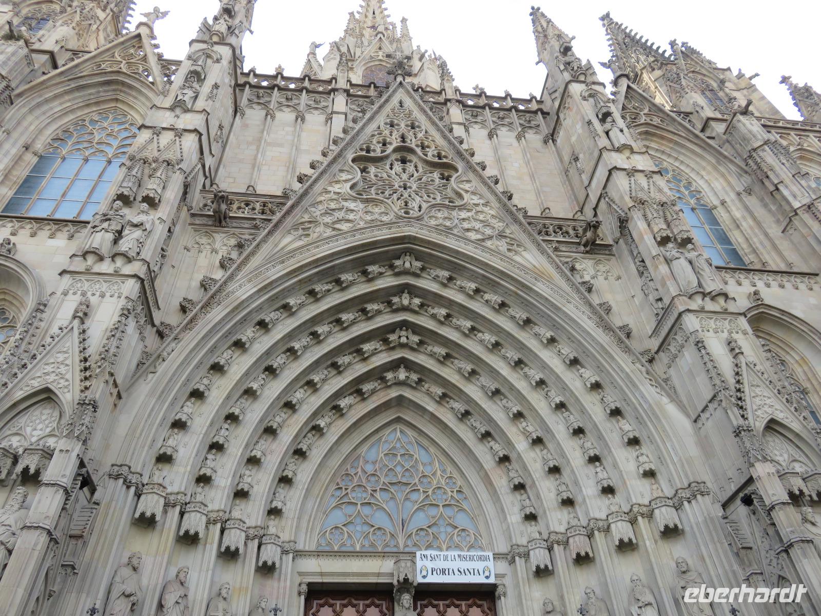 Nach dem Frühstück begannen die Ausflüge der Mein Schiff 3 in Barcelona. Der größte Teil unserer Gruppe hatte sich für die Stadtrundfahrt entschieden. Wir fuhren mit dem Bus aus dem riesigen Hafen Richtung Stadtzentrum. Vorbei am World Trade Center, an der Kolumbussäule und der Casa Batelló und Casa Milà, der von Antoni Gaudi erbauten Wohnhäuser, erreichten wir das Gotische Viertel. Wir spazierten zu Fuß bis zur Kathedrale. Es war noch recht zeitig am Vormittag und so konnten wir die Kathedrale ganz in Ruhe besichtigen. Wir sahen den Chorgestühl und den Hauptaltar. An den Seiten der Kirche bafanden sich viele kleine Kapellen. Die Kathedrale ist dem heiligen Georg und der heiligen die heilige Eulàlia gewidmet. Die heilige die heilige Eulàlia, war ein Mädchen, welches im Alter von 13 Jahren sterben musste, weil es seinem Glauben nicht ab schwur. In der Unterkirche befinden sich die Reliquien der heiligen Eulàlia. Im Kirchengarten leben 13 weiße Gänse und erinnern noch heute an das Mädchen. Durch schmale Gassen und ein Stück über die Prachtstraße La Rambla ging es zum Bus. Unsere Rundfahrt führte uns zu einer der bekanntesten Sehenswürdigkeit der Stadt: die Sagarda familia. Zunächst gingen wir wieder ein Stück zu Fuß. Der Anblick der Sagrada familia überwältigte uns sehr. Der Architekt Antoni Gaudi begann 1882 ein wahrliches Meisterwerk. Zur damaligen Zeit ein Visionär, gilt er heute als einer der bedeutendsten Künstler Spaniens. Die Sagrada familia wurde bis zu seinem tragischen Tod 1926 nicht fertiggestellt. Von 1935 bis 1953 ruhten die Bauarbeiten. Dann wurde eine Stiftung gegründet, die es sich zum Ziel gesetzt hat, das geniale Bauwerk nach den Plänen von Gaudi bis zum 100.Todestag des Künstlers im Jahr 2026 fertigzustellen. Zur Zeit sind 8 von 18 geplanten Türmen erbaut. Und schon heute ist es auch von außen ein einmaliges Kunstwerk. Weiter führte uns die Fahrt vorbei am alten Hauptbahnhof, am Ciutadella Park bis zum Triumphbogen von Barcelona. Wir sahen die Gebäude der Weltausstellung von 1929 und die alte Stierkampfarena, welche heute zum Einkaufszentrum umgebaut ist. Es ging nun hinauf zum Berg Montjuic. Eine atemberaubenden Aussicht auf die Metropole eröffnete sich uns. Vorbei am Olympiastadion und den anderen Sportstätten im Olympiapark von 1992 fuhren wir zurück zum Schiff. Einige Gäste erkundeten die Stadt am Nachmittag noch individuell.