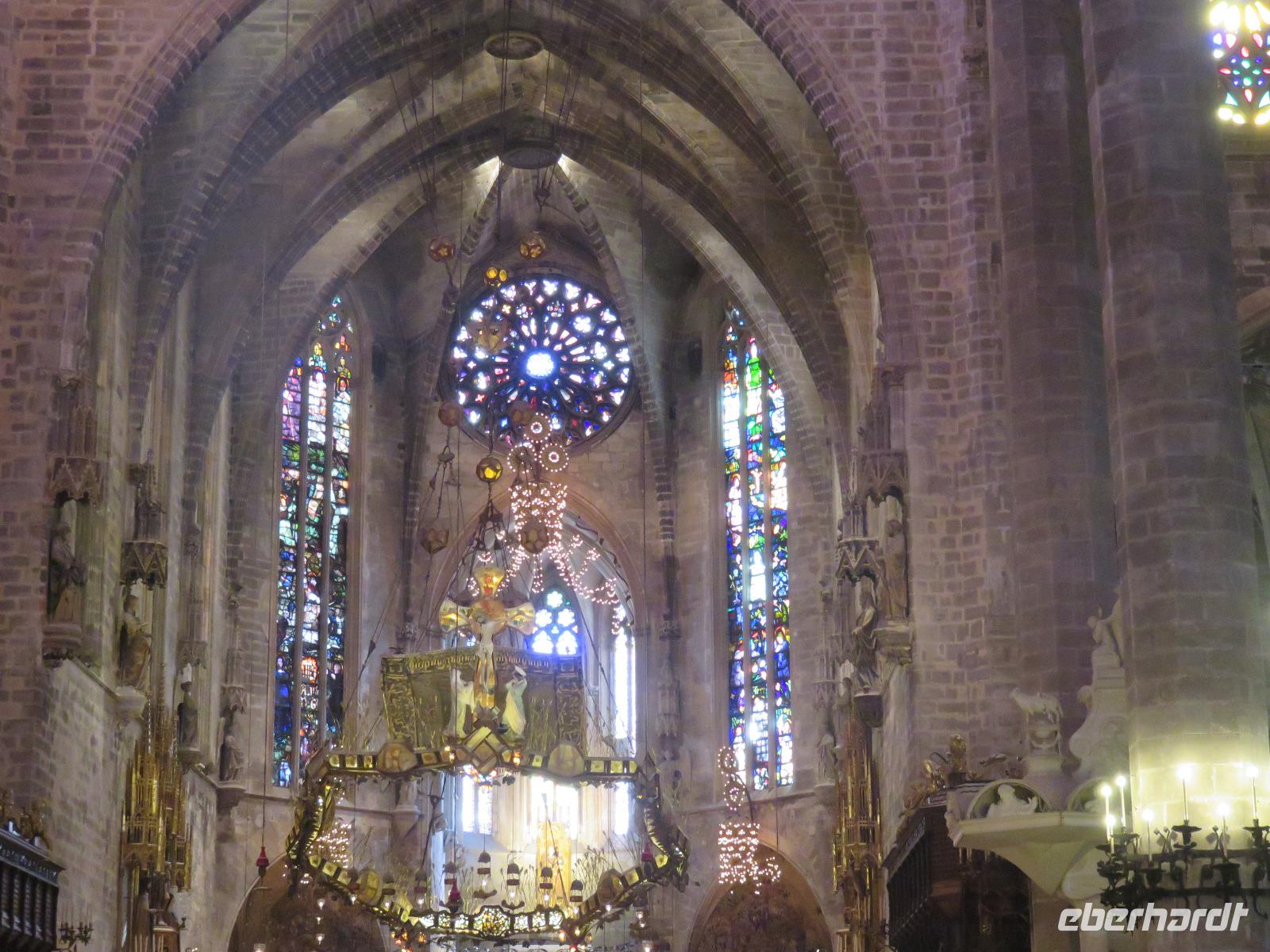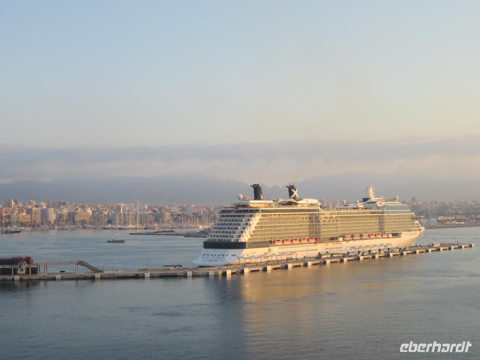 Schon sehr früh legte die Mein Schiff 3 im Hafen von Palma de Mallorca an. Unsere schöne Kreuzfahrt ging nun leider zu Ende. Da unser Rückflug erst am Abend erfolgte unternahmen wir noch einen Ausflug in Palma. Unsere Reiseleiterin Aixa erwartete uns bereits mit dem Bus. Wir hatten schnell unserer Koffer im Terminal vor dem Schiff gefunden und verstauten diese im Bus. Zunächst führte uns die Tour durch die Stadt hinauf zum Schloss Bellver. Diese runde Burg wurde im frühen 14.Jahrhundert als Sommerresidenz für den damaligen König Jaume II von Mallorca erbaut. Die heutige imposante Anlage mit dem Rundbau umgeben von einer dicken Mauer und drei Türmen diente bis 1915 als Gefängnis. Wir bestiegen die obere Etage und uns eröffnete sich ein wunderschöner Blick über die Stadt und das Meer. Nun ging es mit dem Bus wieder hinab und durch die Stadt Palma vorbei am Grandhotel, an der ehemaligen Stierkampf-Arena und schönen Villen in die Altstadt. In der Nähe der Kathedrale Sa Seu von Mallorca verließen wir den Bus. Zuerst besuchten wir die riesige Kathedrale. Der Bau der Kirche begann im Jahr 1299 und dauerte etwa 300 Jahre. Mehrere berühmte Architekten aus verschiedenen Epochen hinterließen ihre Spuren in diesem Bauwerk. Bereits von außen hatten wir die riesige Rosette gesehen über dem Hauptaltar gesehen. Sie zählt mit 12 Metern Durchmesser, 92 Quadratmetern Fläche und bestehend aus 12.000 kleinen Buntglasstücken als größte ihrer Art in einem Kirchenbau. Bedeutende Künstler haben ihre Handschrift bei der Gestaltung der Kirche hinterlassen, wie Antoni Gaudí, der die Beleuchtungskörper schuf oder Miquel Barceló, welcher in sehr moderner Form die Kapelle des Allerheiligsten mit faszinierenden Keramikfliesen gestaltete. Nun spazierten wir durch die Altstadt von Palma mit ihren netten verwinkelten Gassen. Mittags legten wir eine Pause an der Markthalle ein. Wir bestaunten das vielfältige Angebot an frischem Obst und Gemüse und den Fischmark. Es blieb noch Zeit für einen kleinen individuellen Imbiss. Anschließend liefen gingen wir zum Bus zurück. Bevor wir zum Flughafen fuhren, drehte Aixa mit uns noch eine Extrarunde über den Ballermann und durch Arenal. Am frühen Abend hieß es Abschied nehmen von Mallorca. Wir verließen die Ferieninsel per Flug Richtung Frankfurt. Beim Start konnten wir einen letzten Blick auf Mein Schiff 3 im Hafen werfen. In Frankfurt verabschiedeten wir die ersten Gäste. Von Frankfurt aus flogen wir weiter nach Dresden und Leipzig, wo wir pünktlich ankamen.Die Reise mit der Mein Schiff 3 im Westlichen Mittelmeer war sehr schön und wird uns sicher noch lange in Erinnerung bleiben.