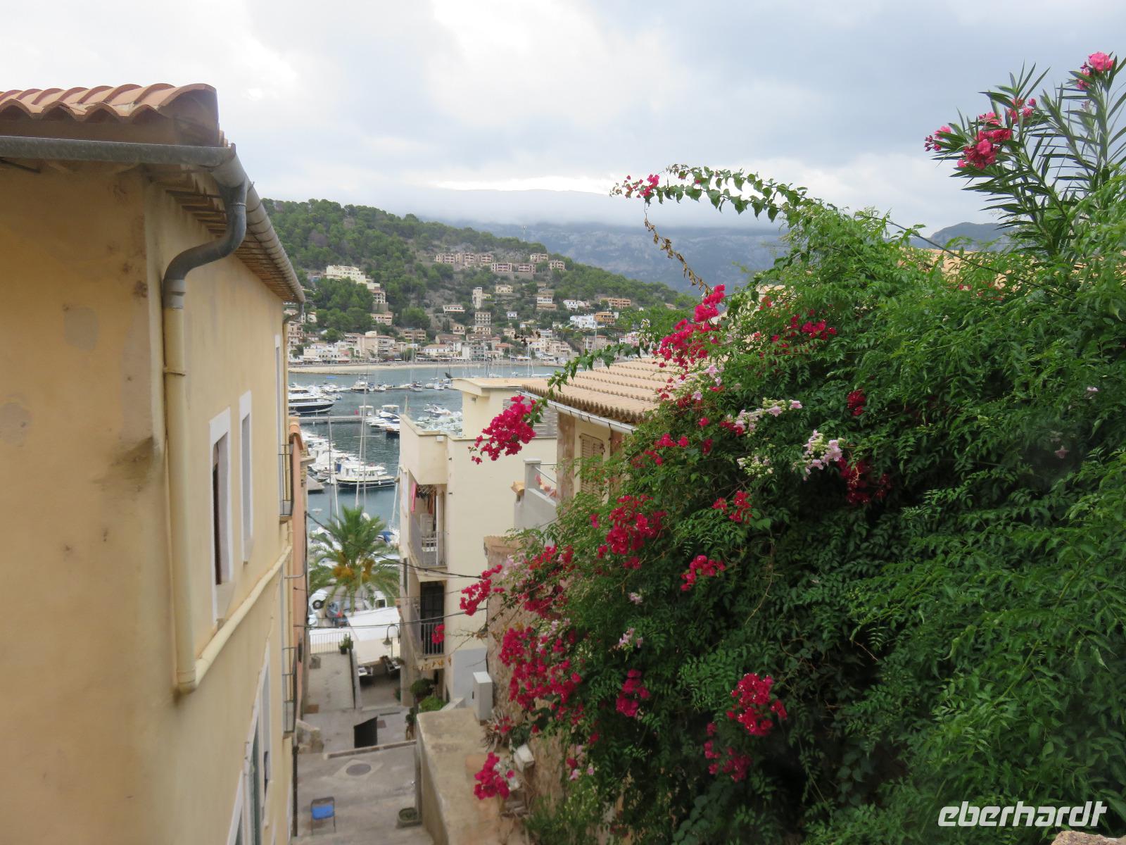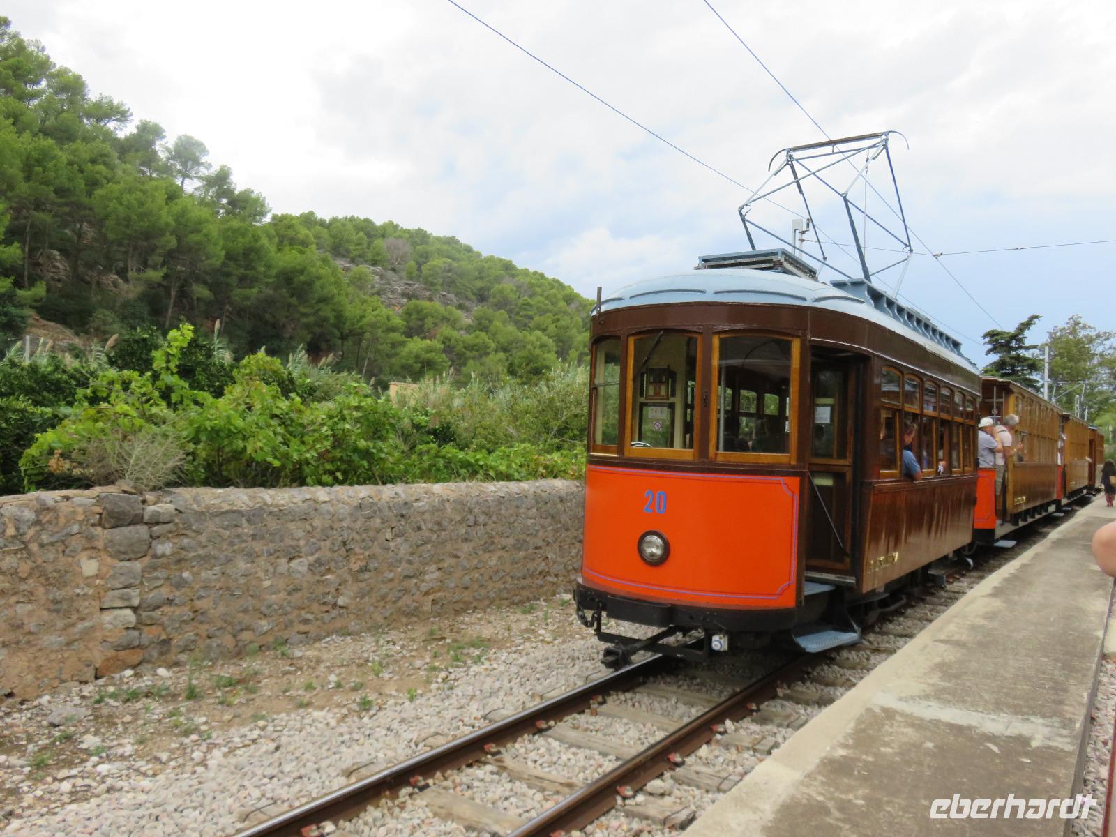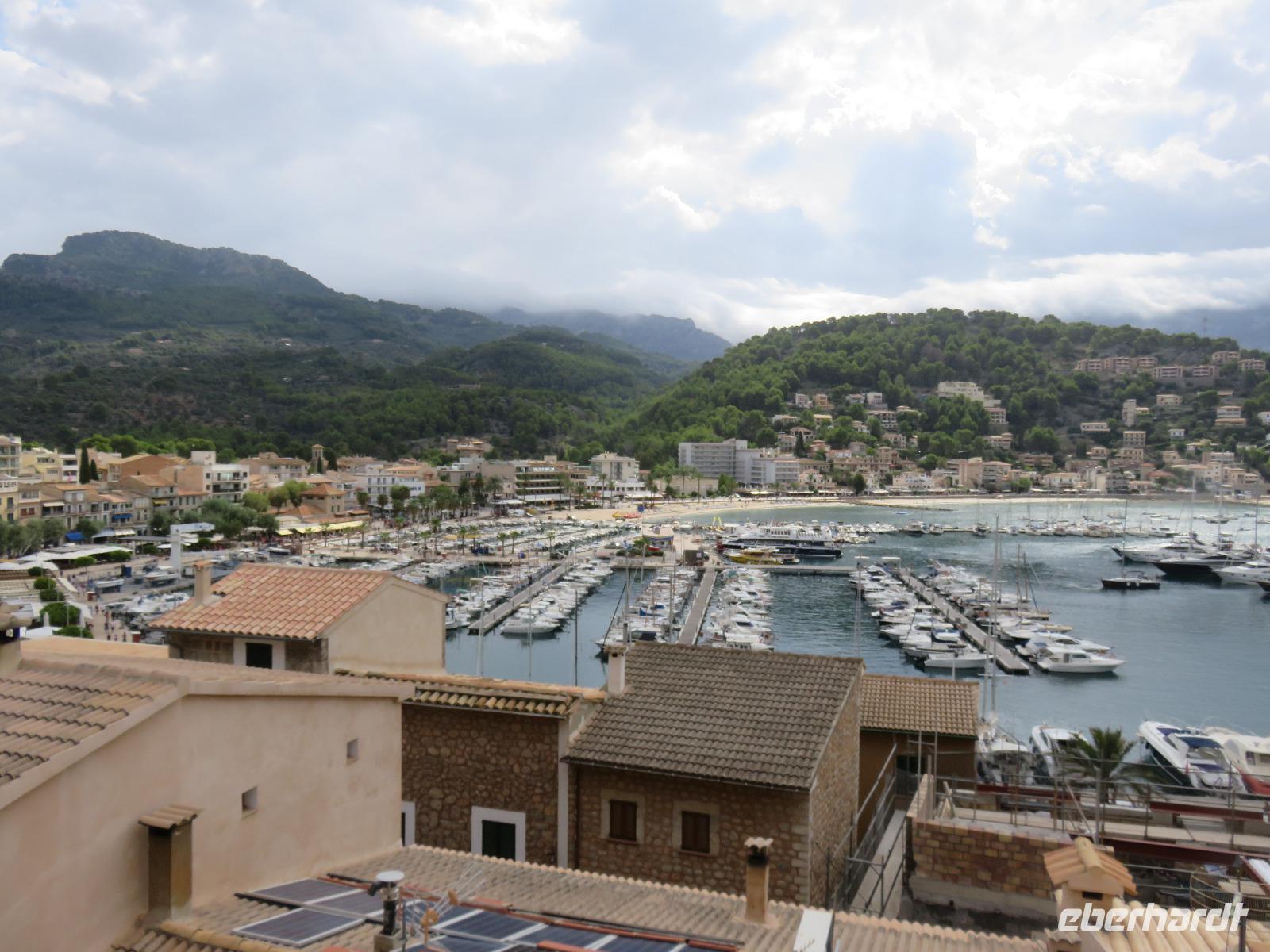 Der Himmel zeigte sich bewölkt, es hatte in der Nacht geregnet, sollte Magdalena recht haben, und der Tag verregnet werden? Pünktlich 9 Uhr starteten wir zu unserer Inselrundfahrt. Erste Station war das Bergdorf Valldemossa, einst Zufluchtsort von Frederic Chopin und George Sand. Die Autorin schrieb hier ihre berühmte Beschreibung „Ein Winter auf Mallorca" von 1838. Chopin komponierte einige seiner schönsten Préluden, zum Beispiel die Regentropfen-Prélud. Wir bummelten durch die engen, blumengeschmückten Gassen des Dorfes rund um das ehemalige Kartäuserkloster und die Kirche St. Bartolomä. Hier scheint die Zeit fast stillzustehen und wir gehörten zu den ersten Besuchern des noch jungen Tages. Daher konnten wir die besondere Atmosphäre des Ortes aufnehmen.Waren wir über die Höhen des Tramuntana-Gebirges gekommen, so fuhren wir nun an die Küste und blickten am Aussichtpunkt auf die Gelöcherte, den Felsen mit Loch, weiter zum Künstlerort Deia mit seinen kleinen und großen Hotels und den vielen Terrassen und schließlich nach Port Sollér. Es blieb uns Zeit für einen Bummel an der Uferpromenade oder bis hinauf zum Aussichtspunkt auf das offene Meer: Ein Muss für jeden Besucher! Doch welch ein Schreck unser Bus war bereits abgefahren - planmäßig. Wir wählten im Glanz der milden Sonne die alte Straßenbahn, um nach Sollér zu gelangen. Ein Zug ganz für unsere Reisegruppe, dazu die ältesten Waggons, mit offenen Seiten, noch die Sommerversion, es ratterte und rüttelte ganz angenehm. Über die Gipfelkanten des Tramuntana-Gebirges wallten dicke, schwarze Wolken herunter in den großen weiten Talkessel. Während unserer Mittagspause hörten wir erstes zartes Grollen aus der Ferne, dann gab es einen Schauer - niemand ahnte zu diesem Zeitpunkt, dass es nur Vorboten waren. Schnell einen Blick in die schmucke, barockausgestattete Pfarrkirche St. Bartolomä von Sollér und ein Foto, wie die Straßenbahn direkt über den Marktplatz fährt ... Unser Fußweg zum Bus wurde durch ein Unwetter sehr nass und unangenehm. Trotz Regenschirm oder Regenbekleidung war es kein guter Abschied von Sollér. Auf dem Weg zur Bodega des Weingutes Taujana mit Winzer Sebastian und seiner Familie sahen wir, welche Wassermassen abgeregnet wurden. Nach der Probe der vollmundigen Rot- und Roséweine sowie einiger Spezialitäten der Insel fuhren wir schließlich zurück nach Mallorca.