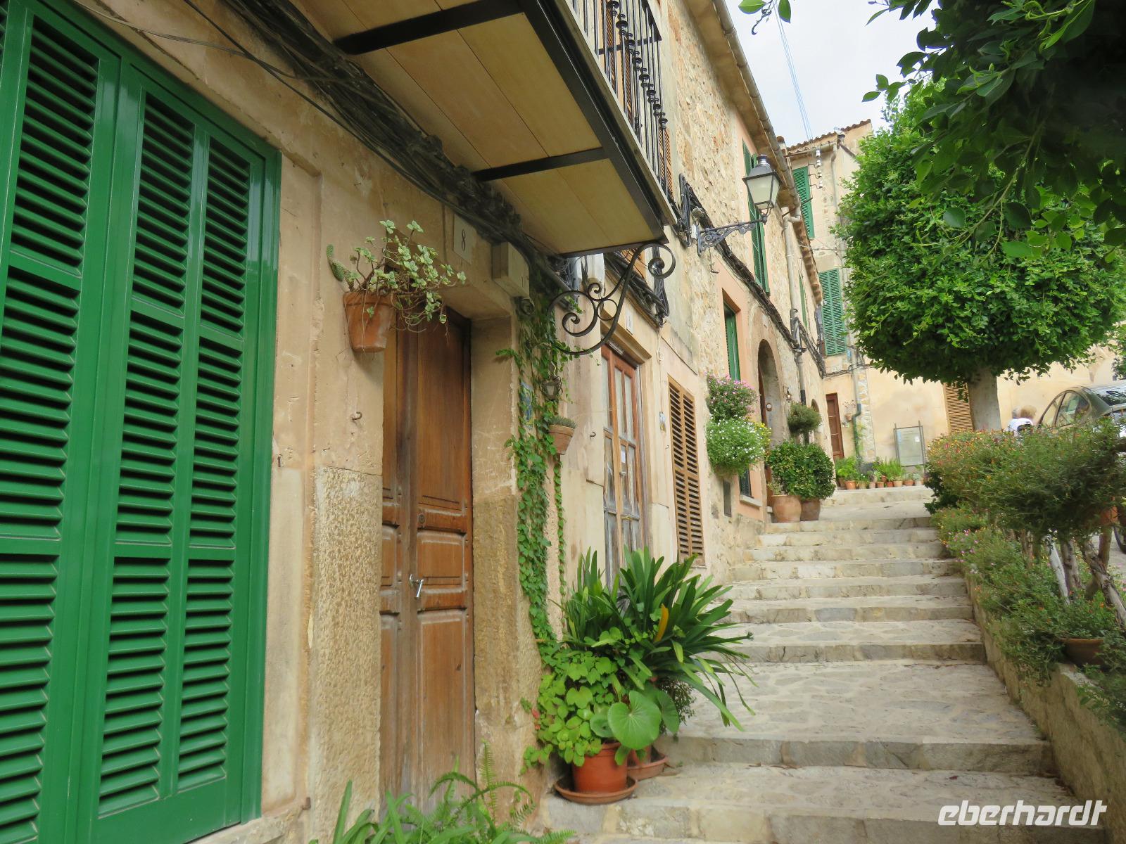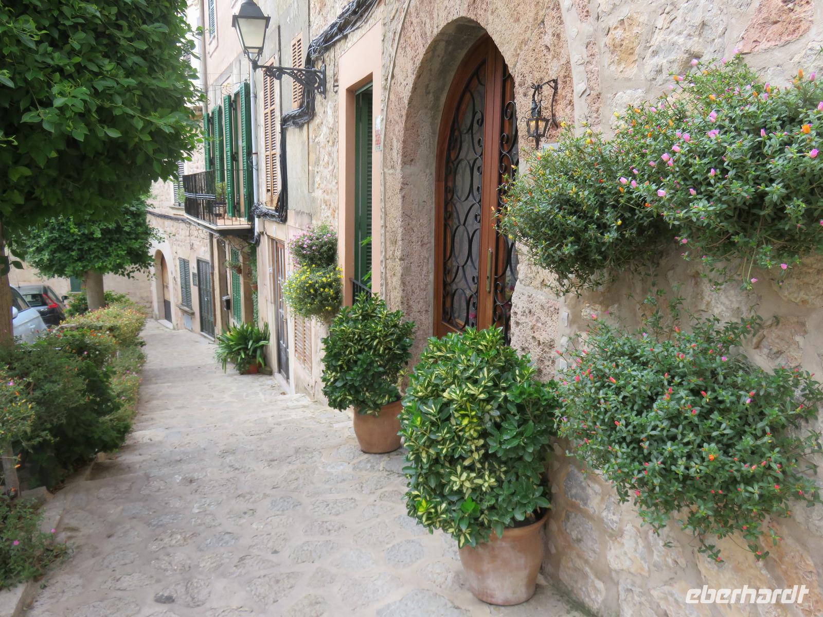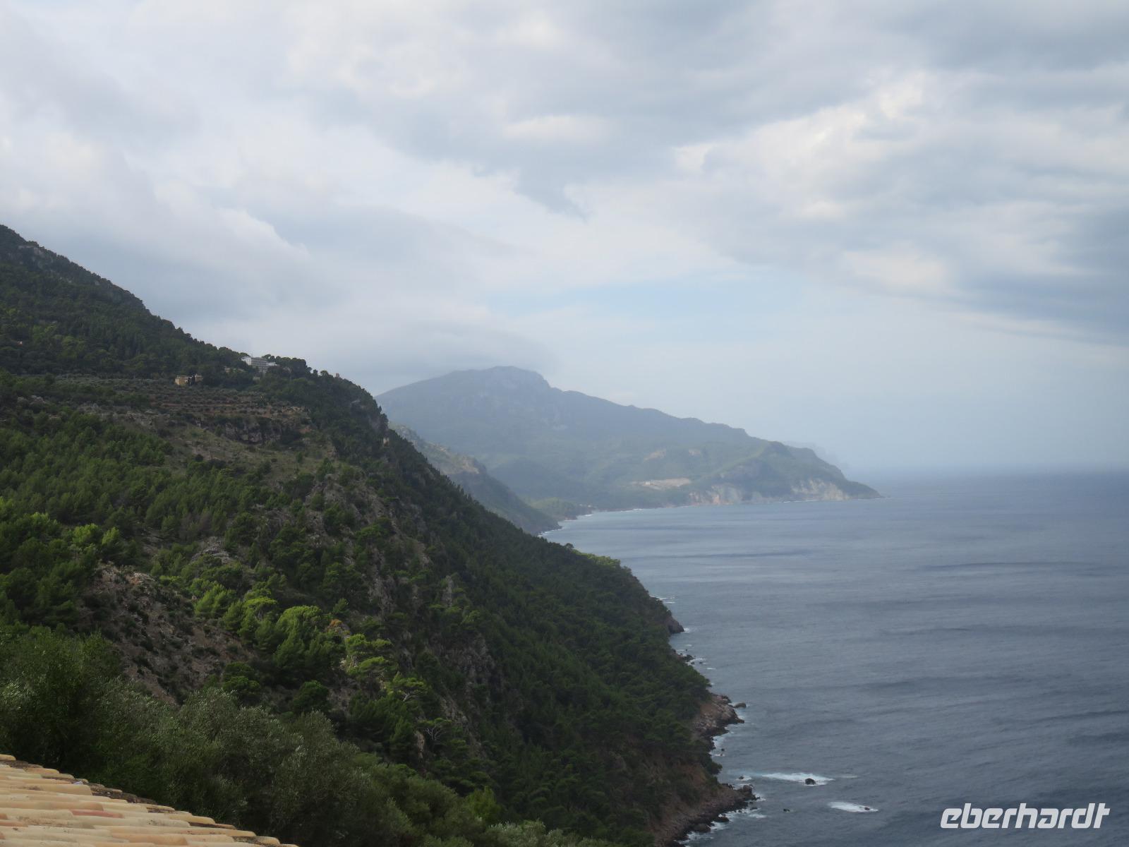 Der Himmel zeigte sich bewölkt, es hatte in der Nacht geregnet, sollte Magdalena recht haben, und der Tag verregnet werden? Pünktlich 9 Uhr starteten wir zu unserer Inselrundfahrt. Erste Station war das Bergdorf Valldemossa, einst Zufluchtsort von Frederic Chopin und George Sand. Die Autorin schrieb hier ihre berühmte Beschreibung „Ein Winter auf Mallorca" von 1838. Chopin komponierte einige seiner schönsten Préluden, zum Beispiel die Regentropfen-Prélud. Wir bummelten durch die engen, blumengeschmückten Gassen des Dorfes rund um das ehemalige Kartäuserkloster und die Kirche St. Bartolomä. Hier scheint die Zeit fast stillzustehen und wir gehörten zu den ersten Besuchern des noch jungen Tages. Daher konnten wir die besondere Atmosphäre des Ortes aufnehmen.Waren wir über die Höhen des Tramuntana-Gebirges gekommen, so fuhren wir nun an die Küste und blickten am Aussichtpunkt auf die Gelöcherte, den Felsen mit Loch, weiter zum Künstlerort Deia mit seinen kleinen und großen Hotels und den vielen Terrassen und schließlich nach Port Sollér. Es blieb uns Zeit für einen Bummel an der Uferpromenade oder bis hinauf zum Aussichtspunkt auf das offene Meer: Ein Muss für jeden Besucher! Doch welch ein Schreck unser Bus war bereits abgefahren - planmäßig. Wir wählten im Glanz der milden Sonne die alte Straßenbahn, um nach Sollér zu gelangen. Ein Zug ganz für unsere Reisegruppe, dazu die ältesten Waggons, mit offenen Seiten, noch die Sommerversion, es ratterte und rüttelte ganz angenehm. Über die Gipfelkanten des Tramuntana-Gebirges wallten dicke, schwarze Wolken herunter in den großen weiten Talkessel. Während unserer Mittagspause hörten wir erstes zartes Grollen aus der Ferne, dann gab es einen Schauer - niemand ahnte zu diesem Zeitpunkt, dass es nur Vorboten waren. Schnell einen Blick in die schmucke, barockausgestattete Pfarrkirche St. Bartolomä von Sollér und ein Foto, wie die Straßenbahn direkt über den Marktplatz fährt ... Unser Fußweg zum Bus wurde durch ein Unwetter sehr nass und unangenehm. Trotz Regenschirm oder Regenbekleidung war es kein guter Abschied von Sollér. Auf dem Weg zur Bodega des Weingutes Taujana mit Winzer Sebastian und seiner Familie sahen wir, welche Wassermassen abgeregnet wurden. Nach der Probe der vollmundigen Rot- und Roséweine sowie einiger Spezialitäten der Insel fuhren wir schließlich zurück nach Mallorca.