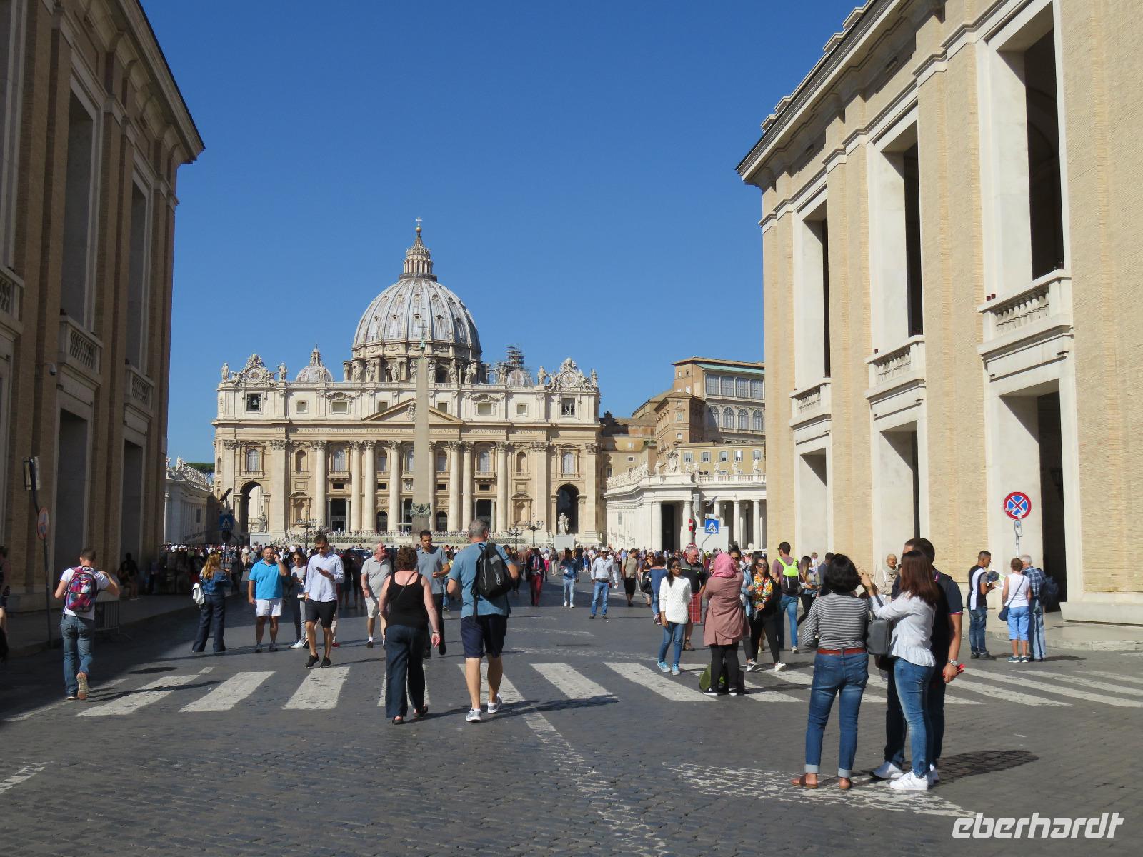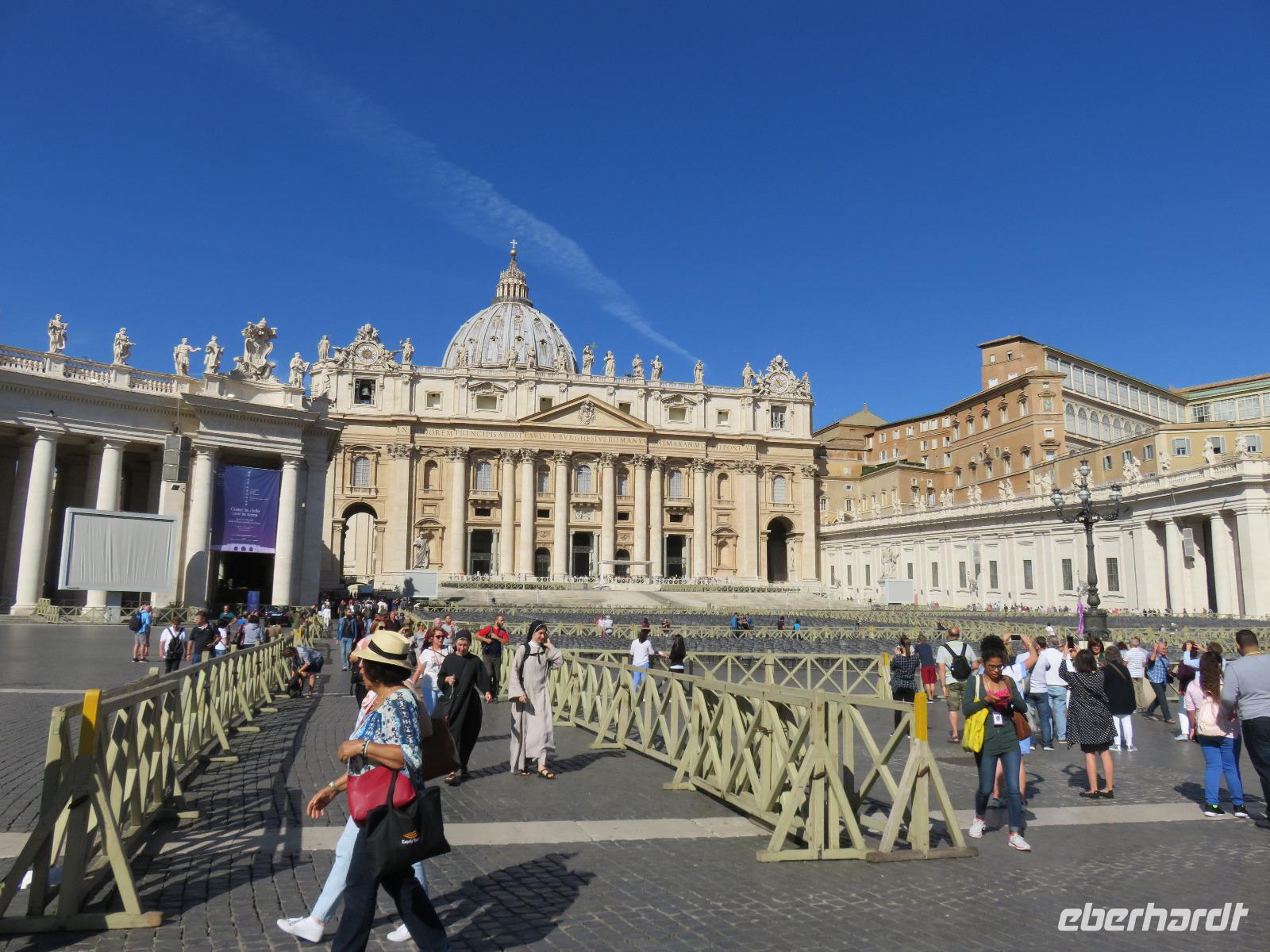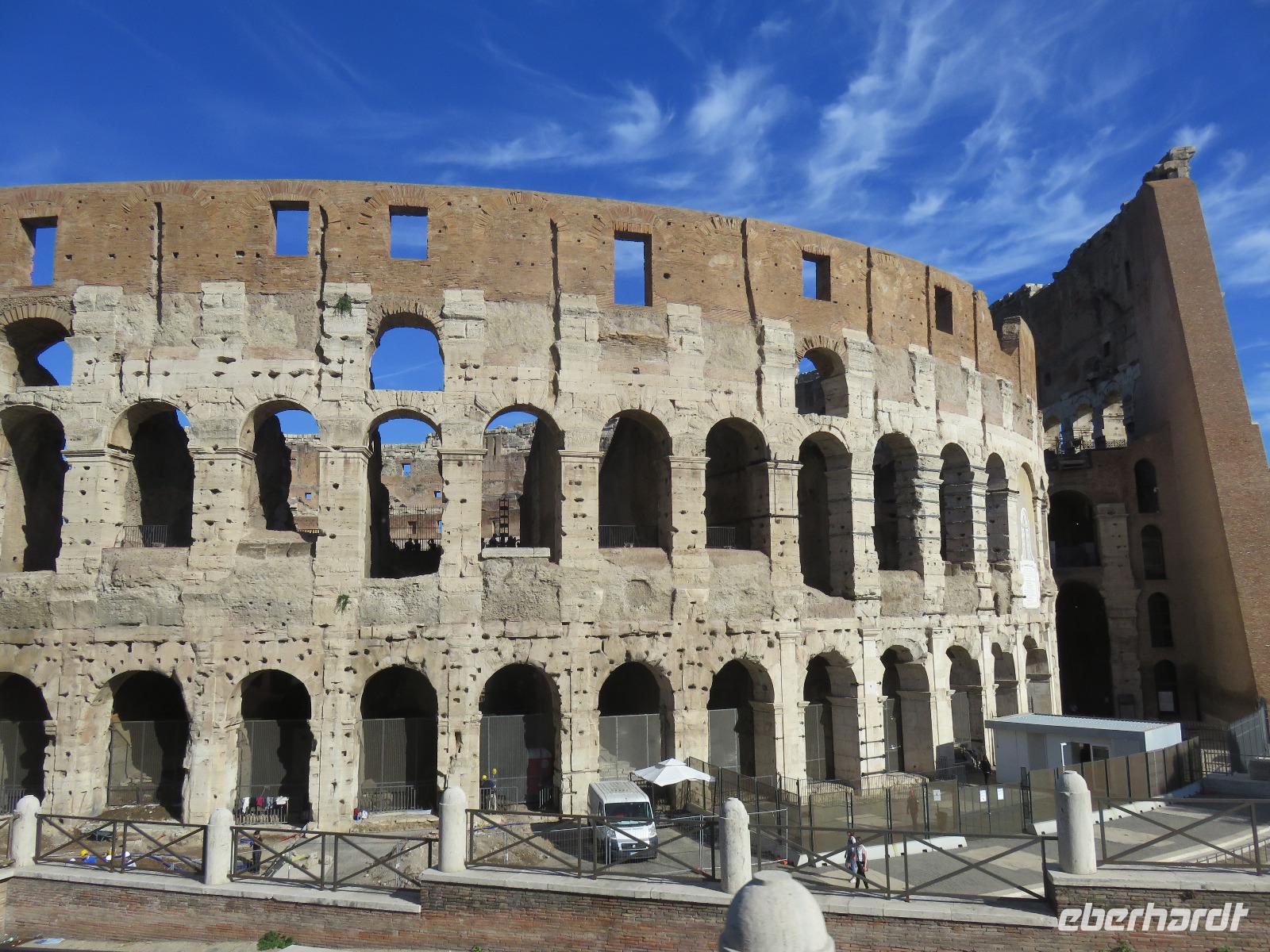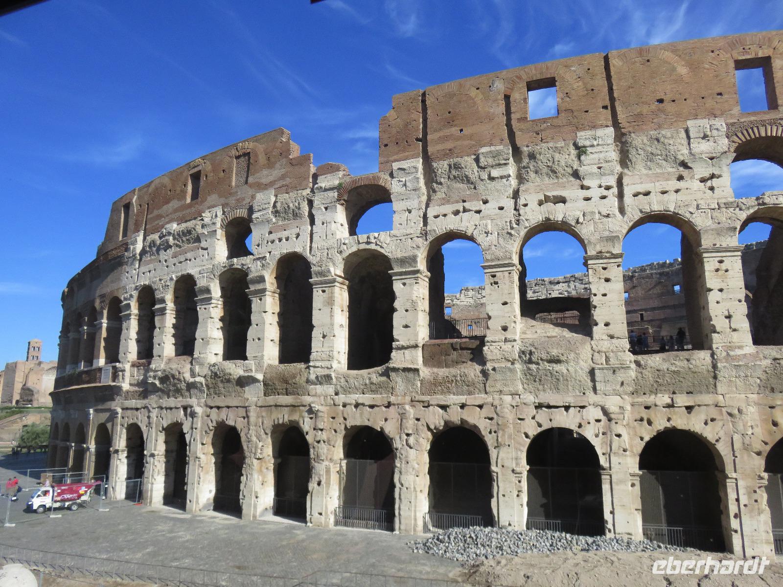 Bereits 7.15 Uhr trafen wir uns zu unserem Ausflug in die Tibermetropole. Gabriela, einst mit zehn Jahren aus Wien mit ihren Eltern nach Rom gekommen, führte uns zu den großen geschichtlichen Sehenswürdigkeiten der Stadt. Für viele unter uns Erinnerung an bisherige Besuche in der stolzen Stadt ODER Anregung für eine zukünftige Städtereise. Unsere örtliche Reiseleiterin verstand es, uns auf dem Anreiseweg knapp und trotzdem anschaulich die unterschiedlichen Geschichtsetappen nahe zu bringen. Dadurch konnten wir die einzelnen Besichtigungspunkte unserer Stadtrundfahrt besser einordnen: Kirche St. Paul vor den Mauern, Cestius-Pyramide, Aventin-Hügel, Konstantinsbogen, Kolosseum, Forum Romanum, Caracalla-Thermen, Circus Maximus, Palatin-Hügel, Nationaldenkmal, Argentinischer Platz, Engelsburg und schließlich der Petersplatz mit dem Petersdom. Hier hatten wir etwas Freizeit, um den Petersplatz zu betreten und ein wenig die besondere Atmosphäre aufzunehmen. Danach fuhren wir vorbei an der großen Audienzhalle und durch den Stadtteil Gian Nicolo zurück zur Autobahn und vorbei am Flughafen nach Civitavecchia. Es war eine Stadtrundfahrt zu den äußerst wichtigen Sehenswürdigkeiten der Ewigen Stadt. Um diese außergewöhnliche Stadt richtig zu besichtigen, braucht es nicht nur Stunden, sondern Tage und Wochen. Auch hier gilt erinnern oder Anregungen für Zukünftiges zu erhalten ... Eberhardt TRAVEL bietet dazu vielfältige Möglichkeiten. Am Mittag machten wir Platz für weitere Rom-Besucher. Den Nachmittag gestaltete jeder Gast auf seine Art und Weise: Heute war auch etwas Erholen am Pooldeck angesagt. Petrus meinte es richtig gut mit uns: Sonne satt, kaum Wolken und kaum Wind, 24 °C.