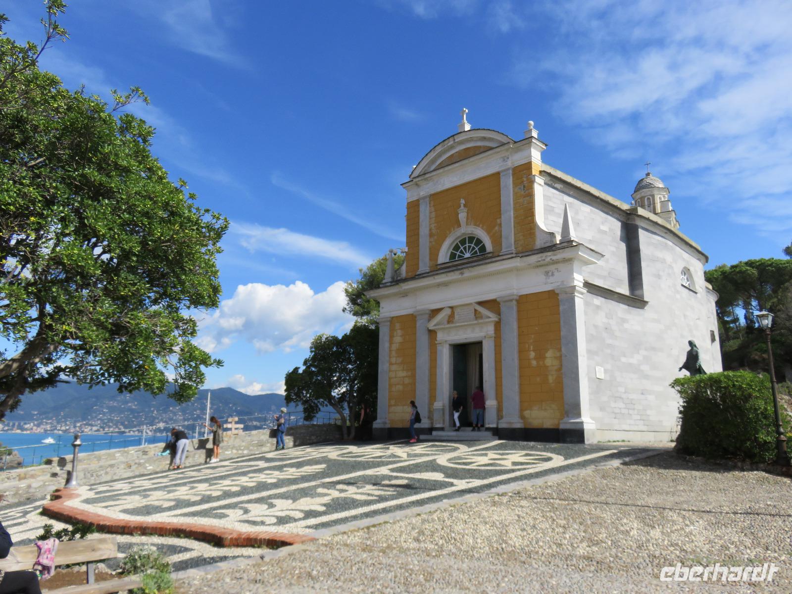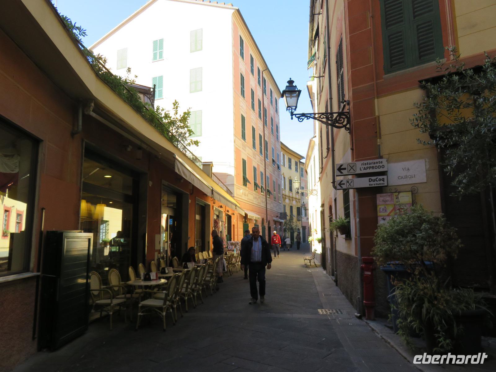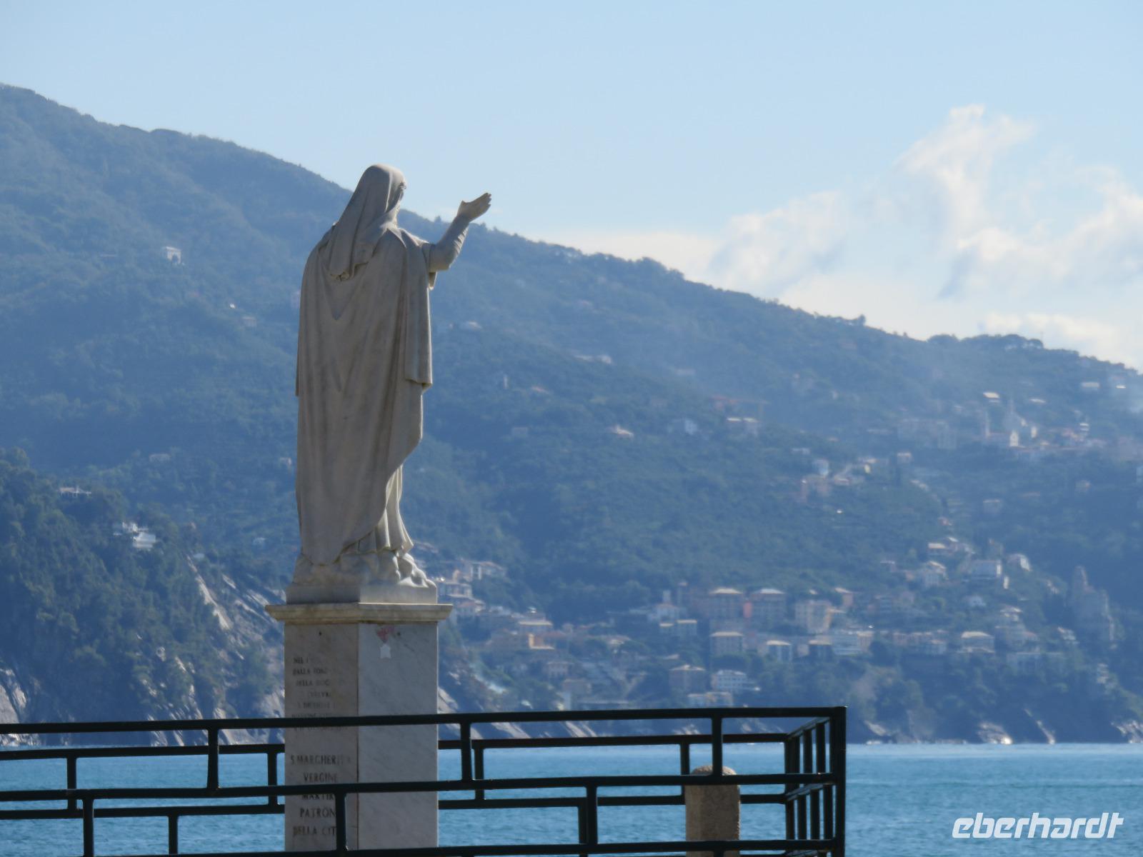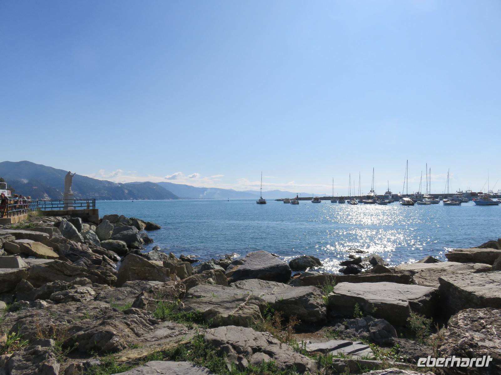 Beim Ausflug nach Portofino war unsere erste Station St. Margherita de Ligure direkt am Golfo Paradiso. Dieser Ort präsentierte sich als kleine, romantische Stadt mit Gassen und Gässchen, dem Hafen und natürlich dem Dom. Wir spazierten bis zum Hauptplatz und hatten dann etwas Freizeit zum Bummeln und Flanieren, zum Kaffeetrinken oder auch einfach nur zum Schauen und zur Aufnahme der besonderen Atmosphäre. An mehreren Häusern viel uns eine blaue Flagge auf, diese kündet von der sehr guten Wasserqualität entlang der Strände der Region. Natürlich haben wir auch von der Pogaggia gekostet: luftig, deftig und lecker ... Pünktlich trafen wir uns alle am Denkmal für Victorio Emanuelle II. am Hafen. Ziel unserer kleinen Schifffahrt war das 15 Minuten entfernte bezaubernde Portofino. Entlang der Küste blickten wir auf kleine, feine Strände, zu herrschaftlichen Villen und ein kleiner Schwenk nach rechts und dann der Blick in die kleine Bucht von Portofino mit der berühmten Häuserzeile: strahlend, blauer Himmel, türkisfarbenes Meer und die bunten Häuser. Schnell an Land und diese Szenerie aufnehmen. Nach Hinweisen zu den einzelnen Straßen, die von der Piazetta abzweigen, zum besten Eis des Städtchens, zum Aufstieg zur Kirche San Giorgio oder zum Castello Brown, war Freizeit und jeder lenkte seine Schritte nach Lust und Laune. Nur das Eis war mit 3 € pro Kugel etwas teuer. Aber wir hatten doch in einer Nebenstraße auch eine kleine Gelateria entdeckt und diese verwendete ebenfalls nur natürliche Rohstoffe, also laufen wir wieder zurück, denn die Lage dieses Geschäftes wollten wir nicht mitbezahlen. Wer von uns gute Kondition hatte und den Weg hinauf zur Kirche San Giorgio nicht scheute, wurde mit einem wundervollen Panoramablick auf Portofino und auf das offene Meer belohnt. Mit dem Boot fuhren wir schließlich zurück und von dort mit dem Bus wieder nach La Spezia. Wir wären aber nicht hier gewesen, hätten wir in Rapallo nicht einen Blick auf das berühmte Hotel Imperiale Palace geworfen. Hier wurde 1922 der Vertrag zwischen Deutschland und Russland geschlossen und Weltgeschichte geschrieben. Damit nahmen beide Länder diplomatische Beziehungen, die durch den 1. Weltkrieg und die Oktoberrevolution unterbrochen waren, wieder auf.