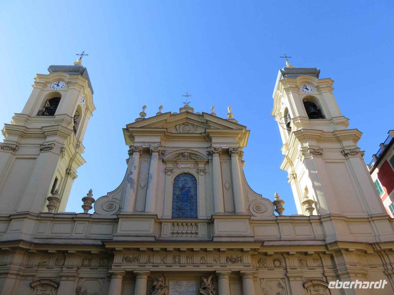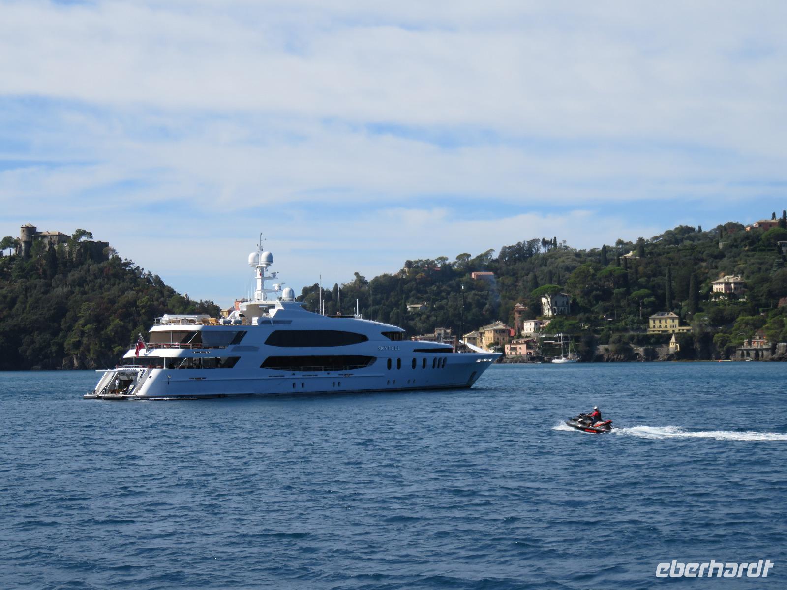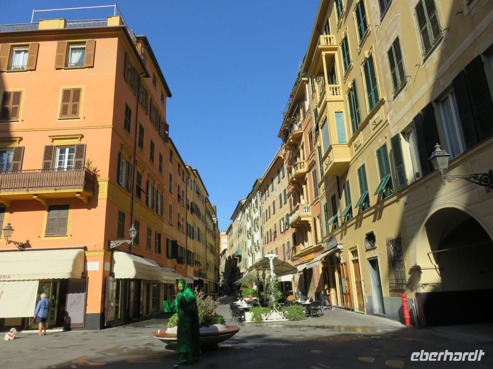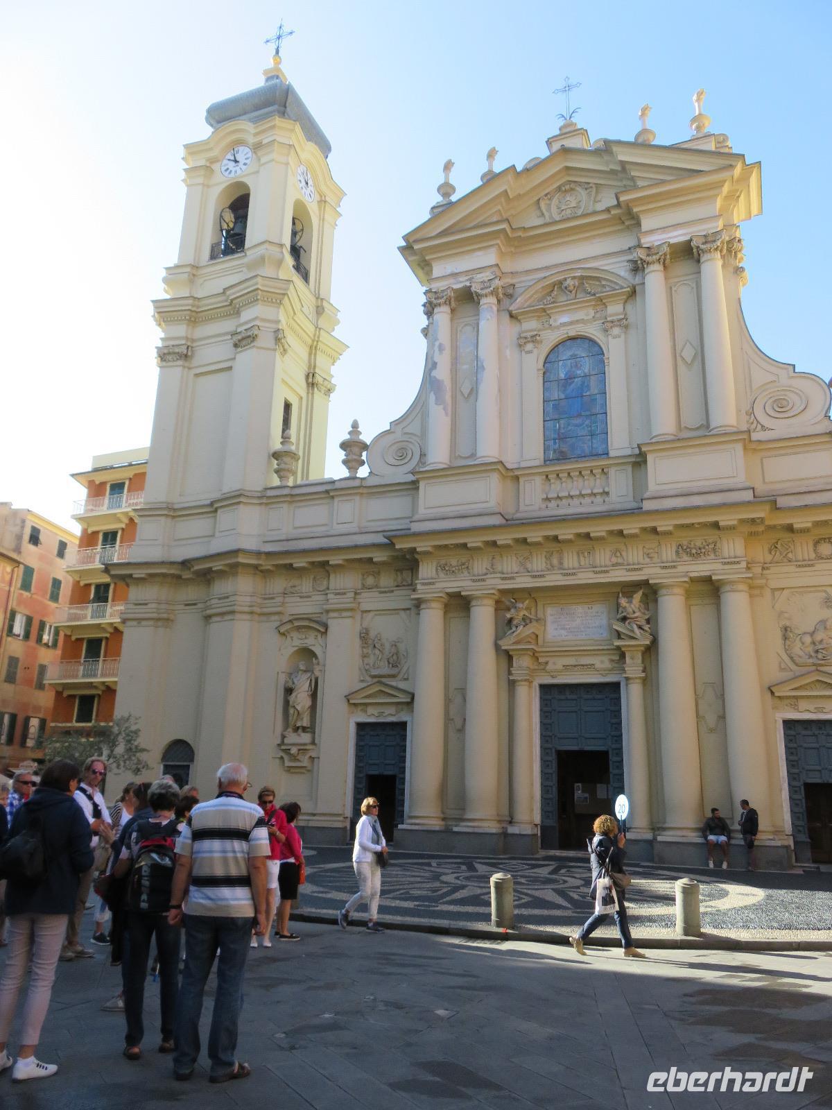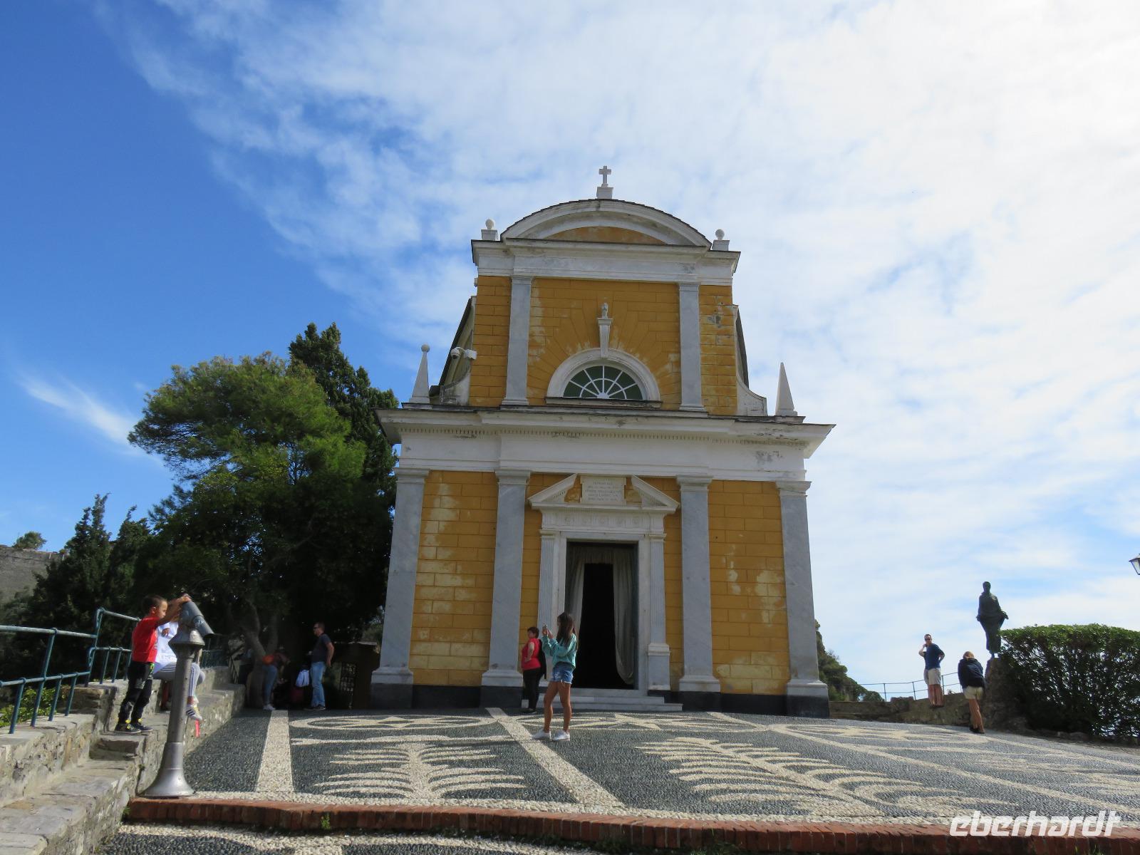 Beim Ausflug nach Portofino war unsere erste Station St. Margherita de Ligure direkt am Golfo Paradiso. Dieser Ort präsentierte sich als kleine, romantische Stadt mit Gassen und Gässchen, dem Hafen und natürlich dem Dom. Wir spazierten bis zum Hauptplatz und hatten dann etwas Freizeit zum Bummeln und Flanieren, zum Kaffeetrinken oder auch einfach nur zum Schauen und zur Aufnahme der besonderen Atmosphäre. An mehreren Häusern viel uns eine blaue Flagge auf, diese kündet von der sehr guten Wasserqualität entlang der Strände der Region. Natürlich haben wir auch von der Pogaggia gekostet: luftig, deftig und lecker ... Pünktlich trafen wir uns alle am Denkmal für Victorio Emanuelle II. am Hafen. Ziel unserer kleinen Schifffahrt war das 15 Minuten entfernte bezaubernde Portofino. Entlang der Küste blickten wir auf kleine, feine Strände, zu herrschaftlichen Villen und ein kleiner Schwenk nach rechts und dann der Blick in die kleine Bucht von Portofino mit der berühmten Häuserzeile: strahlend, blauer Himmel, türkisfarbenes Meer und die bunten Häuser. Schnell an Land und diese Szenerie aufnehmen. Nach Hinweisen zu den einzelnen Straßen, die von der Piazetta abzweigen, zum besten Eis des Städtchens, zum Aufstieg zur Kirche San Giorgio oder zum Castello Brown, war Freizeit und jeder lenkte seine Schritte nach Lust und Laune. Nur das Eis war mit 3 € pro Kugel etwas teuer. Aber wir hatten doch in einer Nebenstraße auch eine kleine Gelateria entdeckt und diese verwendete ebenfalls nur natürliche Rohstoffe, also laufen wir wieder zurück, denn die Lage dieses Geschäftes wollten wir nicht mitbezahlen. Wer von uns gute Kondition hatte und den Weg hinauf zur Kirche San Giorgio nicht scheute, wurde mit einem wundervollen Panoramablick auf Portofino und auf das offene Meer belohnt. Mit dem Boot fuhren wir schließlich zurück und von dort mit dem Bus wieder nach La Spezia. Wir wären aber nicht hier gewesen, hätten wir in Rapallo nicht einen Blick auf das berühmte Hotel Imperiale Palace geworfen. Hier wurde 1922 der Vertrag zwischen Deutschland und Russland geschlossen und Weltgeschichte geschrieben. Damit nahmen beide Länder diplomatische Beziehungen, die durch den 1. Weltkrieg und die Oktoberrevolution unterbrochen waren, wieder auf.