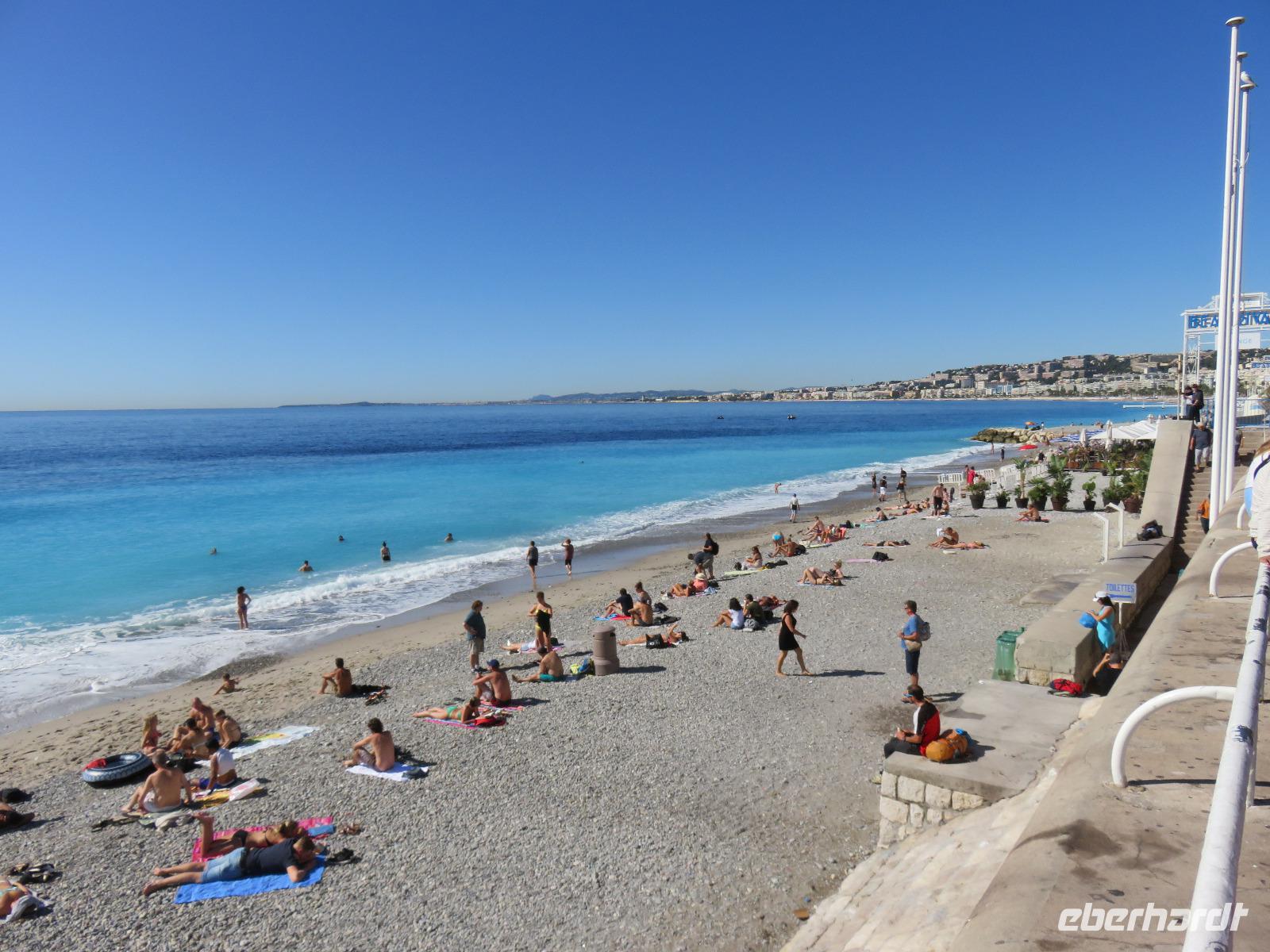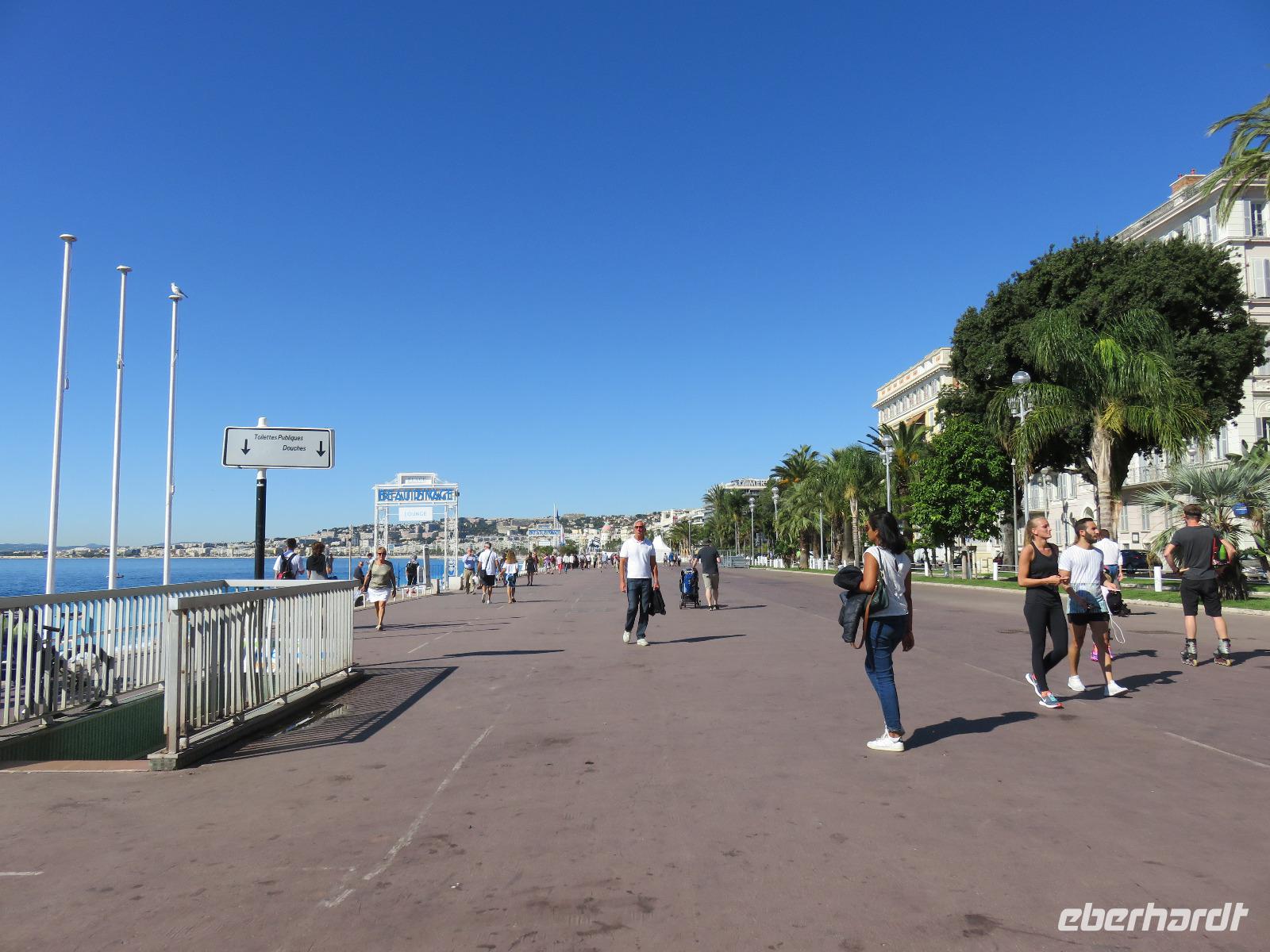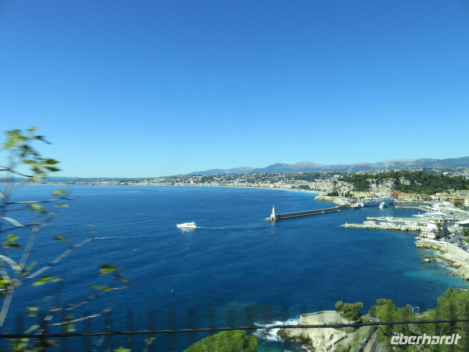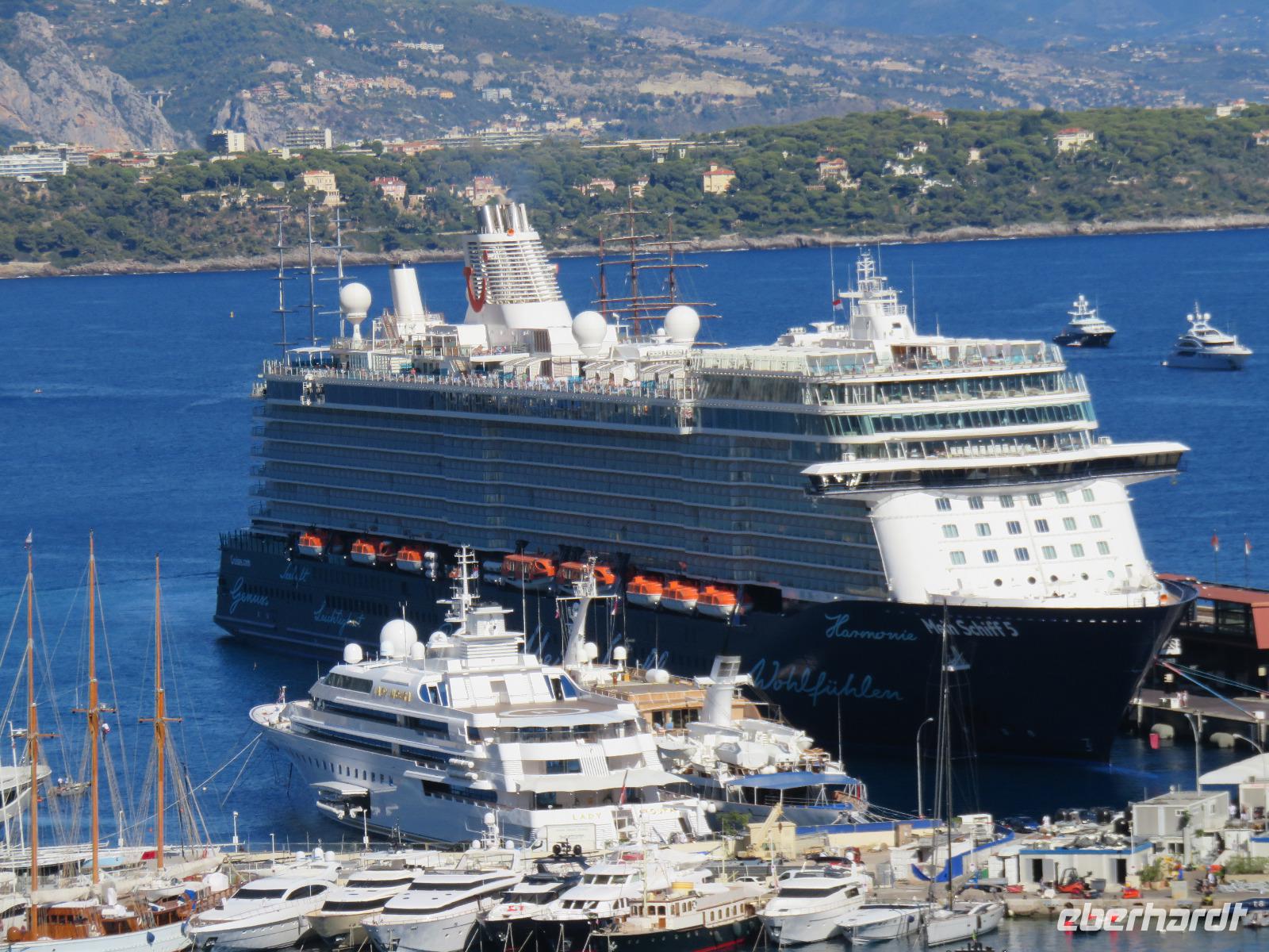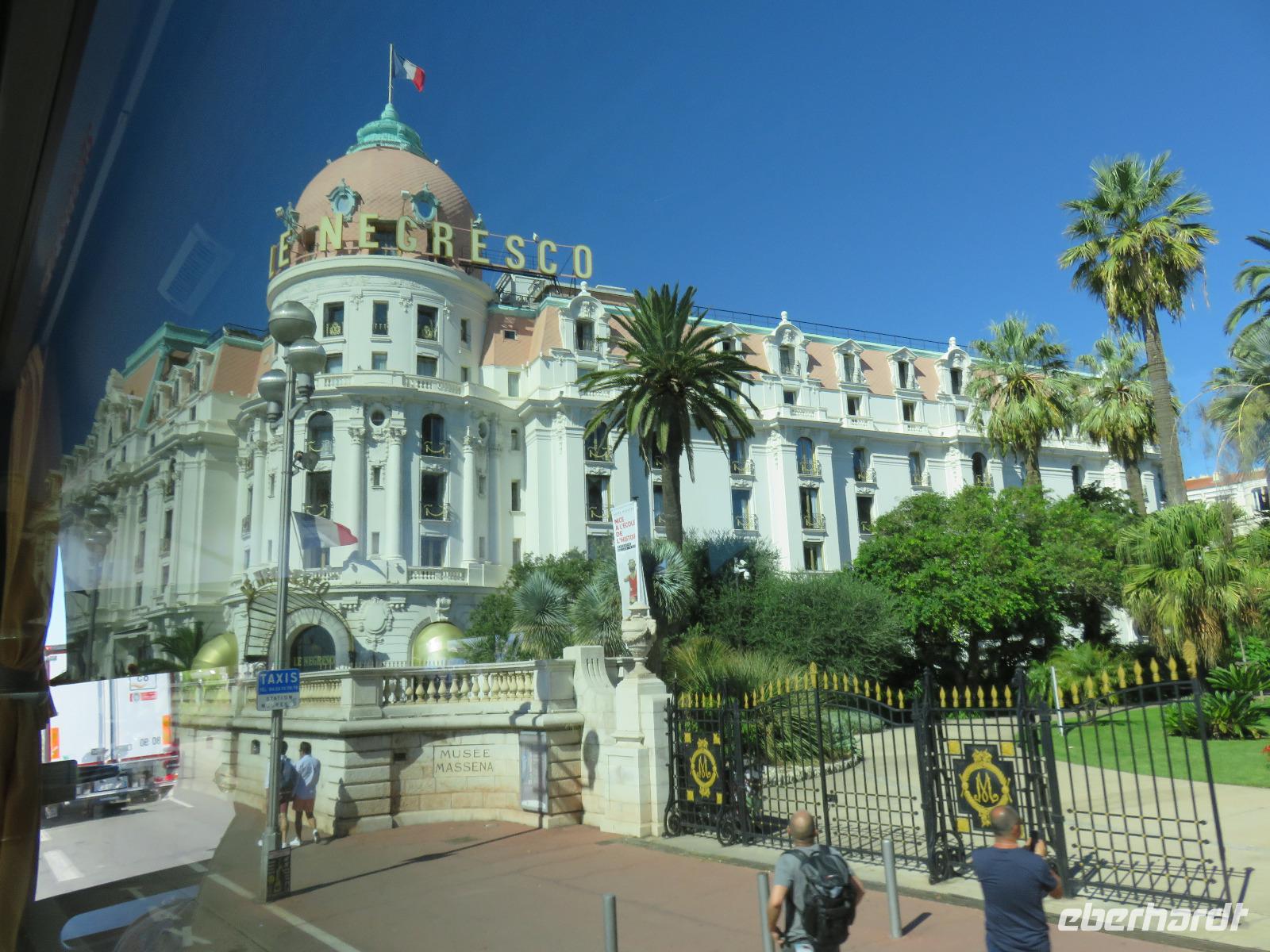 Auch wenn ich mich wiederhole: Blauer Himmel, flaches Meer und Sonnenschein. Es sollte wieder ein Spätsommertag werden. Schon die Einfahrt in den Stadthafen war ein Erlebnis und eine Freude. Obwohl wir eigentlich heute tendern sollten, die MEIN SCHIFF 5 ankerte direkt vor der prachtvollen Kulisse von Monte Carlo, direkt gegenüber den Startpositionen der Rennstrecke der Formel 1. Frühstück heute mit Sicht zu den Hotels und Palästen der Stadt. Pünktlich startete unser Eberhardt-Inklusiv-Ausflug nach Nizza und dann zurück nach Monaco. Helena, vor 35 Jahren von Finnland nach Nizza gekommen, und unsere Chauffeur Patrick hatten sich die Poolposition der Busse gesichert und so fuhren wir als erste Gruppe vom Schiff. Unsere Panoramaküstentour führte zuerst in das mondäne Nizza. Wir spazierten ganz entspannt durch die kleinen, äußerst engen Gassen der Stadt zum Fischmarkt. Nur noch drei Stände gibt es an dieser uralten, traditionellen Stelle und vor uns liegen die Schätze des Meeres fein säuberlich aufgereiht: Doraden, Tintenfische, Garnelen, Krabben, Langusten, Seeteufel ... Aus den kleinen Geschäften duftete es nach frischen Backwaren, nach Gebratenem oder die Auslagen mit frischem Obst, guter Wurst oder frischem Fleisch lockten um die Gunst der Käufer. Aber bei der guten Verpflegung an Bord waren wir nicht die richtigen Adressaten. Mit Helena war der berühmte Blumenmarkt von Nizza unser Ziel: eine äußerst bunte und vielfältige Welt. Zuerst besuchten wir den Obst- und Gemüsemarkt. Helena zeigte uns einige der Spezialitäten, zum Beispiel den über Holzfeuer gebackenen Kichererbsenfladen Socca, die sauren Mini-Gurken Cornichons, die Zwiebelzöpfe und den Lavendelhonig. Später schloss sich nahtlos der Blumenmarkt an. Wir genossen den Anblick der schön arrangierten Sträuße und der verschiedenen schönen Blüten. Danach spazierten wir weiter zur berühmten Promenade des Anglais und genossen den Ausblick. Wir hielten kurze inne und erinnerten uns an den Anschlag vom 14. Juli 2016 in der Nähe des Hotels Negresco.