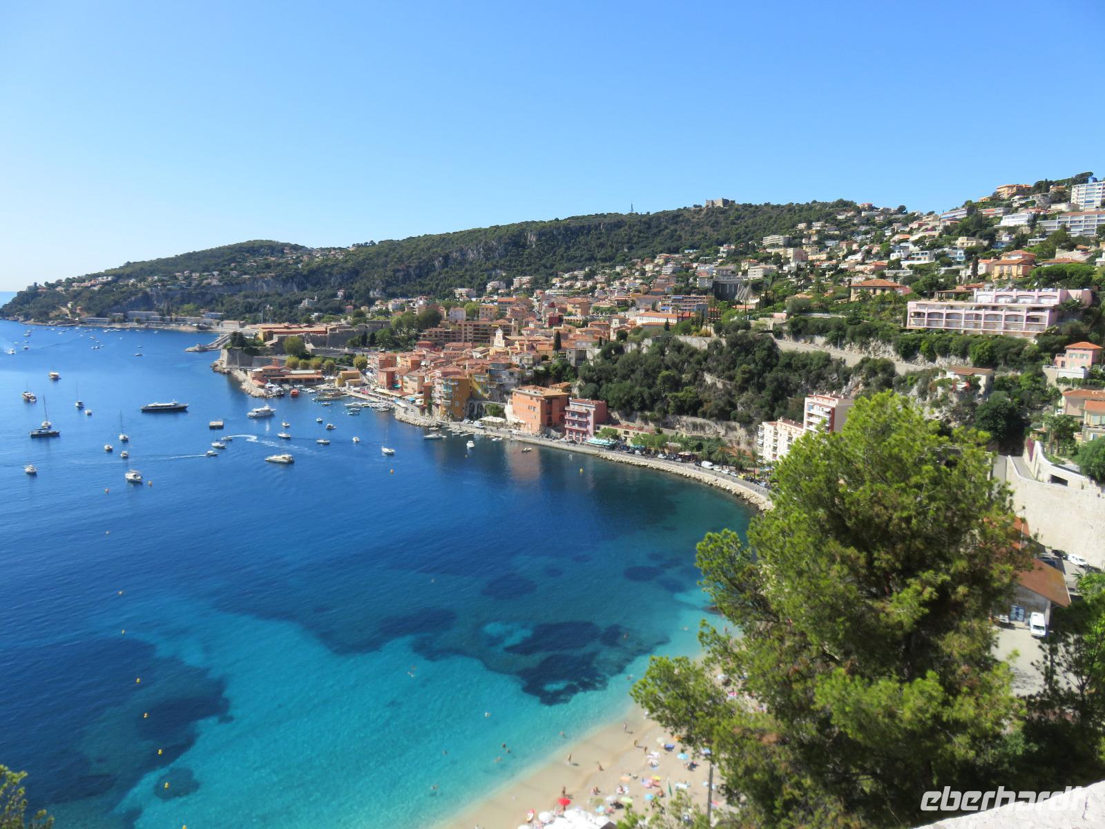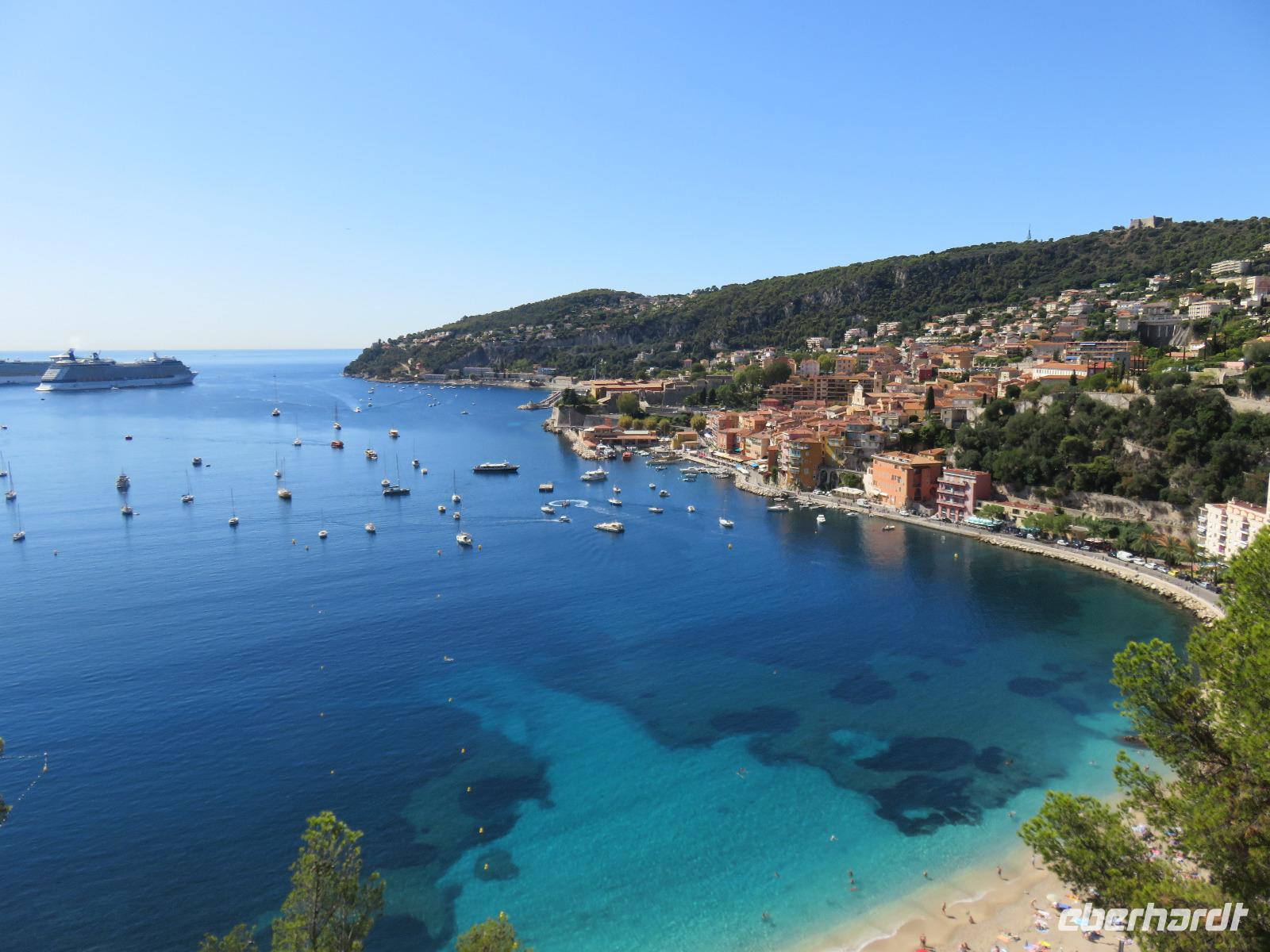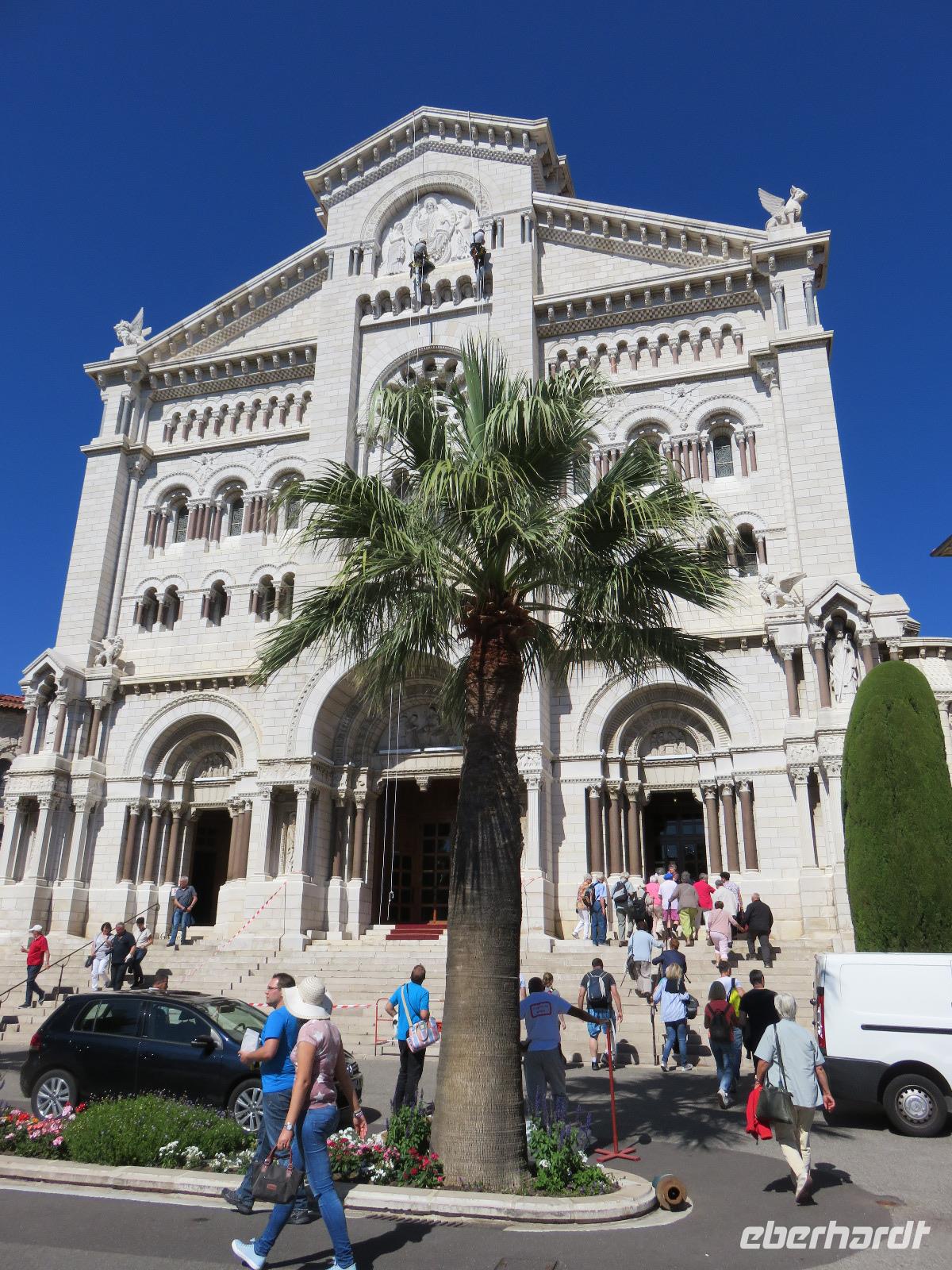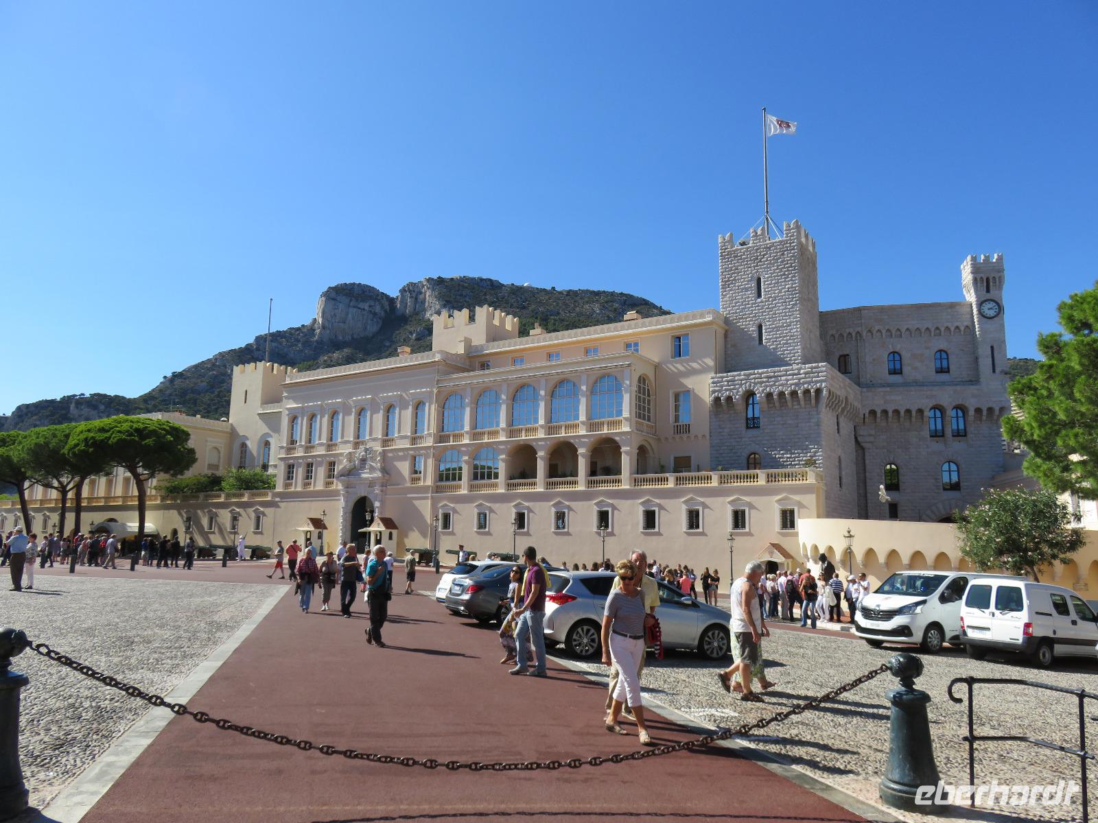 Um Zwölf Uhr hörten wir den Kanonendonner, der vom Schloss seit 1860 abgefeuert wird. Er geht auf Sir Thomas Coventry zurück und soll an ein regelmäßiges Mittagessen erinnern. Nach etwas Freizeit fuhren wir ein großes Stück entlang dieses sieben Kilometer langen Boulevards. Im Golf von Villefranche-sur-Mer blickten wir während eines Fotostopps auf das türkisfarbene Meer und die beiden Kreuzfahrtschiffe, die hier ankerten und deren Gäste mit Tenderbooten an Land gebracht worden. Weiter nahmen wir die Küstenstraße, um nach Monaco zurückzukehren. Unterwegs berichtete Helena vom Leben im Fürstentum, von der Fürstenfamilie der Grimaldis und die Bauweise der Häuser. Hier wird sehr gut gebaut, obwohl viele Häuser auf Pfählen stehen und teilweise in das Mittelmeer ragen, sind sie Erbeben sicher errichtet und sollen bis zu einer Stärke von 8 der Richterskala trotzen. Wir sahen die Strecke der Formel 1, verharrten ganz kurz an der Poolposition und dann ging es in steilem Bogen hinein in das Parkhaus der Busse. Von dort nahmen wir die Rolltreppe, den Fahrstuhl und die Rolltreppe und schon waren wir auf der Ebene des Felsens von Monaco. Wir besichtigten die neoromanische Kathedrale der unbefleckten Empfängnis mit der Fürstengruft der Grimaldis. Das Grab von Fürstin Gracia Patricia (Grace Kelly) war besonders üppig mit Blumen geschmückt. Danach spazierten wir durch die engen Gassen zum Fürstlichen Palast. Offensichtlich war Fürst Albert zu Hause, seine Flagge wehte im Wind. Die Freizeit nutzten wir zu einer Erfrischung, wir beobachteten die Ablösung der Ehrenwache am Schloss, erfreuten uns am wahrlich imposanten Blick auf Monte Carlo und den Hafen La Condamine mit unzähligen Yachten verschiedenster Größen und Kategorien. Nur eins haben wir nicht getan, unser Glück im berühmten Großen Casino versucht. Also dann doch einen Bummel im kleinen Botanischen Garten an der Katherdale. Nun wieder hinab zum Bus, Rolltreppe, Fahrstuhl, Rolltreppe ... Und mit dem Bus um drei Ecken und schon waren wir am Hafen und damit am Schiff. Herzlich verabschiedeten wir uns von Helena und Patrick, die mit uns einen äußerst interessanten Tag verbracht hatten.