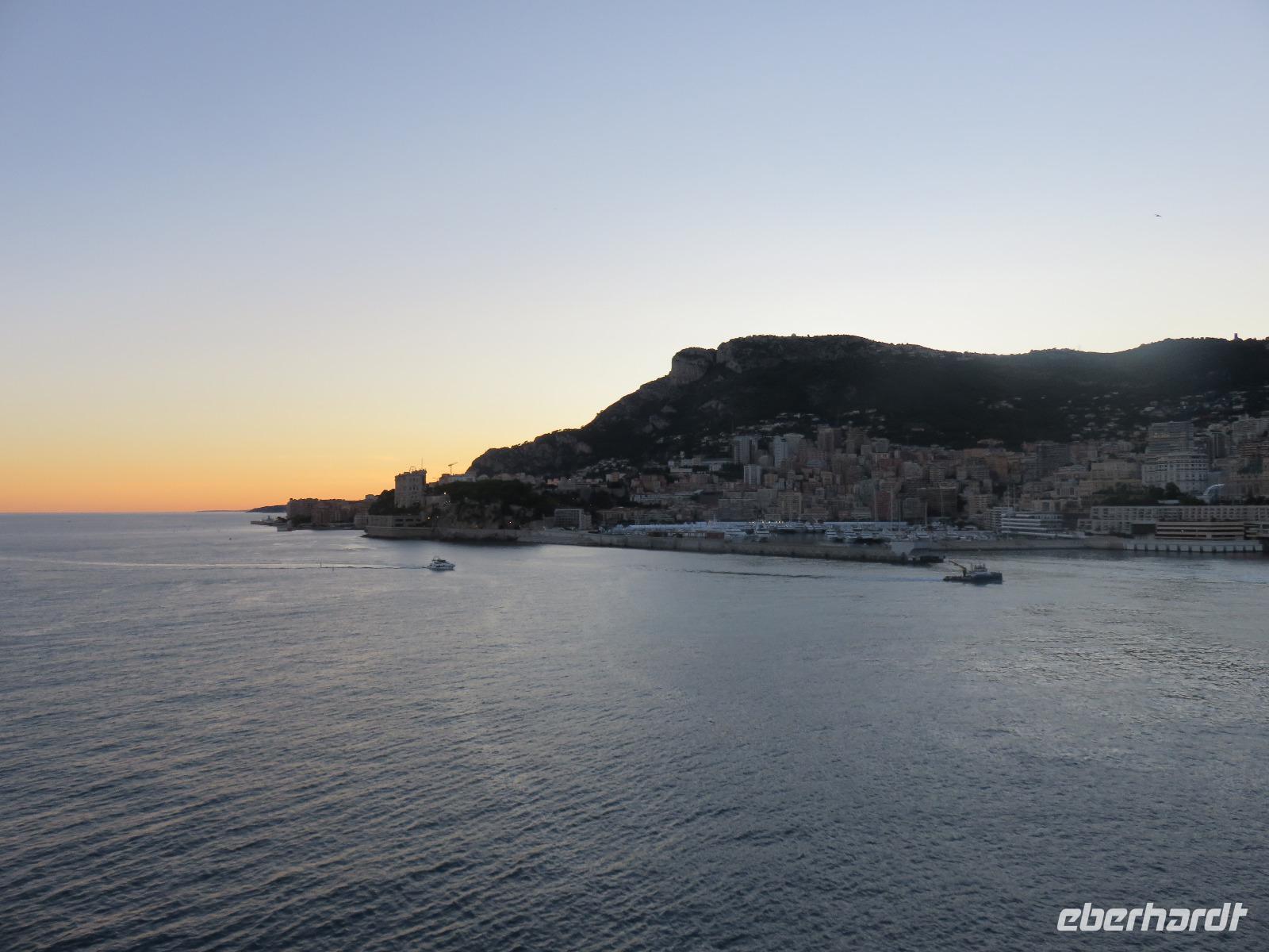 Aber für uns war er noch nicht zu Ende. Bitte ein kurz gehaltenes Abendessen. Die Ausfahrt aus dem Hafen bei schönem Sonnenuntergang wollten wir nicht verpassen und so trafen wir uns auf Deck 12 mit Blick auf Monte Carlo und die Altstadt von Monaco. So ein Tag an Bord kann ganz schön lang werden. Die Show der Artisten spannend und mit tollen Darbietungen gespickt, kurzweilig und interessant, die Zeit verging wie im Flug. Unsere Kreuzfahrt-Direktorin Nina Gill hatte nicht zu viel versprochen. Und schon träumten wir Marseille entgegen.